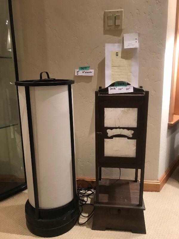 2 Oriental Screen Lanterns 10" x 10" Reproduction wood Lamp Chinese orig $225, and 34" x 12" diameter old Andon C1875 Meiji Era