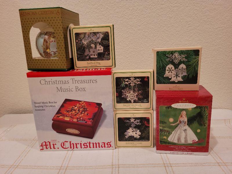 Lot 707: Assorted Christmas Ornaments and MUSIC BOX