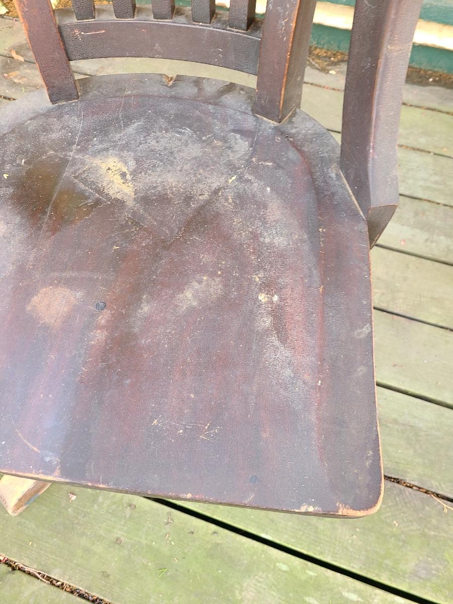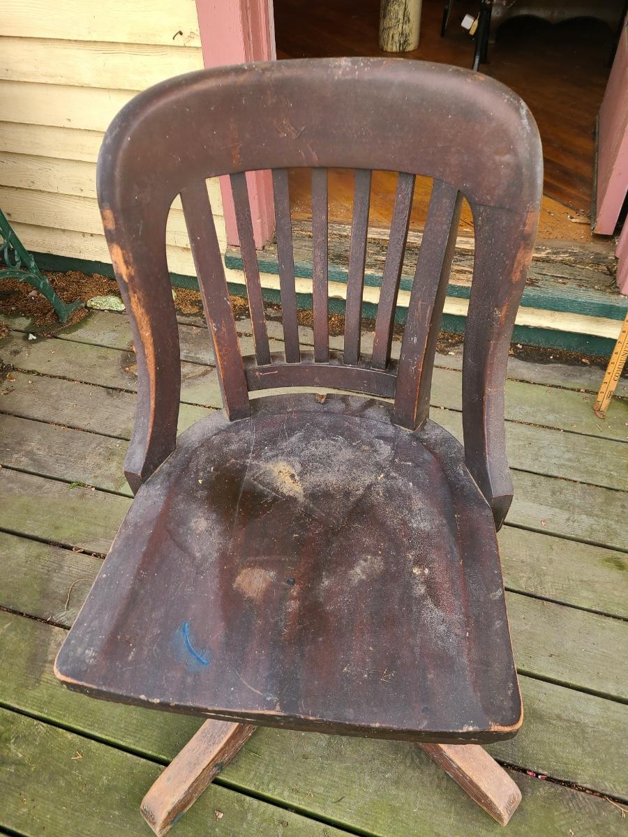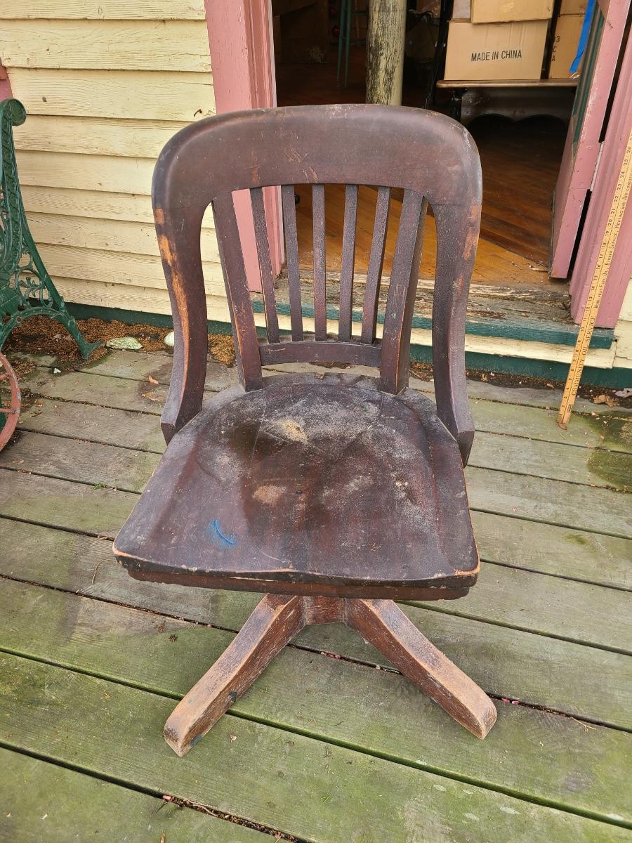 This old chair is solid in design, but shows a lot of age and wear. It has holes on the bottom for casters but does not come with them. This was used for display in a store. Would be perfect for upcycling! Please see all pictures as they are the best representation of the items. The pictures show condition, measurements if taken, and what is included in the lot. Due to the large amount that we photograph and the time frame, we are not always able to take measurements. All items unless noted, are pre-owned and have been used. If you purchased furniture, you must bring help. We do not allow one person to carry large furniture out on their own. Bring help, tools and a truck for the safety of our client’s homes, and your personal safety. Any damages that result to the property including walls, and floors due to moving of the furniture will be charged to the buyer. Company policy. Thank you.