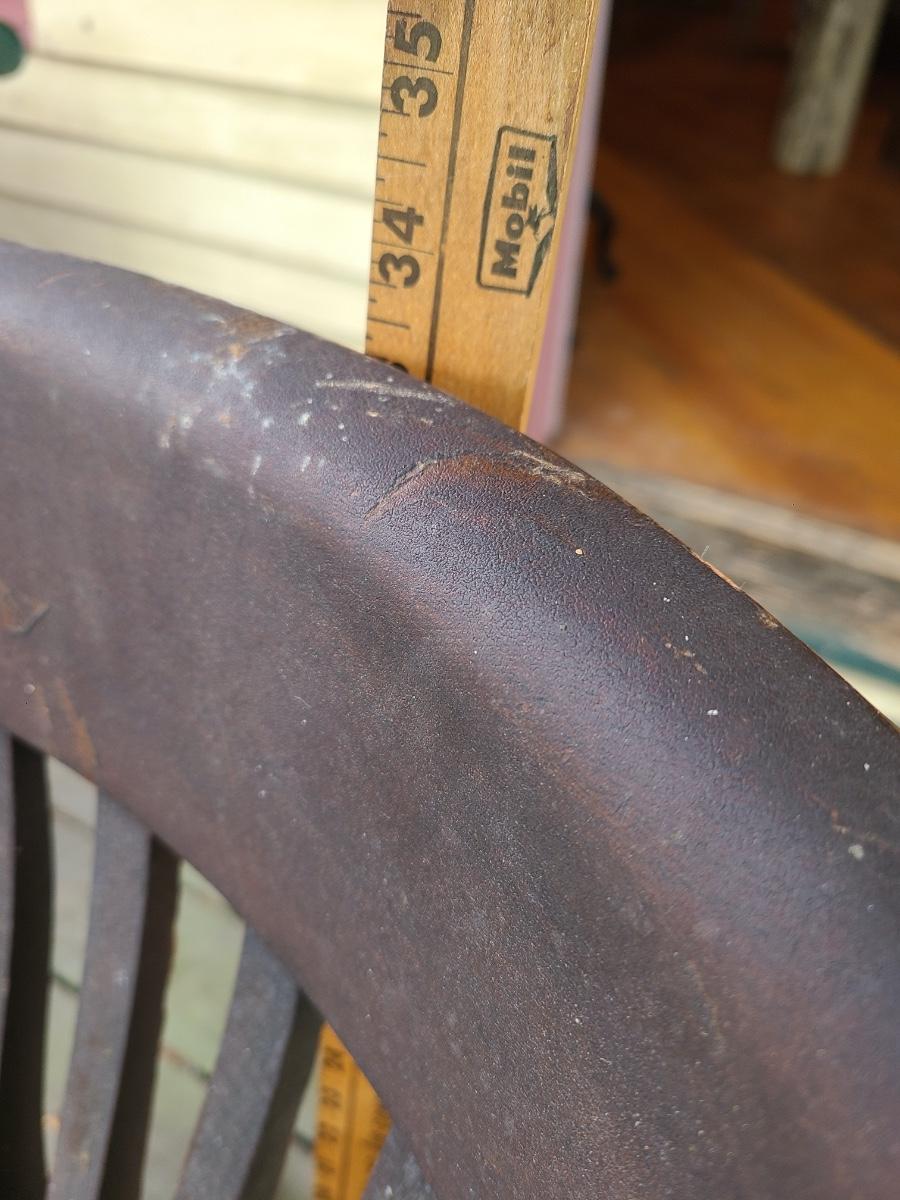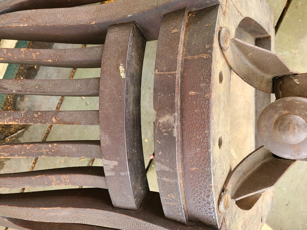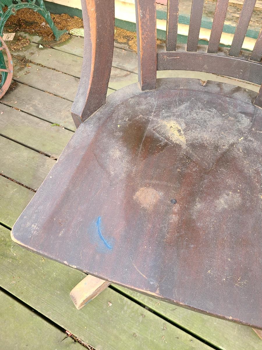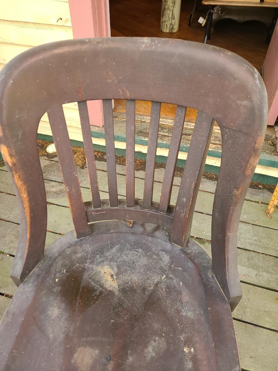 This old chair is solid in design, but shows a lot of age and wear. It has holes on the bottom for casters but does not come with them. This was used for display in a store. Would be perfect for upcycling! Please see all pictures as they are the best representation of the items. The pictures show condition, measurements if taken, and what is included in the lot. Due to the large amount that we photograph and the time frame, we are not always able to take measurements. All items unless noted, are pre-owned and have been used. If you purchased furniture, you must bring help. We do not allow one person to carry large furniture out on their own. Bring help, tools and a truck for the safety of our client’s homes, and your personal safety. Any damages that result to the property including walls, and floors due to moving of the furniture will be charged to the buyer. Company policy. Thank you.