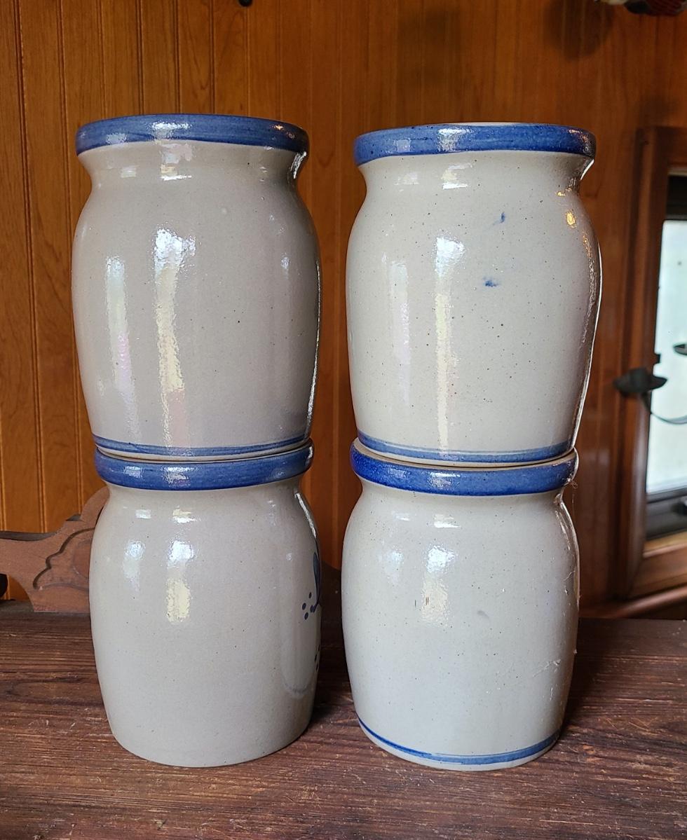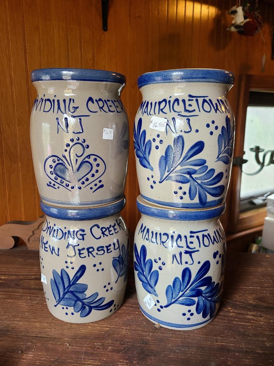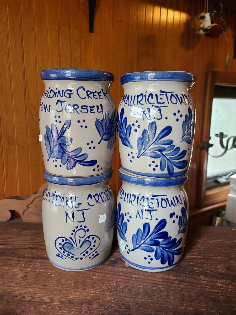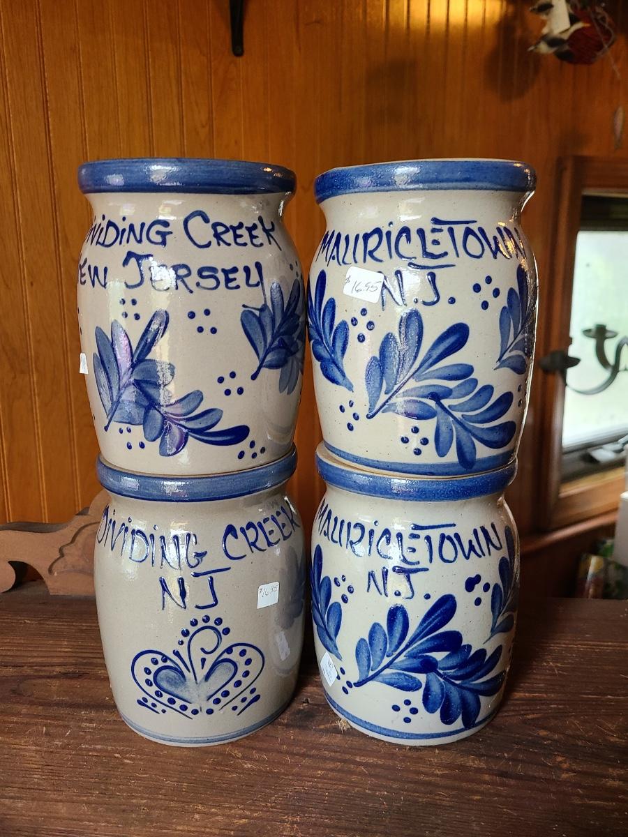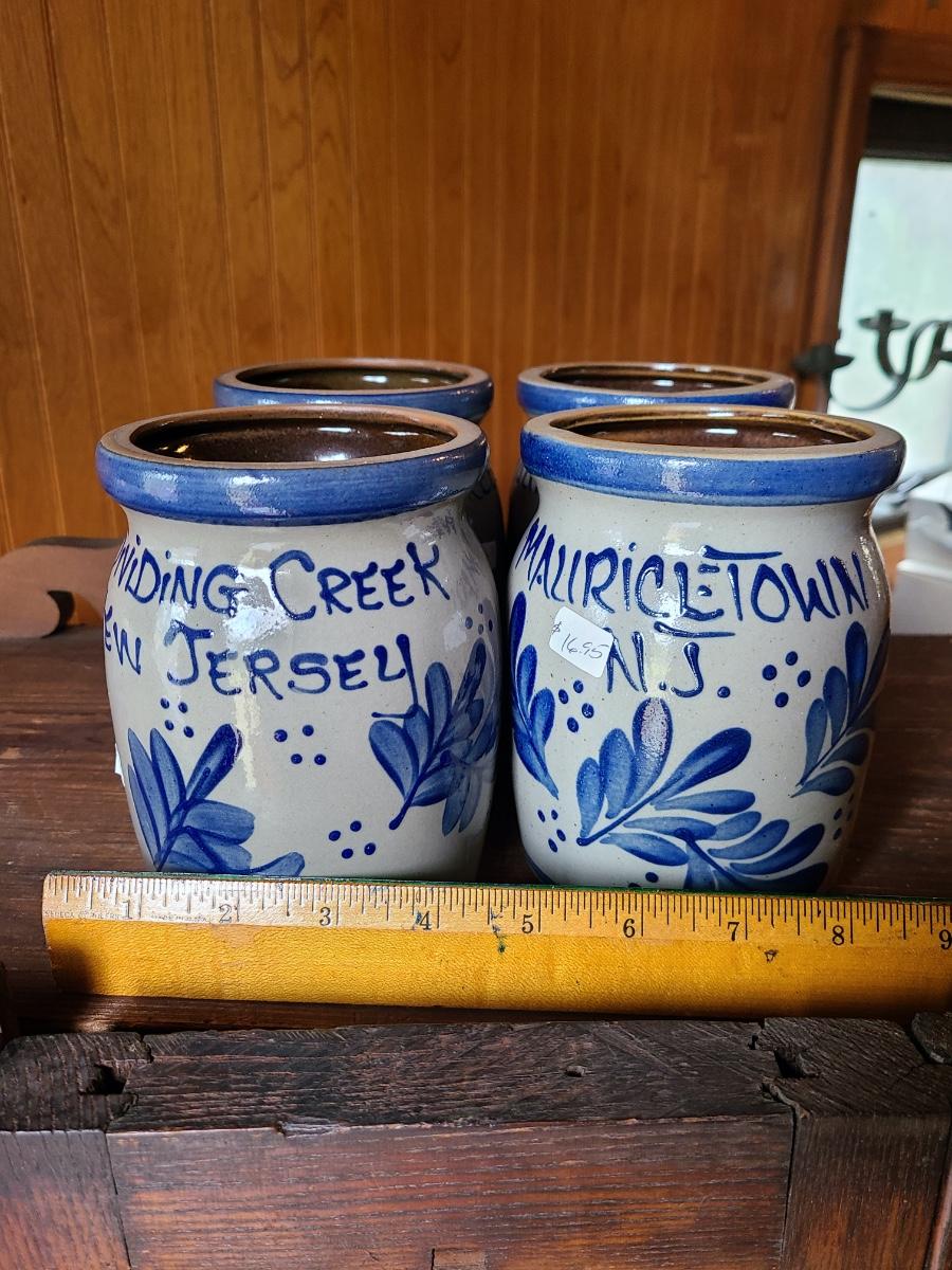 LOT 8C: Four Beaumont Brothers Salt Glaze Pottery Small Crocks Local NJ