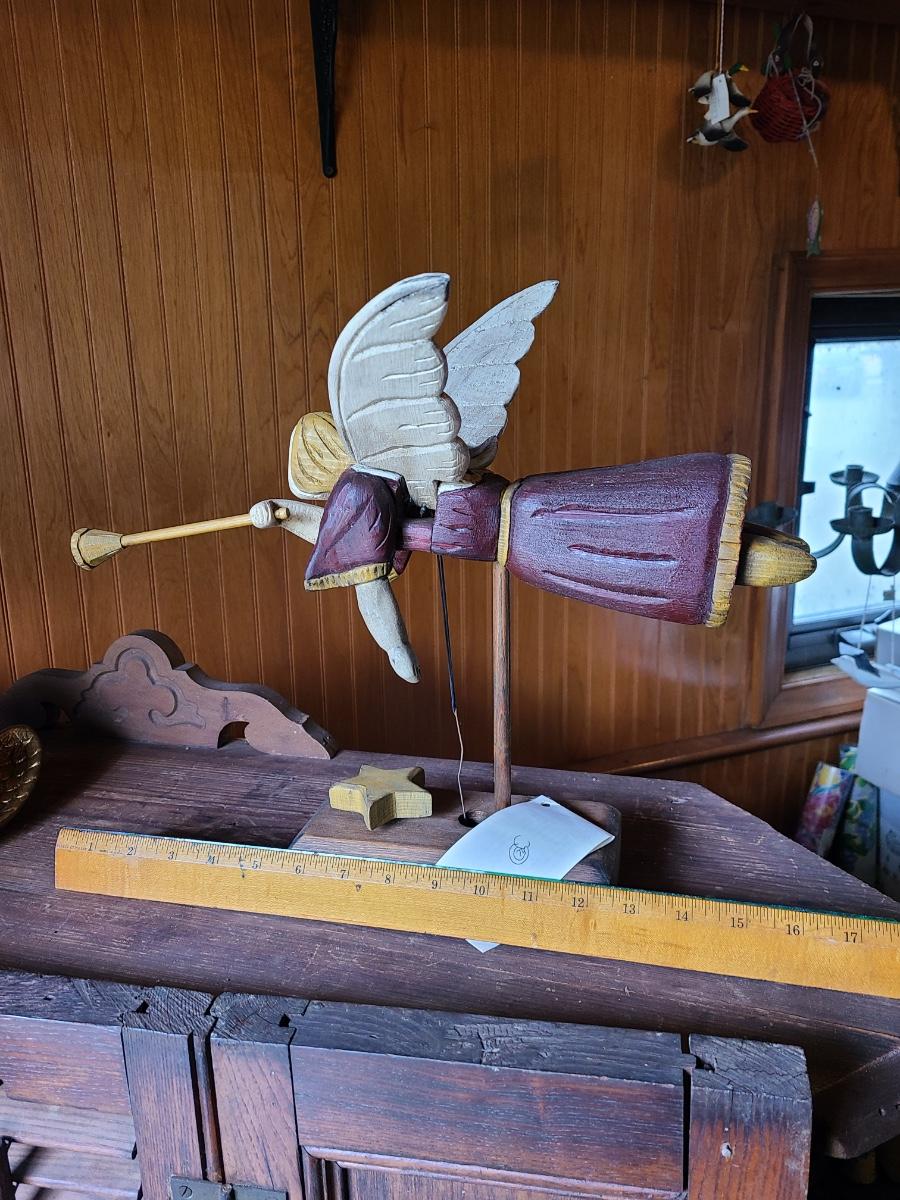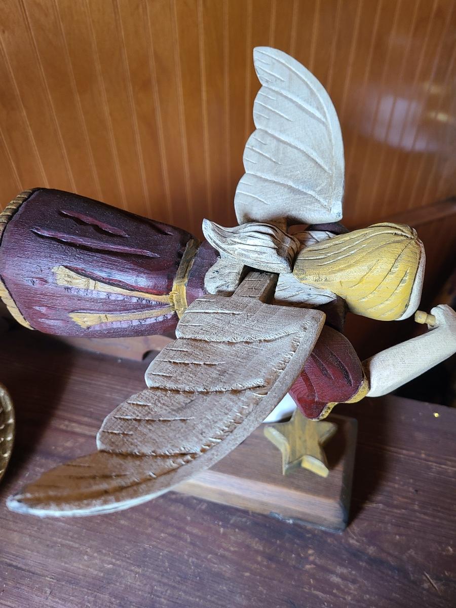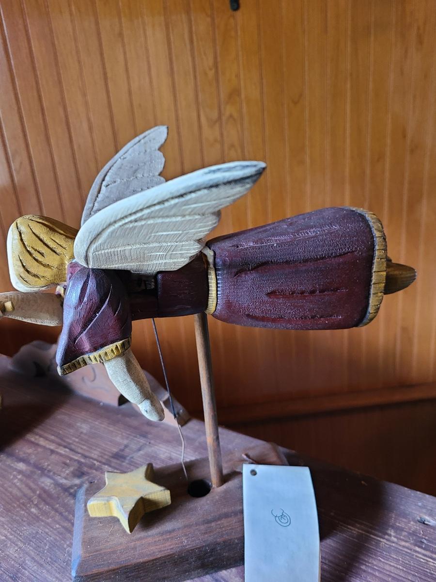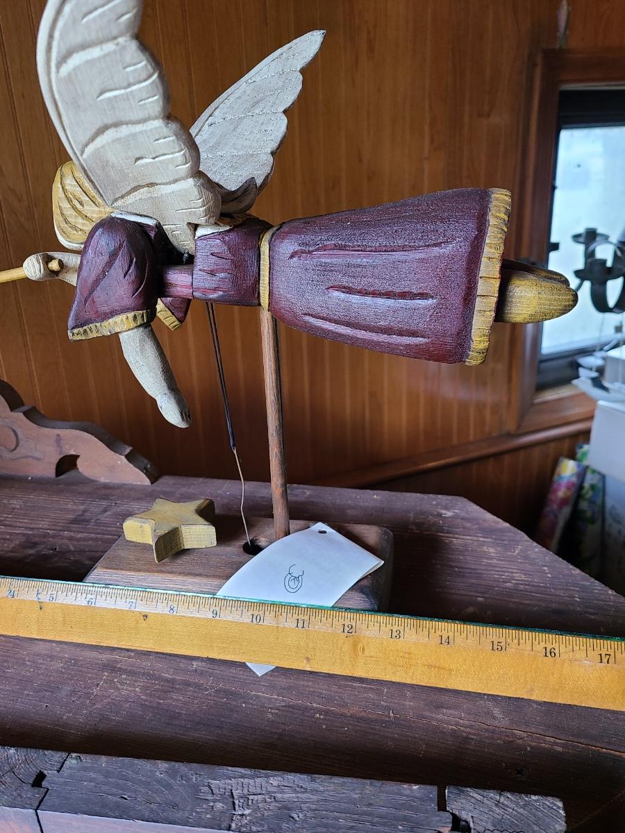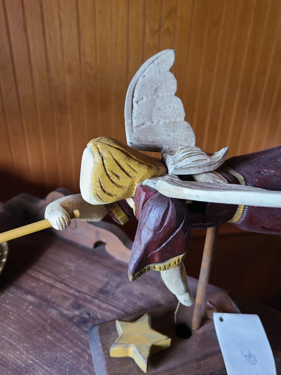 LOT 11C: Unique Folk Art, Wood Carved Angel Music Box with Moving Wings and More (Must see)