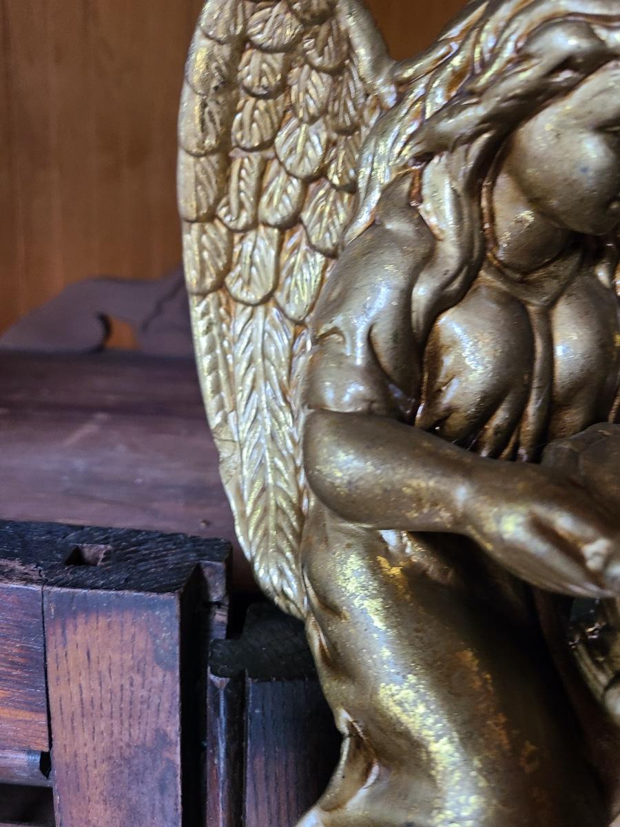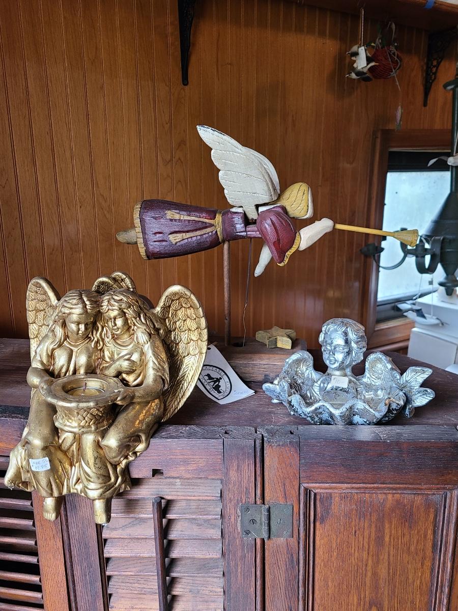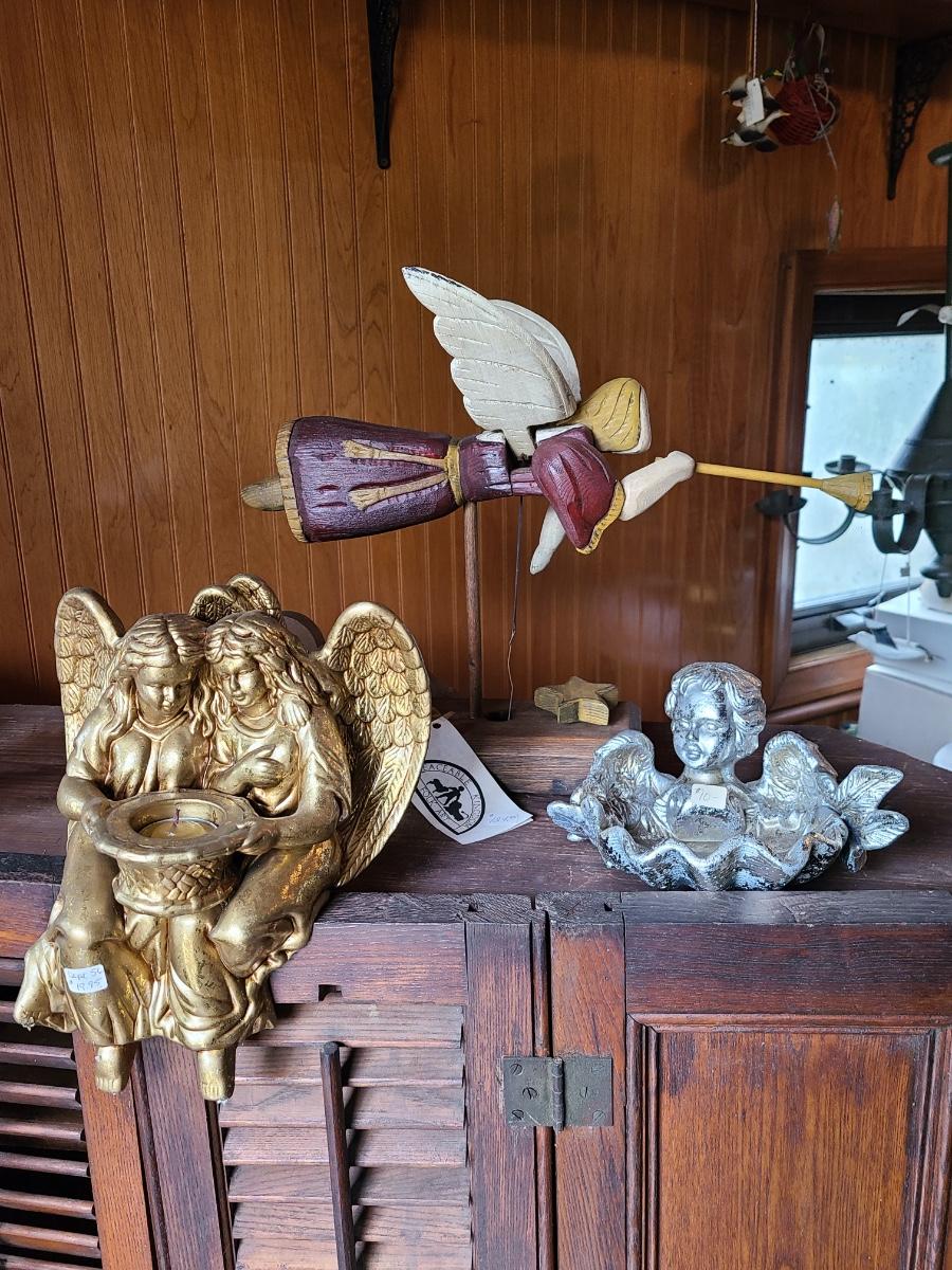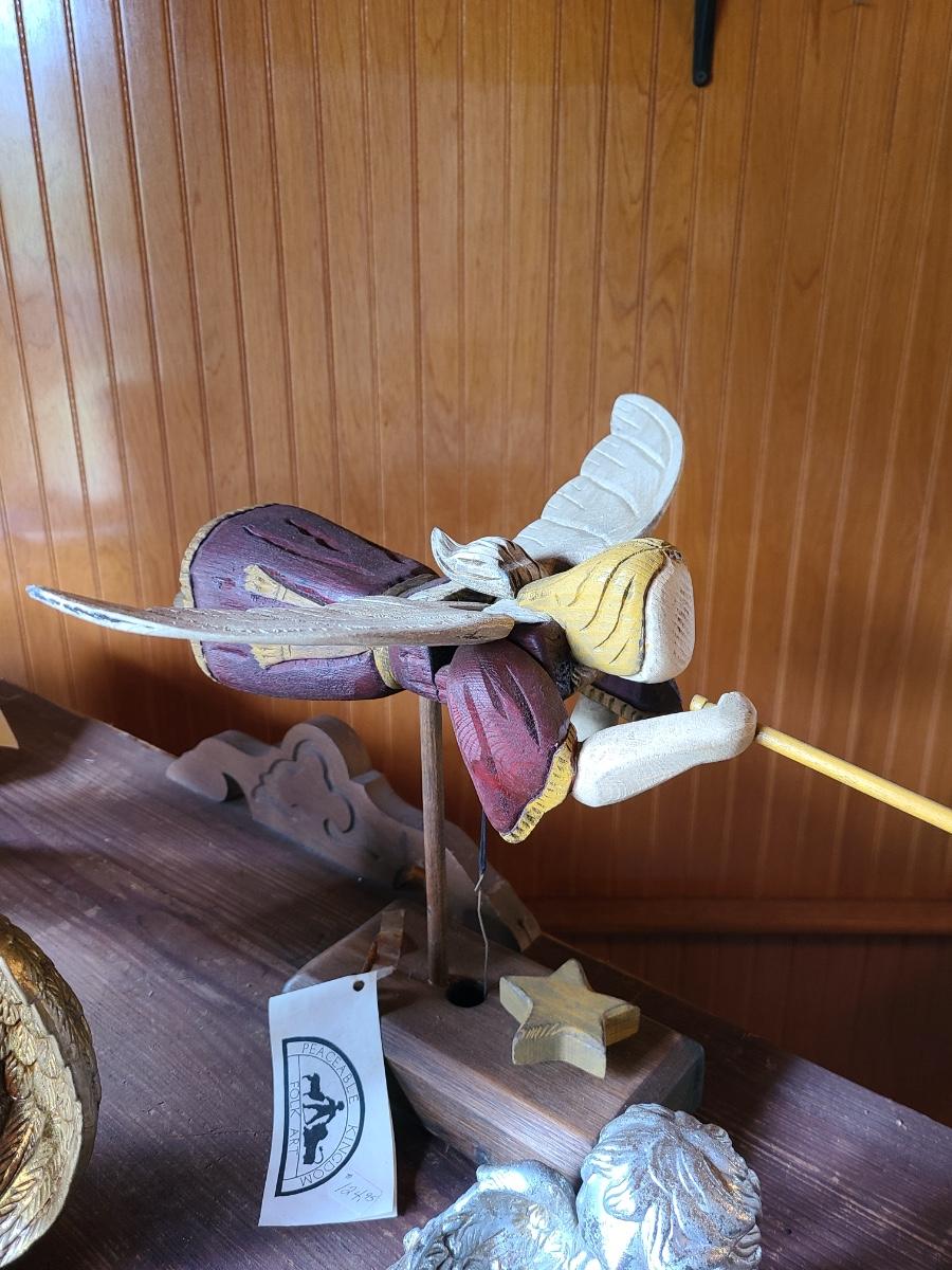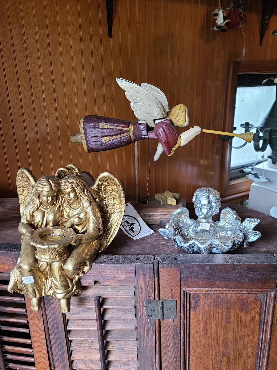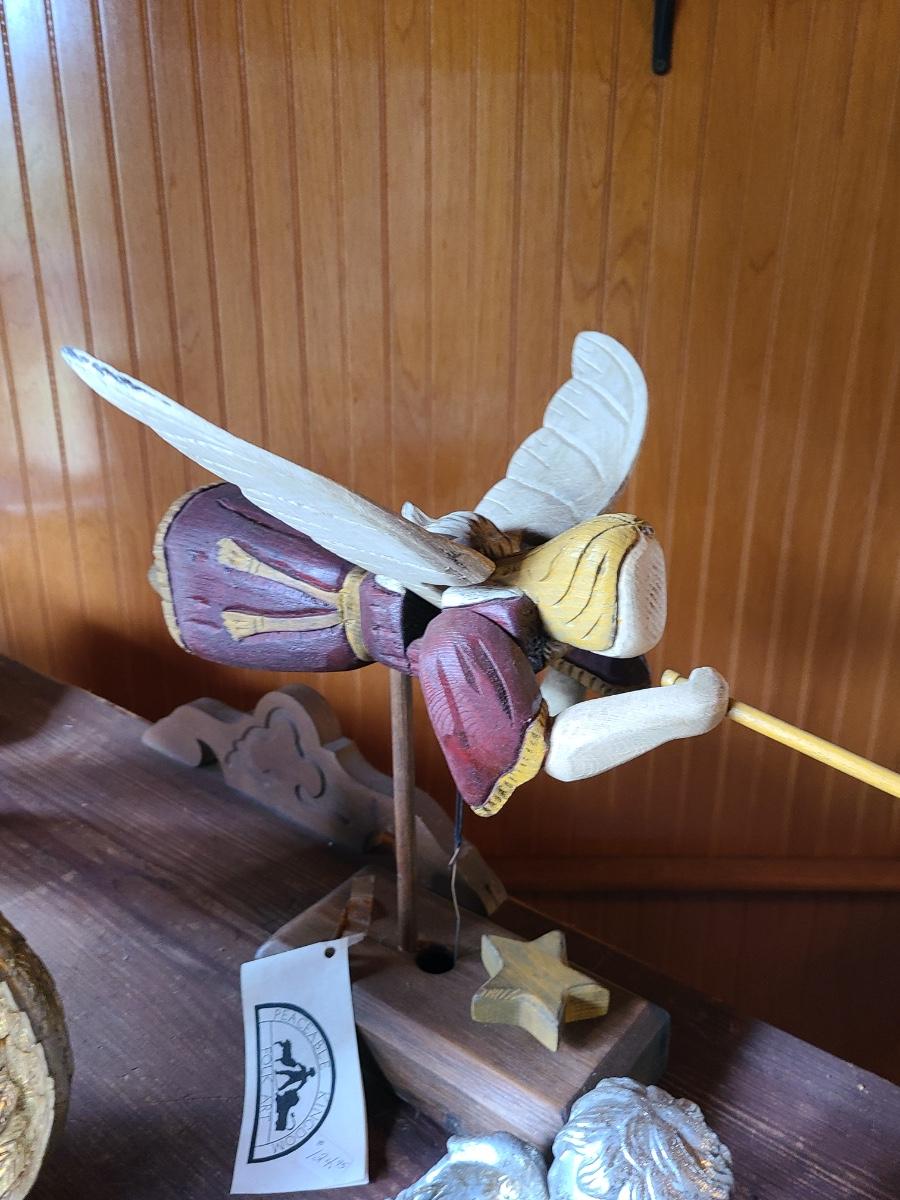 LOT 11C: Unique Folk Art, Wood Carved Angel Music Box with Moving Wings and More (Must see)