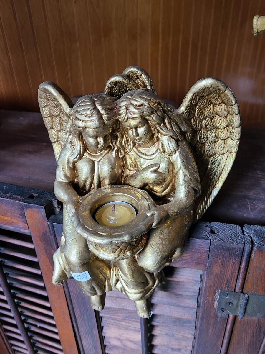 This lot comes with two lovely angel holders, that are resin; but what is the eye-catching piece is the Peaceable Kingdom Folk Art Angel. It is a musical piece and when you turn the star knob it plays Wind Beneath My Wings, and the faceless angels wings move up and down. This is a unique piece of wood craftsmanship and ingenuity! Great for home, to gift, or for re-sell! Please see all pictures as they are the best representation of the items. The pictures show condition, measurements if taken, and what is included in the lot. Due to the large amount that we photograph and the time frame, we are not always able to take measurements. All items unless noted, are pre-owned and have been used. If you purchased furniture, you must bring help. We do not allow one person to carry large furniture out on their own. Bring help, tools and a truck for the safety of our client’s homes, and your personal safety. Any damages that result to the property including walls, and floors due to moving of the furniture will be charged to the buyer. Company policy. Thank you.