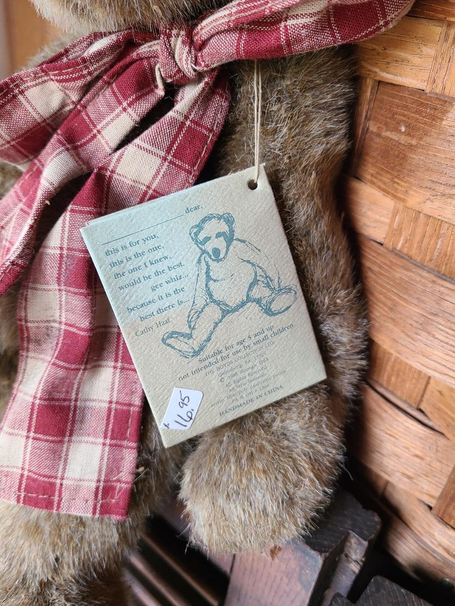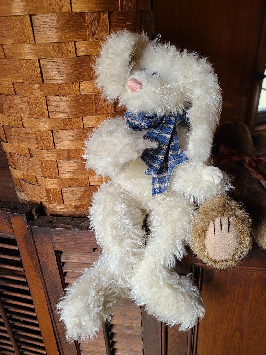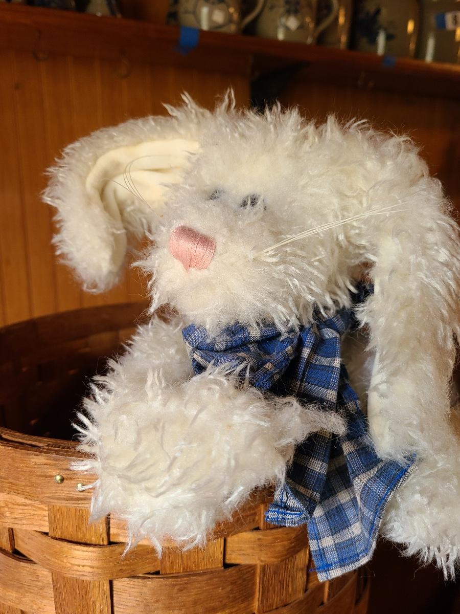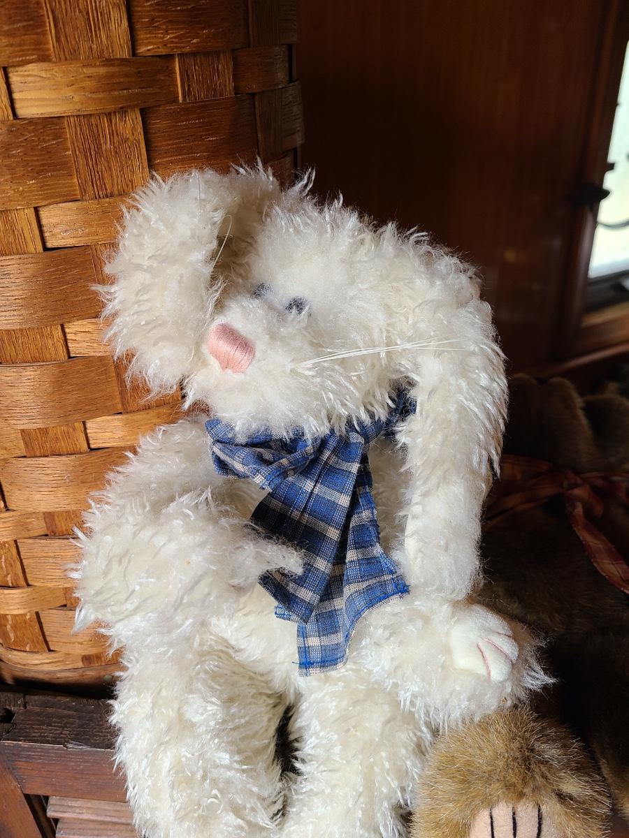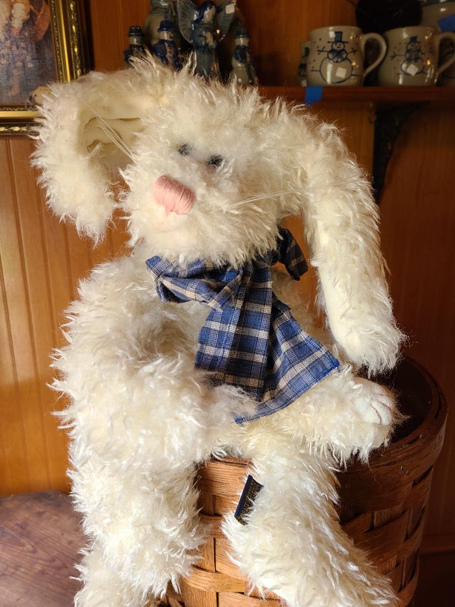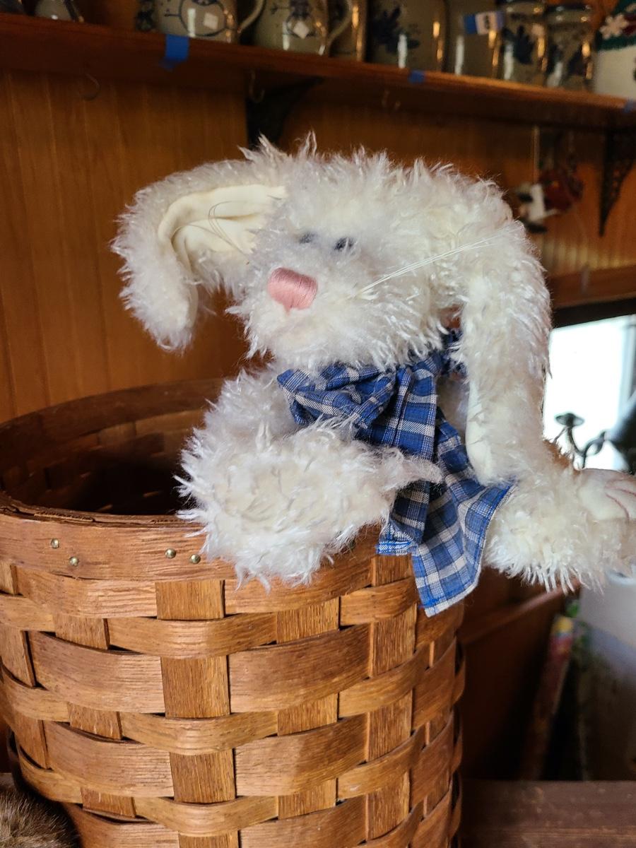 LOT 15C: Tall Delsea Basket Shop Handmade Basket and Boyds Bear/Bunny