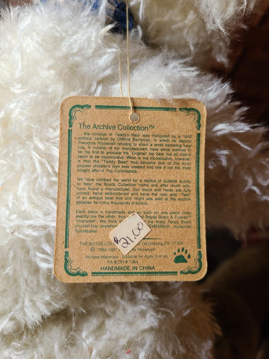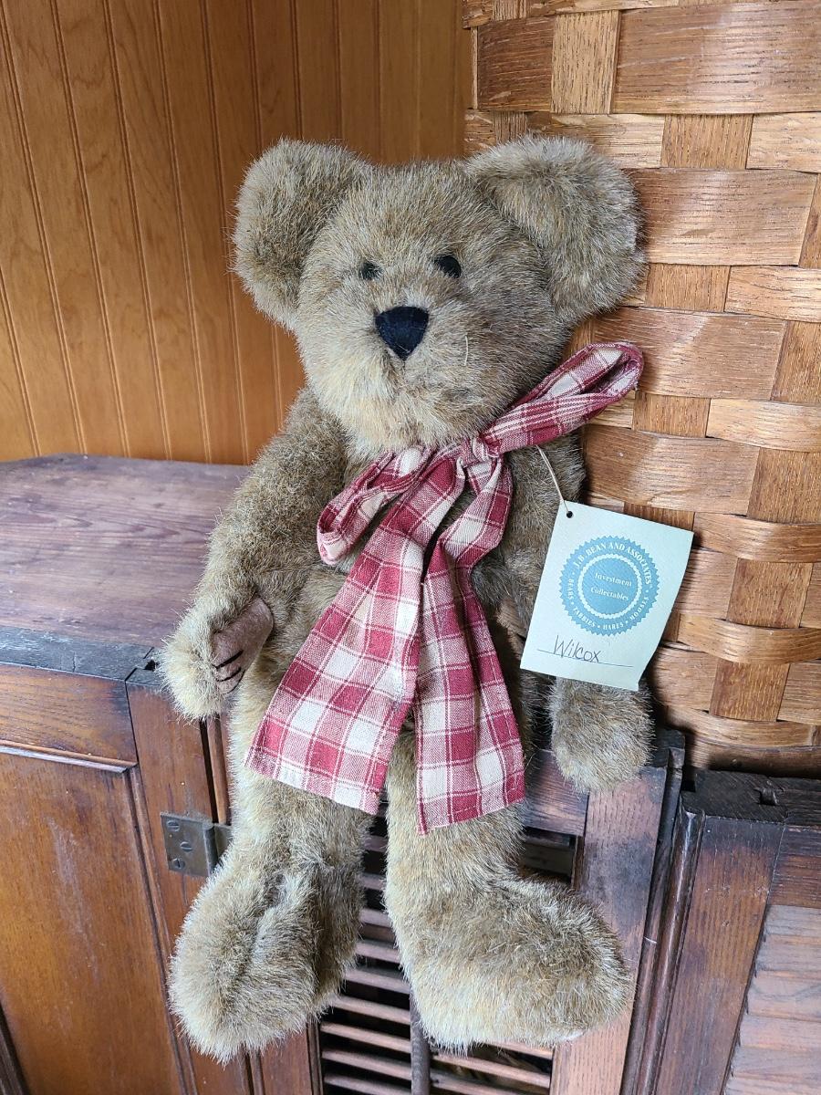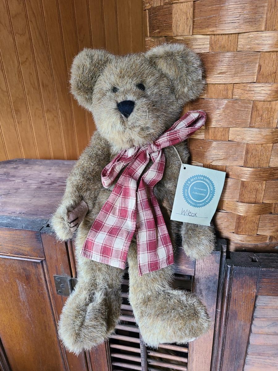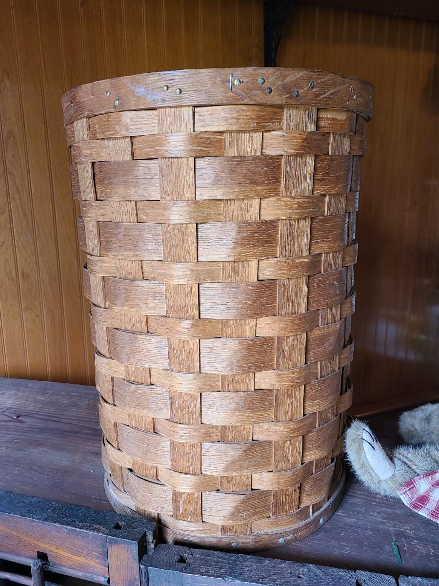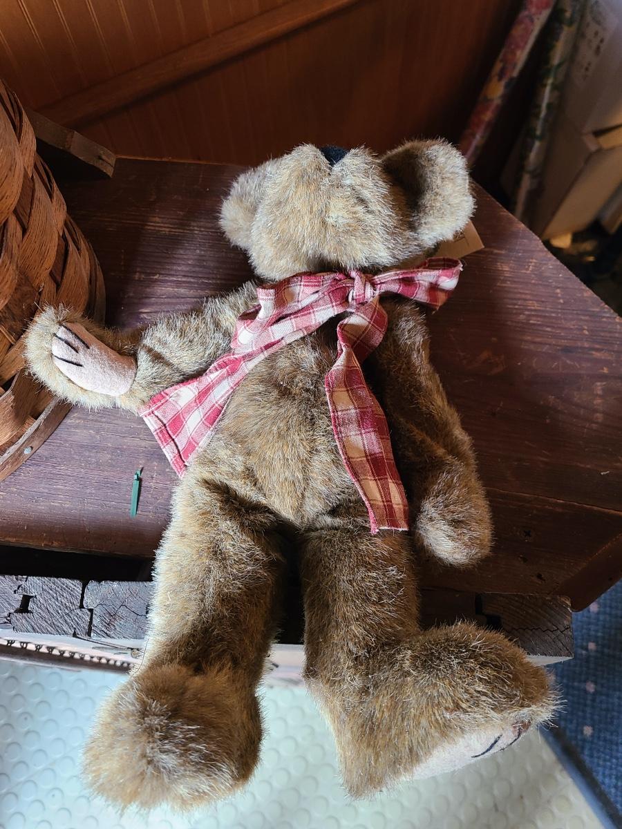 LOT 15C: Tall Delsea Basket Shop Handmade Basket and Boyds Bear/Bunny