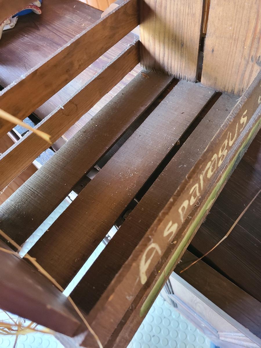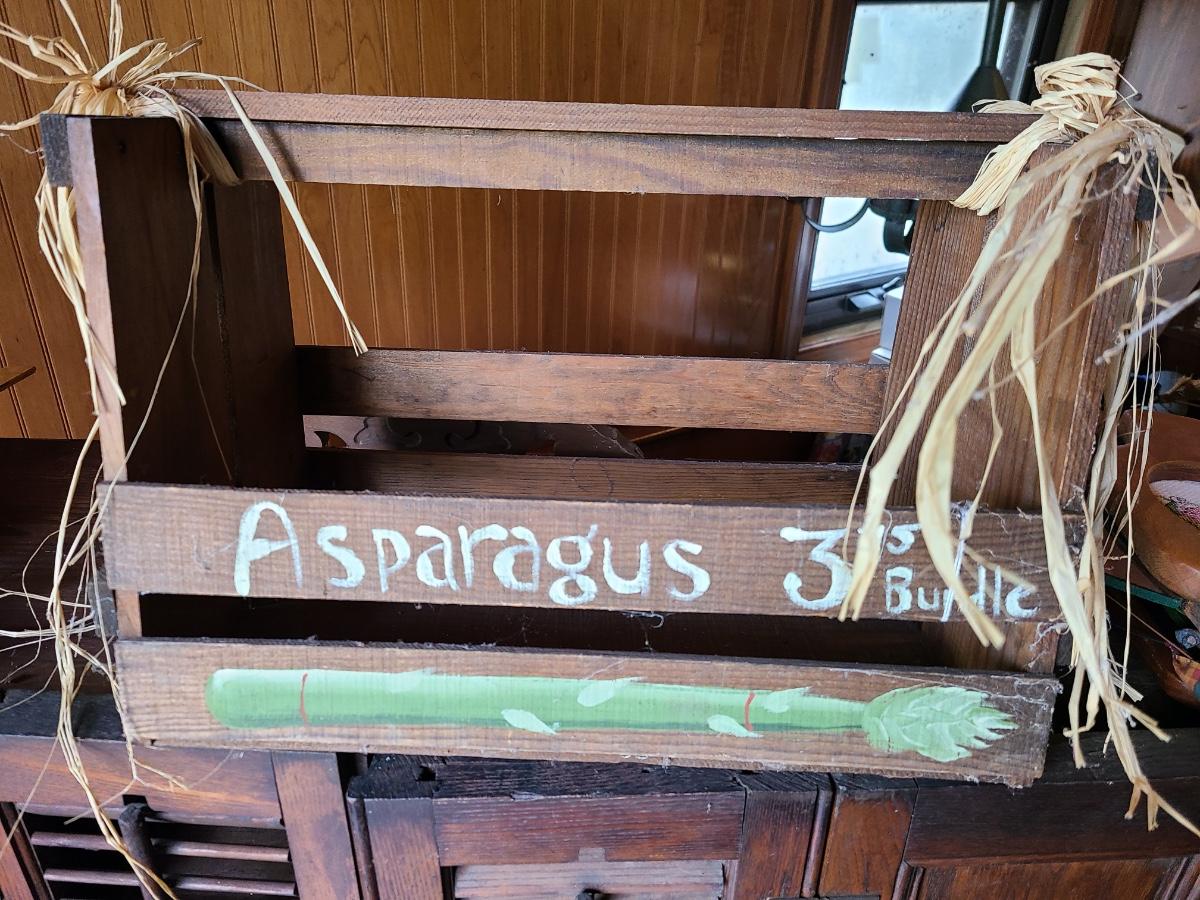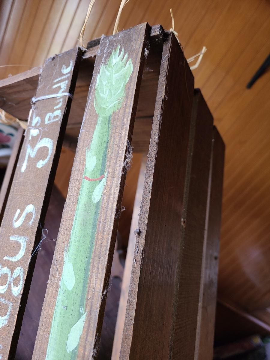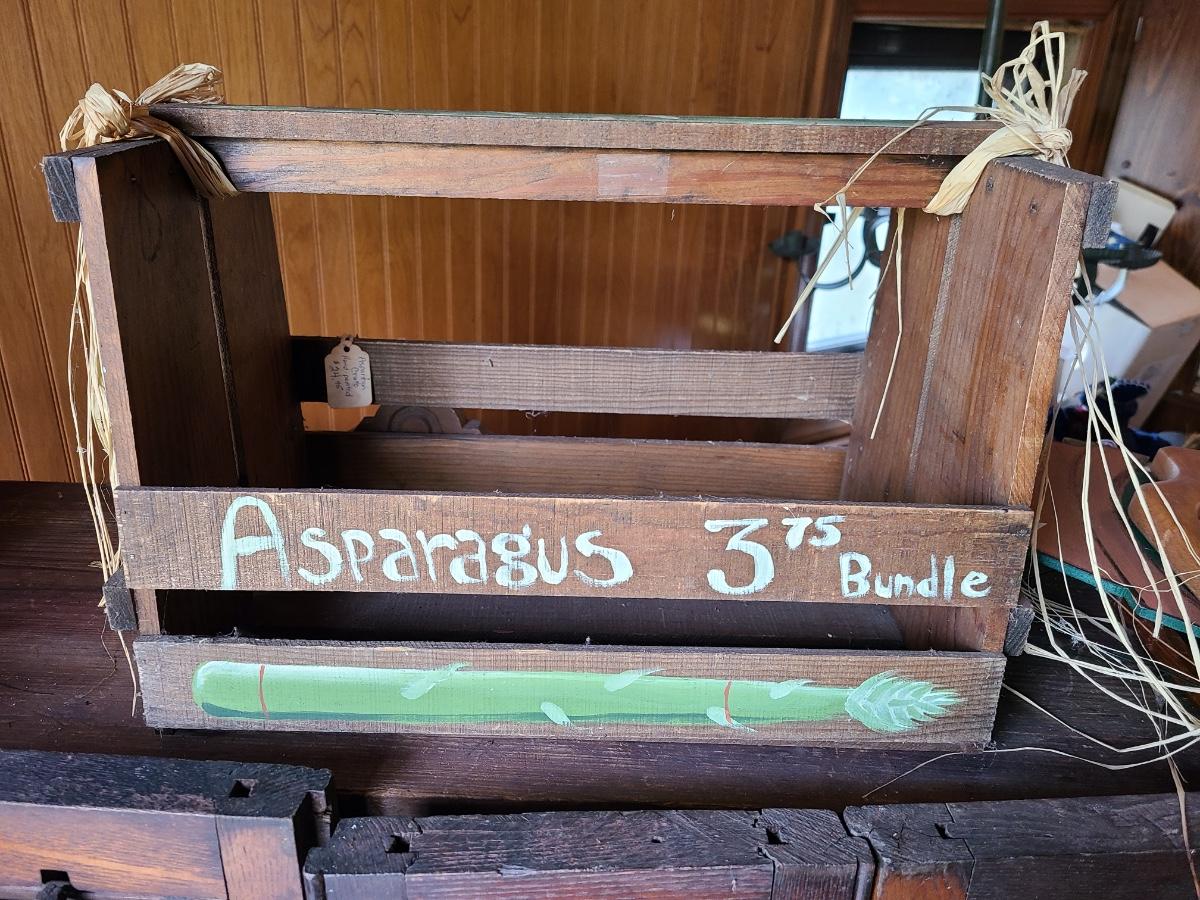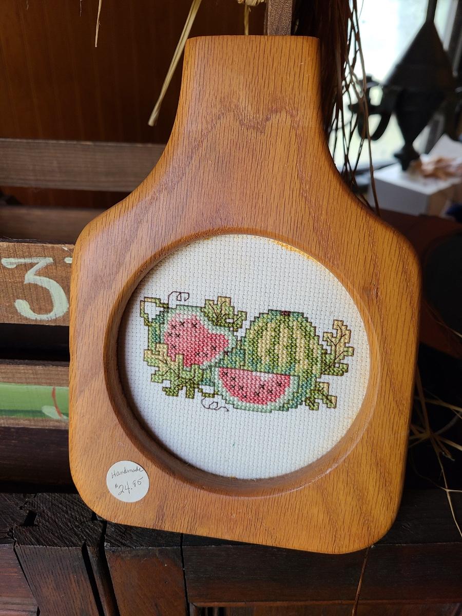LOT 18C: Wood Crafts: Asparagus Wood Basket, Watermelon Hanging Sign, and More