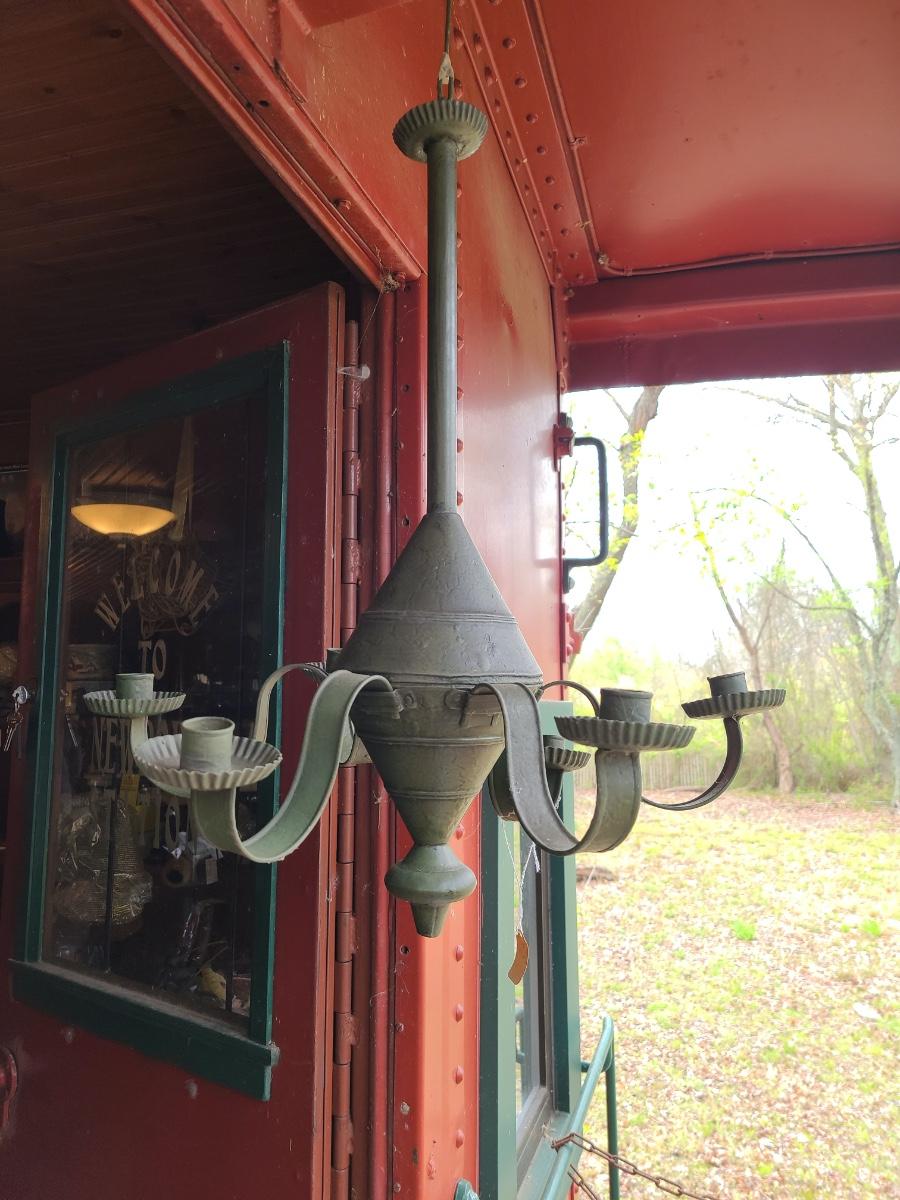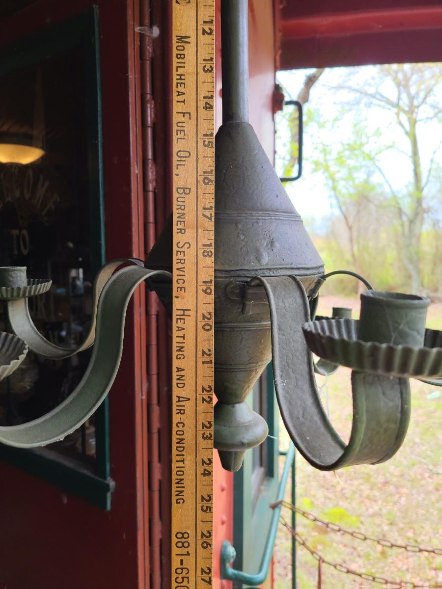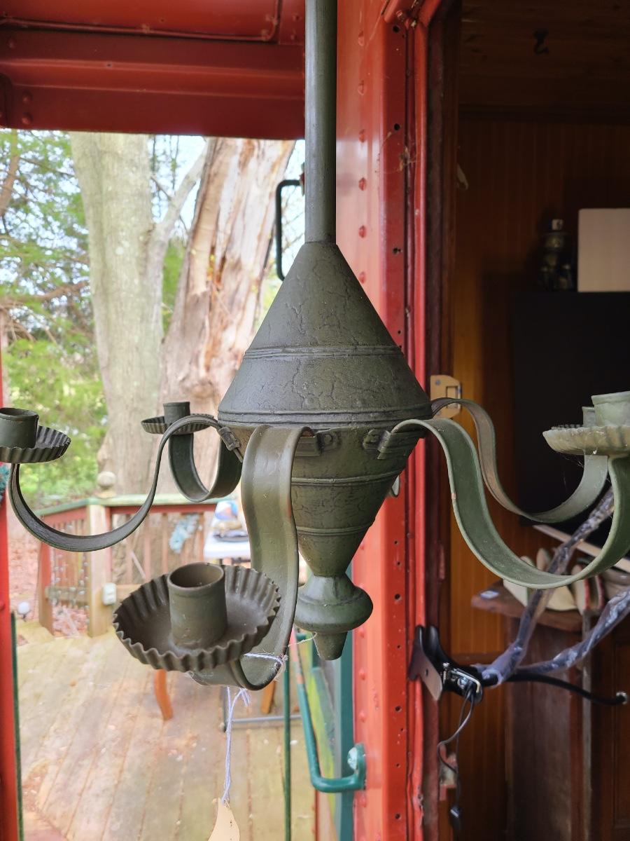LOT 20C: Reproduction Green Tin Primitive Designs Hanging Candleabra