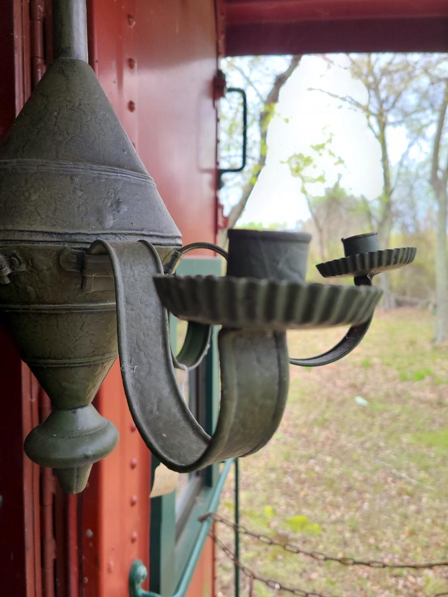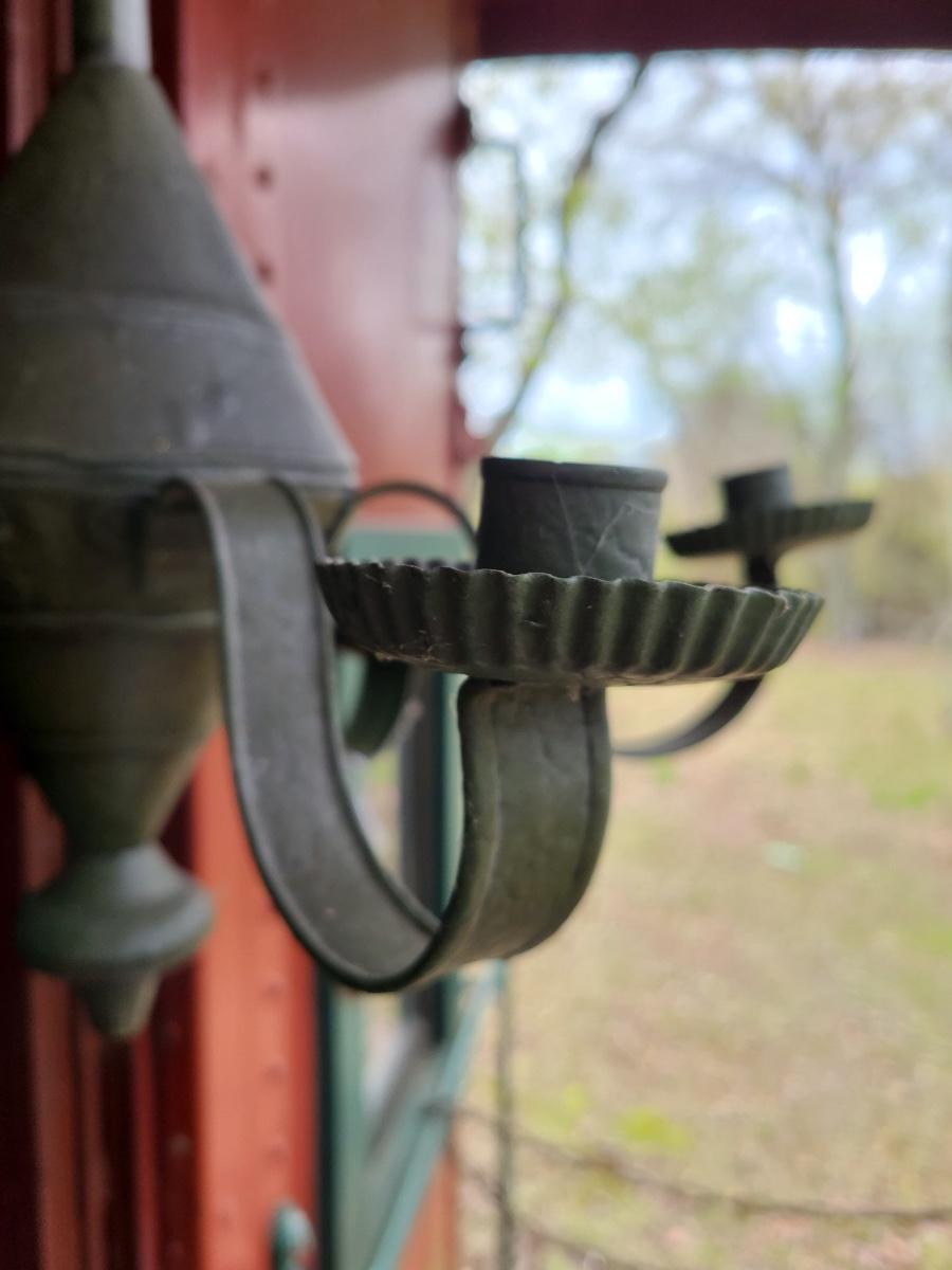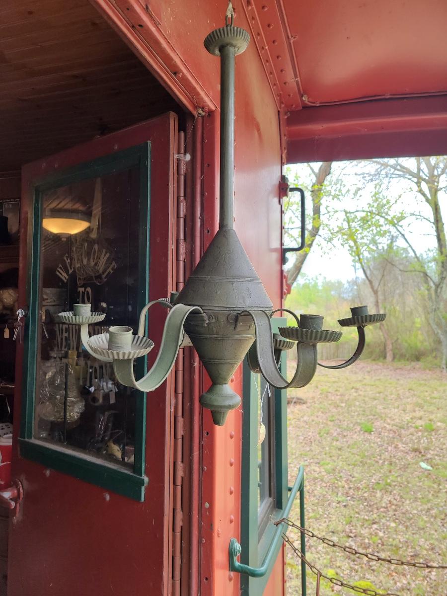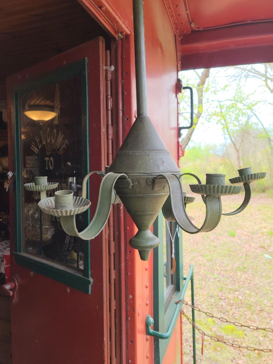 LOT 20C: Reproduction Green Tin Primitive Designs Hanging Candleabra