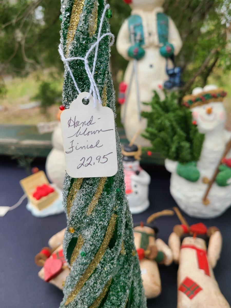 The tree is not glass as the tag reads, it is a plastic. The others are cute snowman for decor, but the one holding the tree has a break on his crown where a cardinal sat. You can glue anything on top to repair. Please see all pictures as they are the best representation of the items. The pictures show condition, measurements if taken, and what is included in the lot. Due to the large amount that we photograph and the time frame, we are not always able to take measurements. All items unless noted, are pre-owned and have been used. If you purchased furniture, you must bring help. We do not allow one person to carry large furniture out on their own. Bring help, tools and a truck for the safety of our client’s homes, and your personal safety. Any damages that result to the property including walls, and floors due to moving of the furniture will be charged to the buyer. Company policy. Thank you.