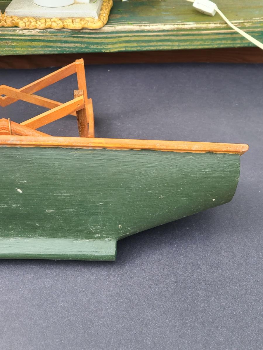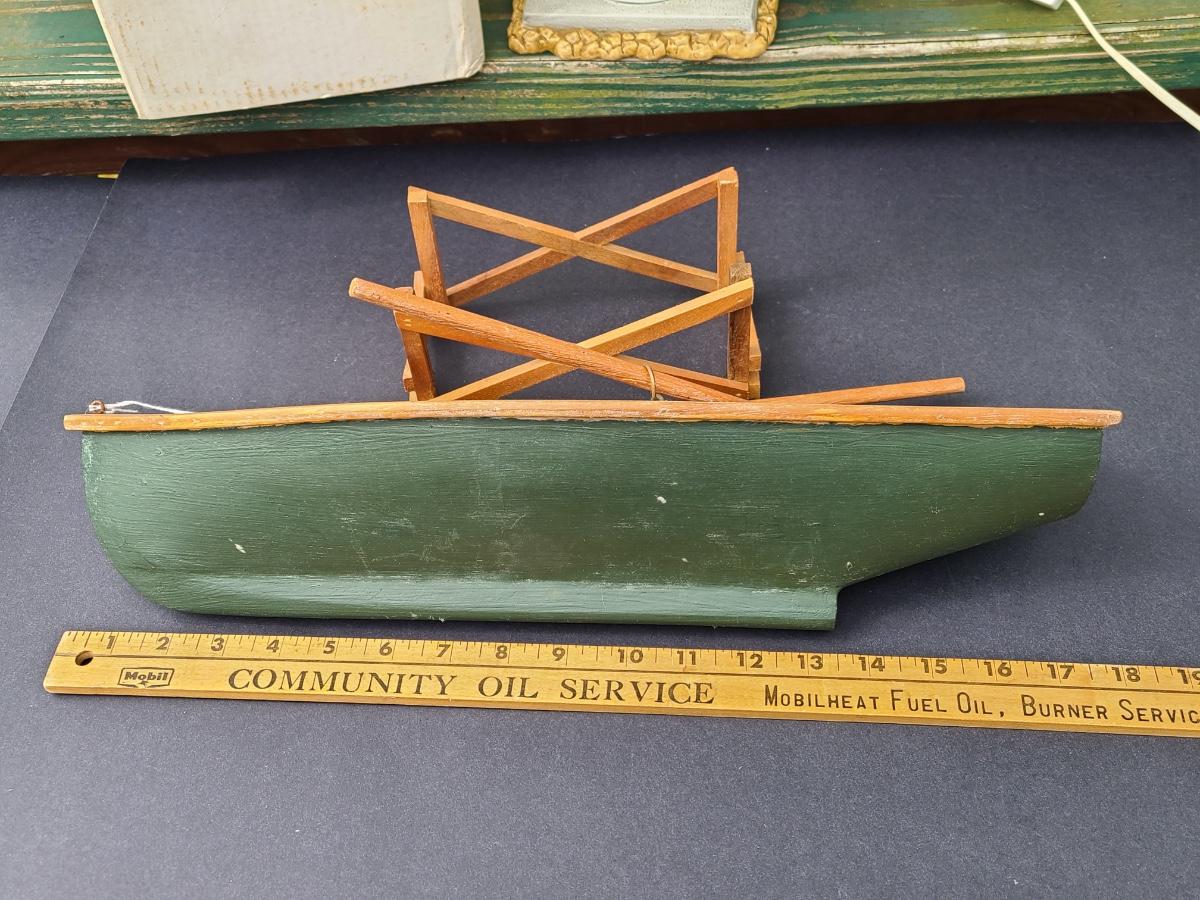 Wood carved boat model for display, and Lefton Lighthouse light. The box may or may not come with all of the packaging materials. Please see all pictures as they are the best representation of the items. The pictures show condition, measurements if taken, and what is included in the lot. Due to the large amount that we photograph and the time frame, we are not always able to take measurements. All items unless noted, are pre-owned and have been used. If you purchased furniture, you must bring help. We do not allow one person to carry large furniture out on their own. Bring help, tools and a truck for the safety of our client’s homes, and your personal safety. Any damages that result to the property including walls, and floors due to moving of the furniture will be charged to the buyer. Company policy. Thank you.
