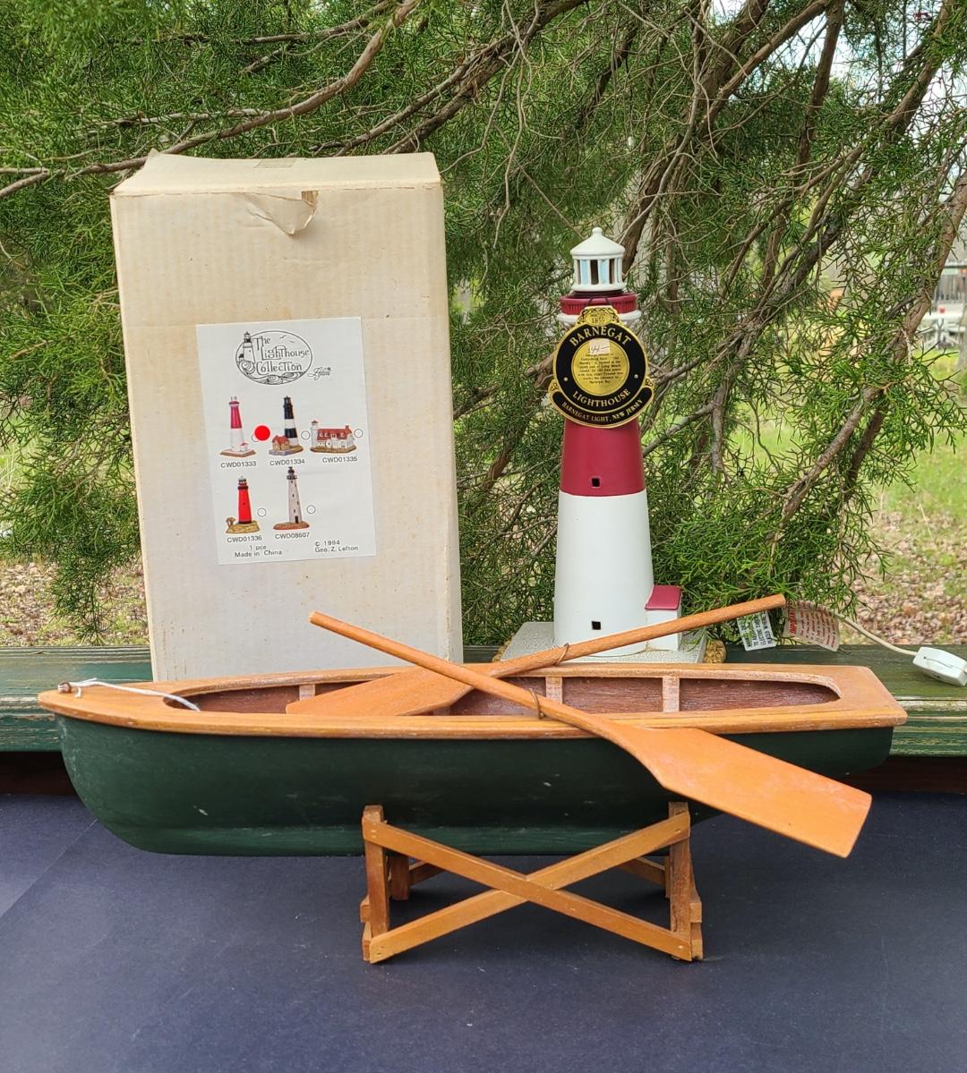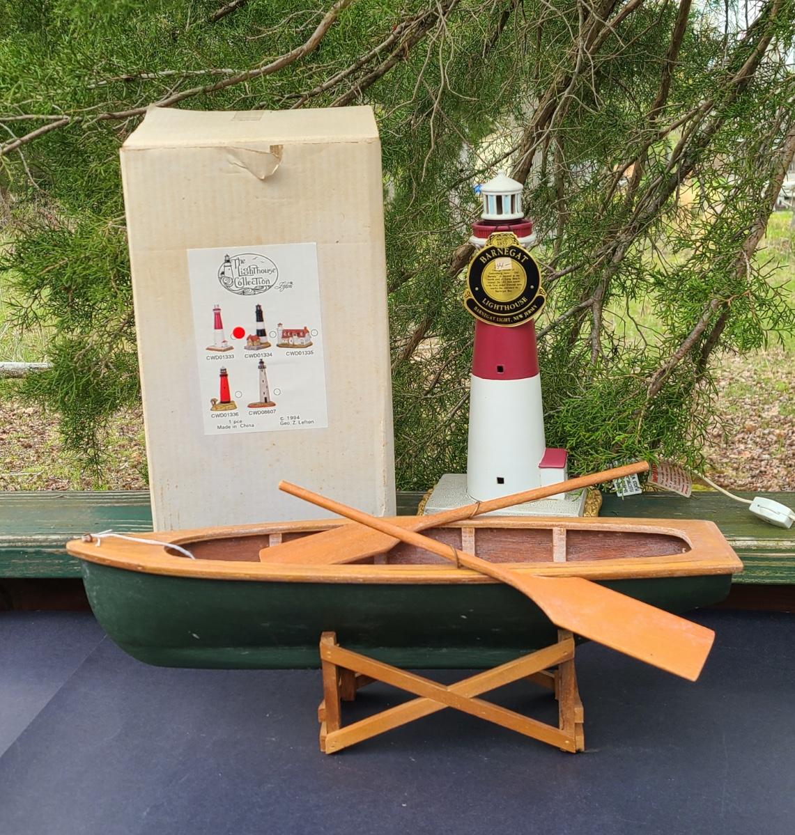 LOT 29C: Wood Carved Boat Model & Lefton Barnegat Lighthouse Light