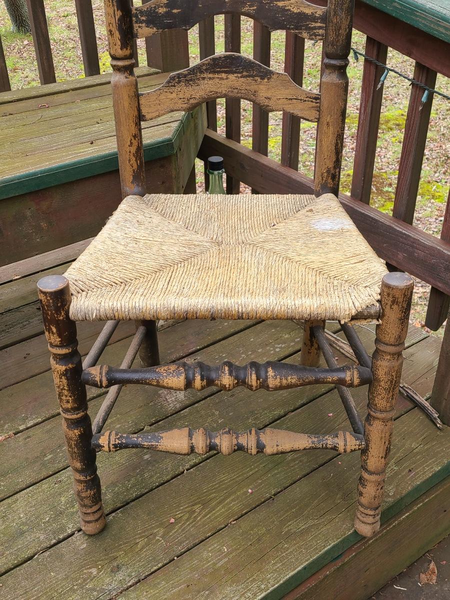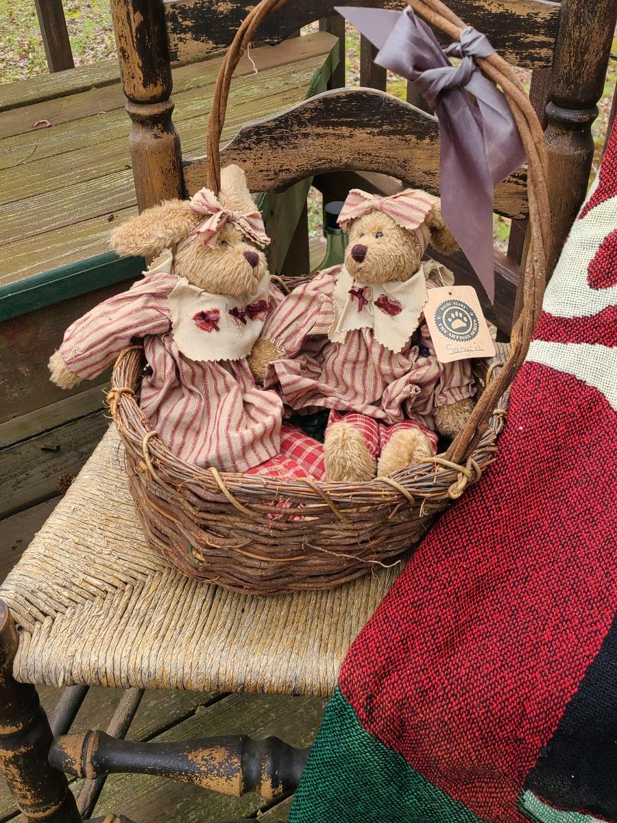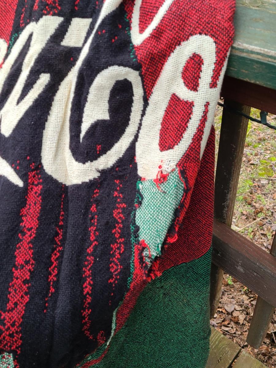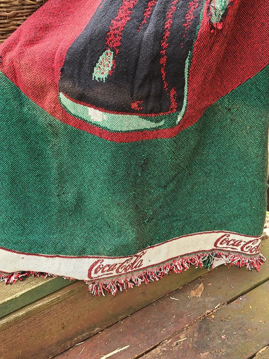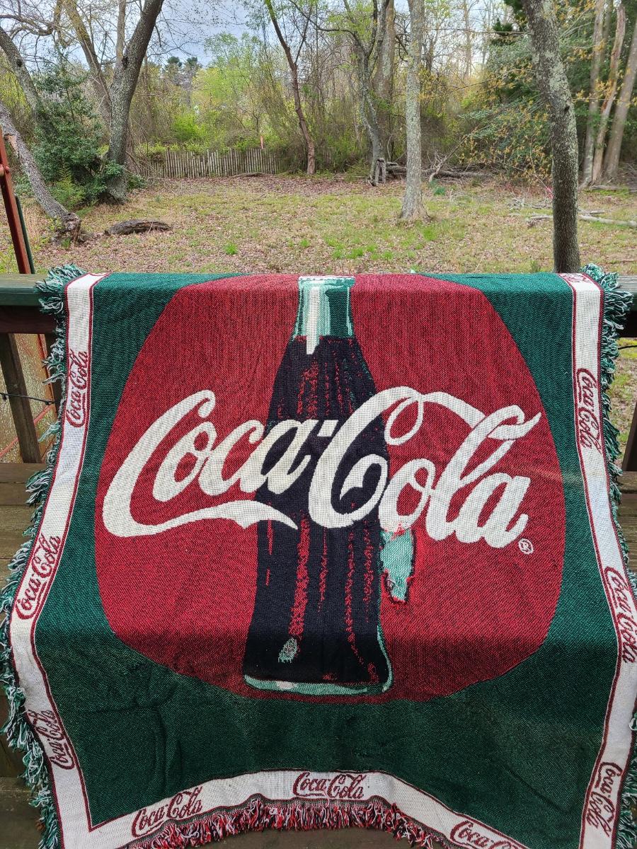 LOT 701: Vintage Ladderback Chair, Boyds Bunnies, and Coca-Cola Blanket As-Is