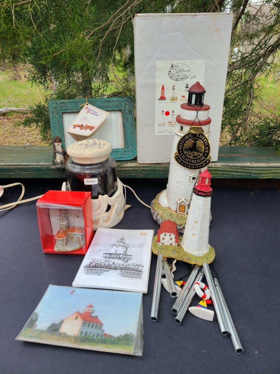 LOT 49C: Lefton Lighthouse Light, Ornament, Frame, Wave Candle Holder, Windchimes and More