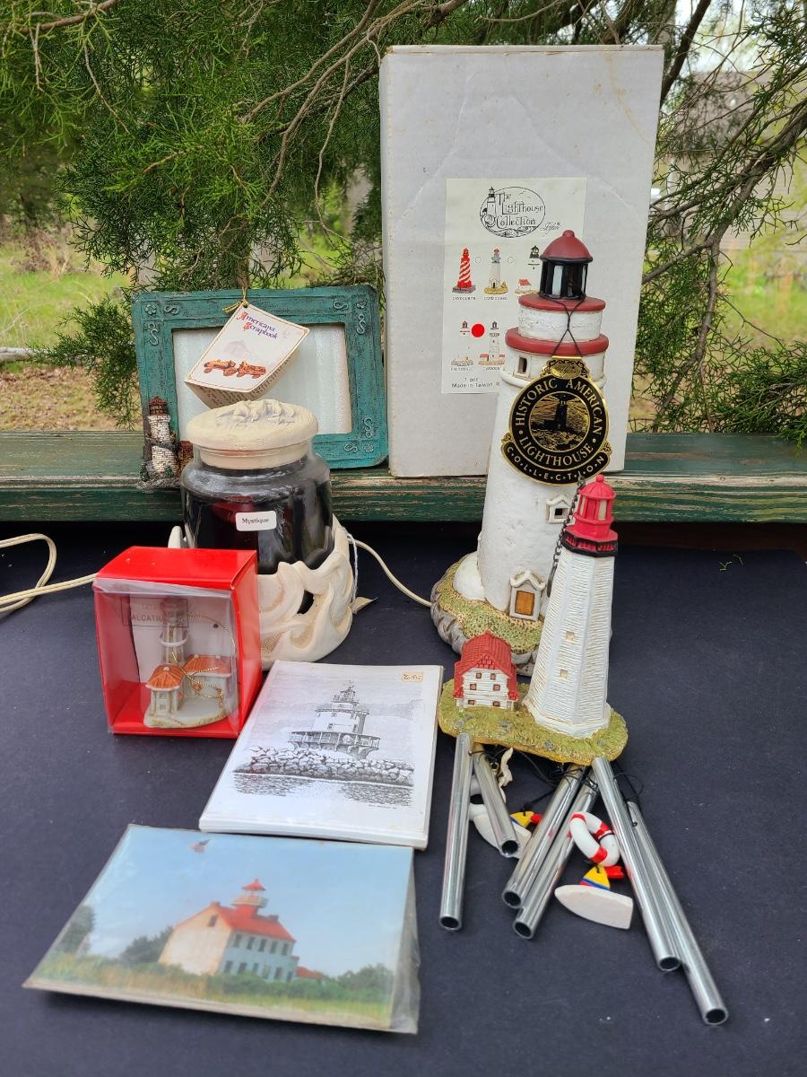 LOT 49C:  Lefton Lighthouse Light, Ornament, Frame, Wave Candle Holder, Windchimes and More