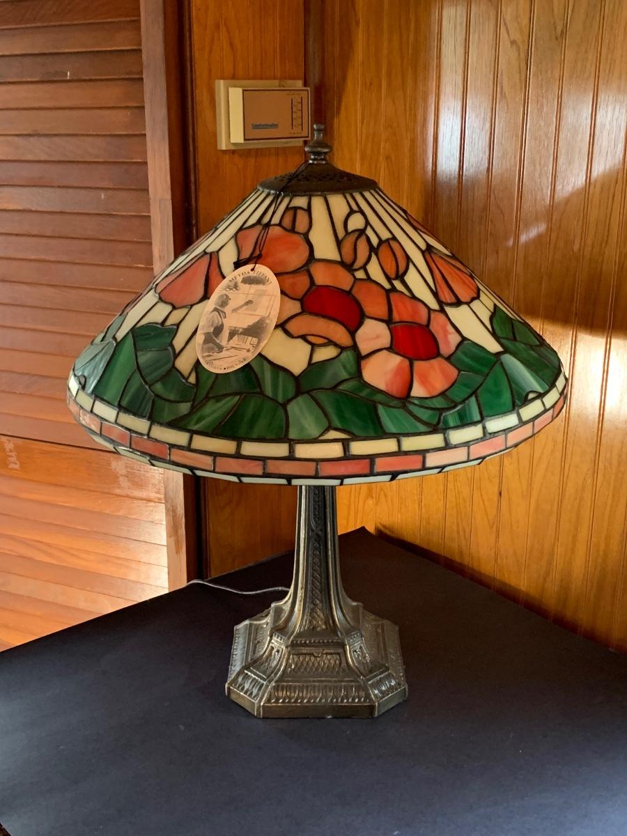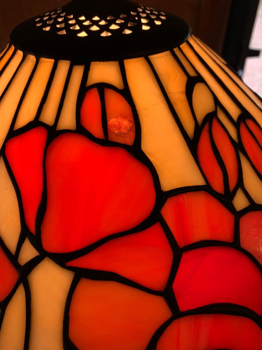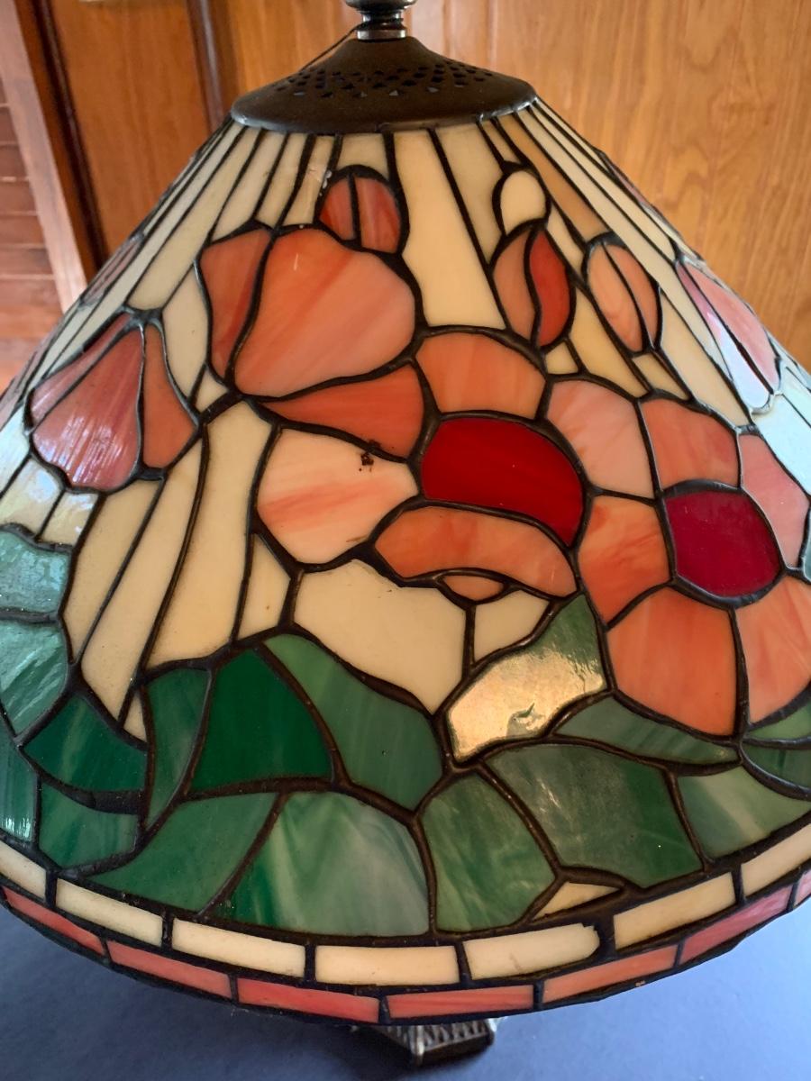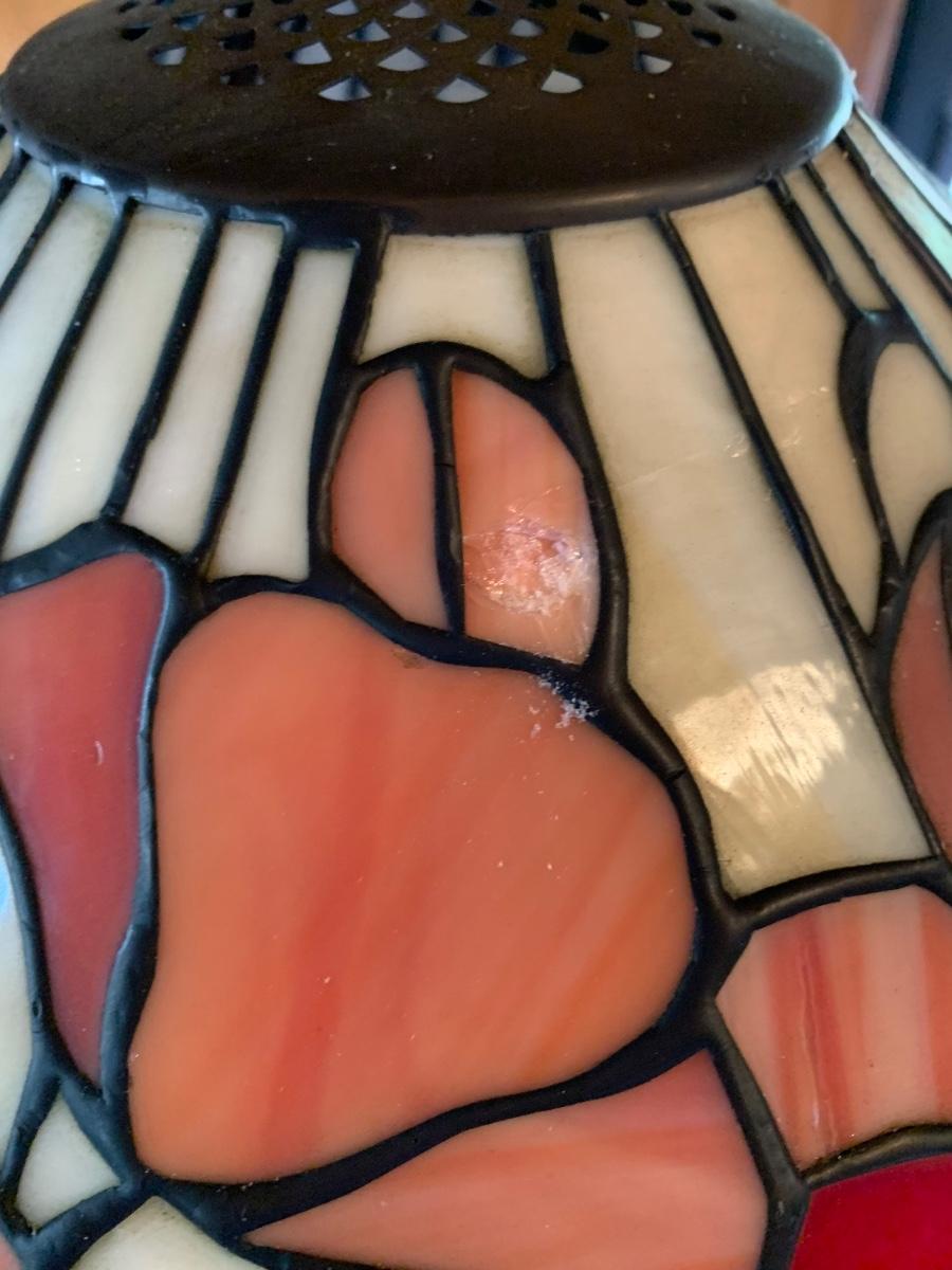 Working Tiffany style lamp with minor flaws in the glass as pictured yet still stunningly beautiful. As-Is.