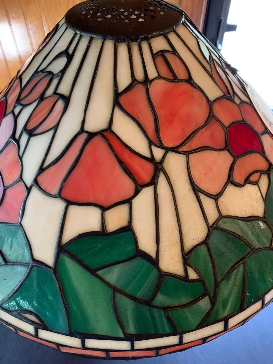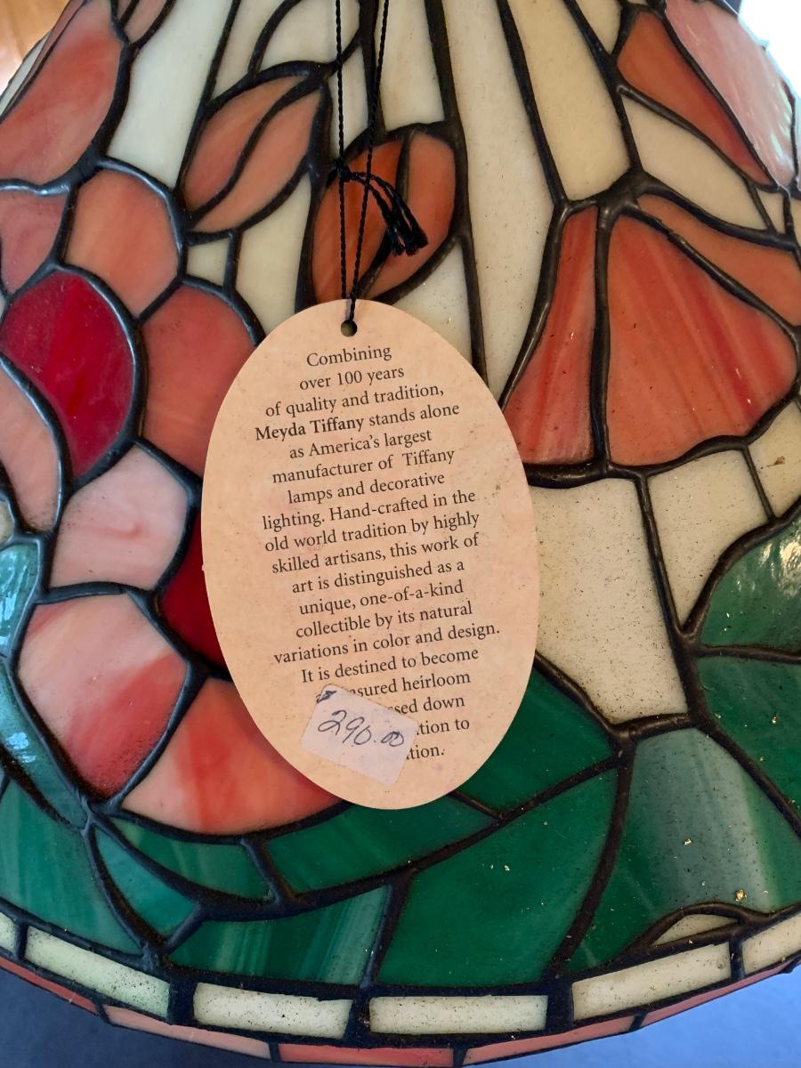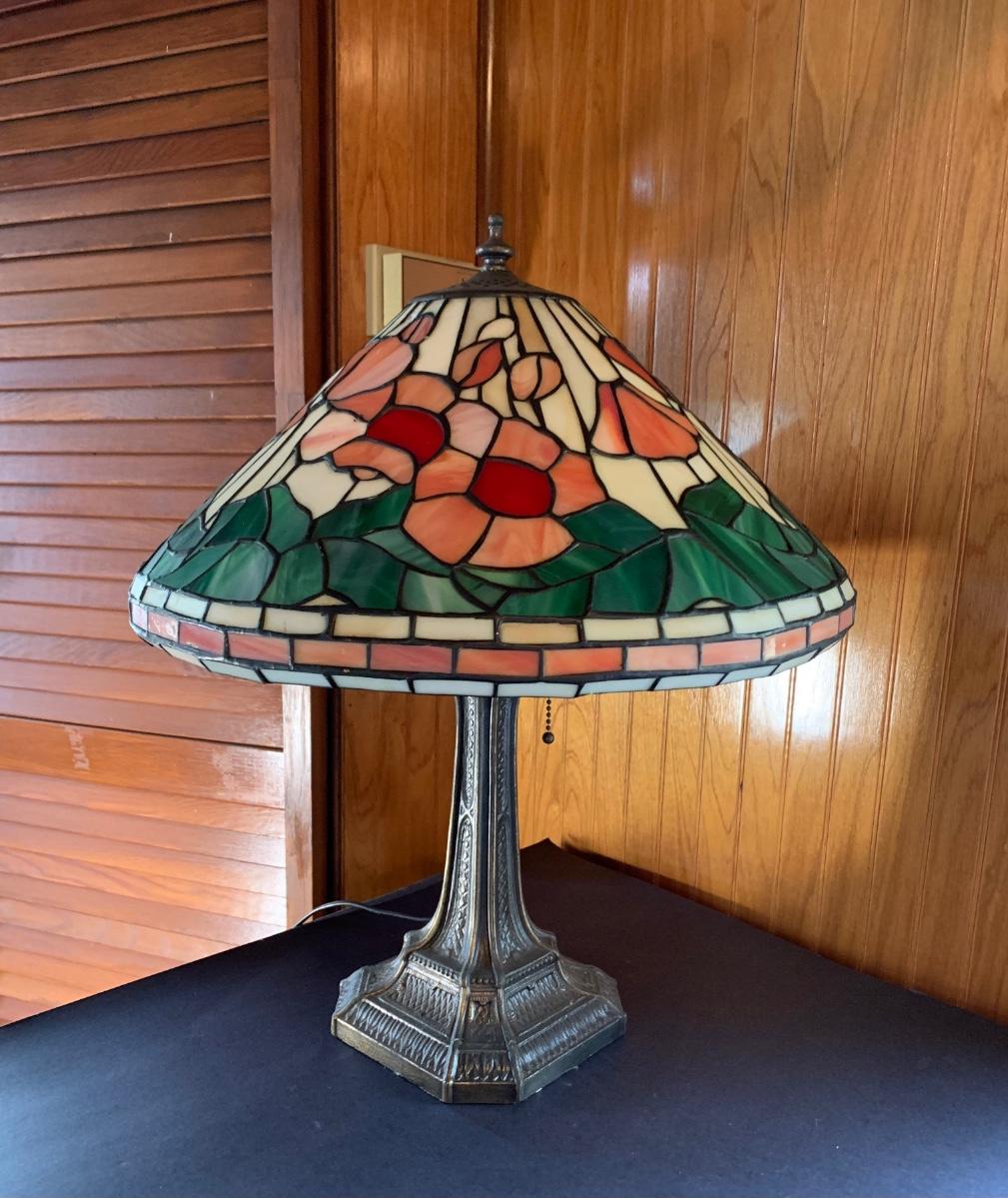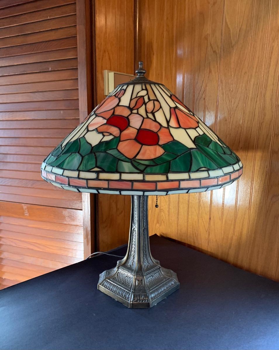 Working Tiffany style lamp with minor flaws in the glass as pictured yet still stunningly beautiful. As-Is.