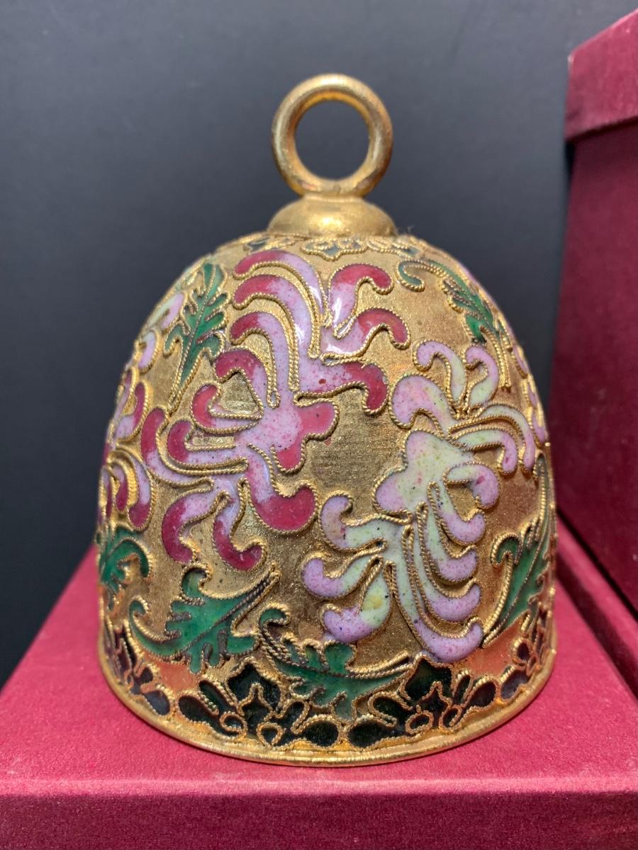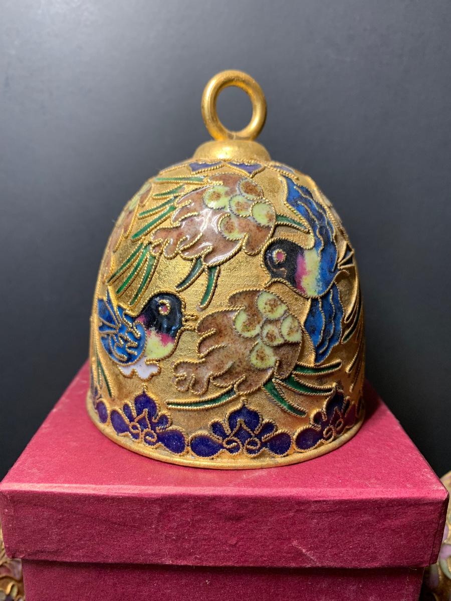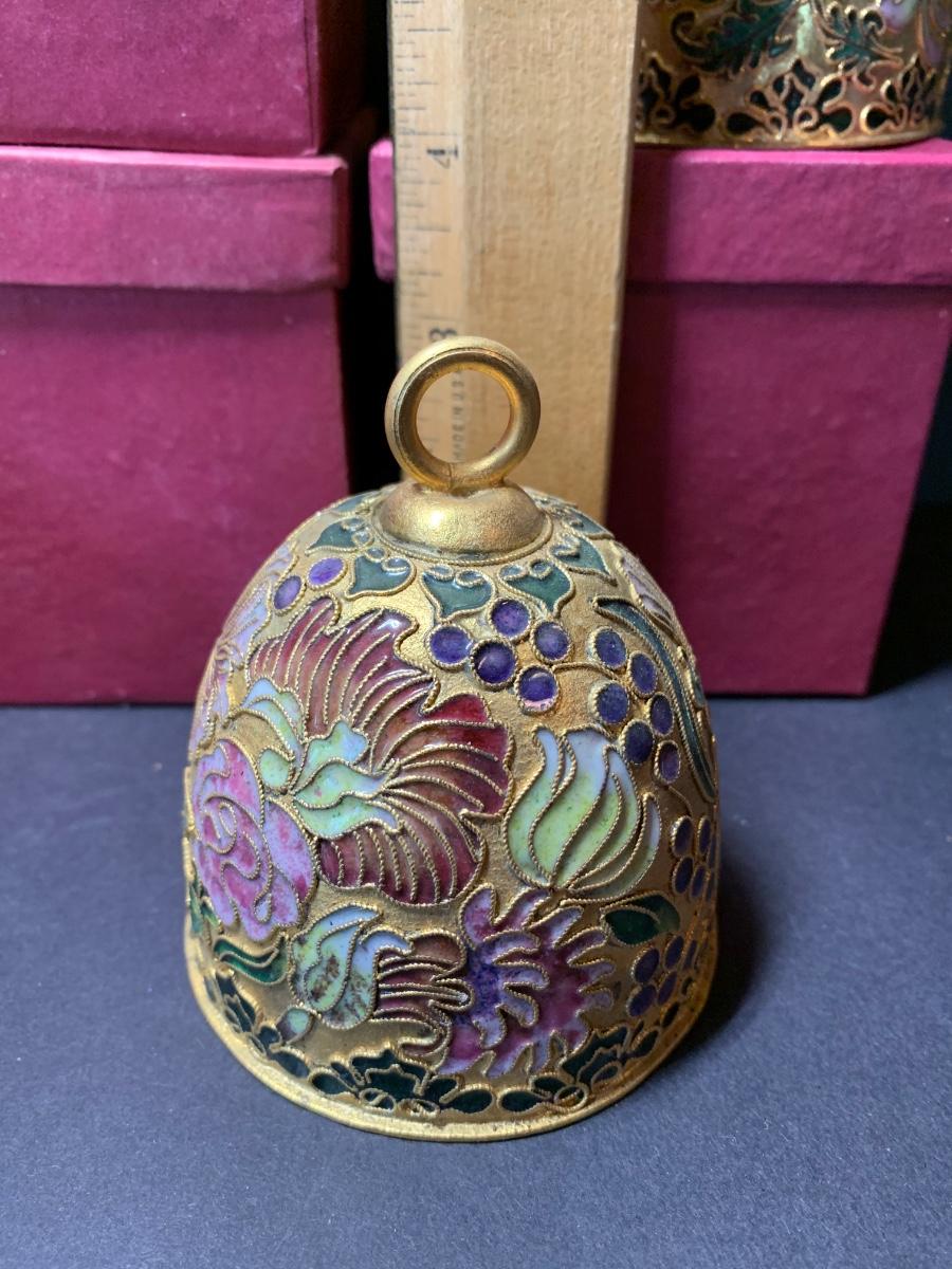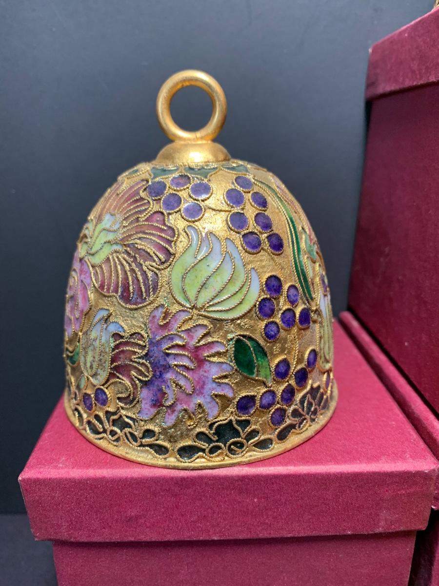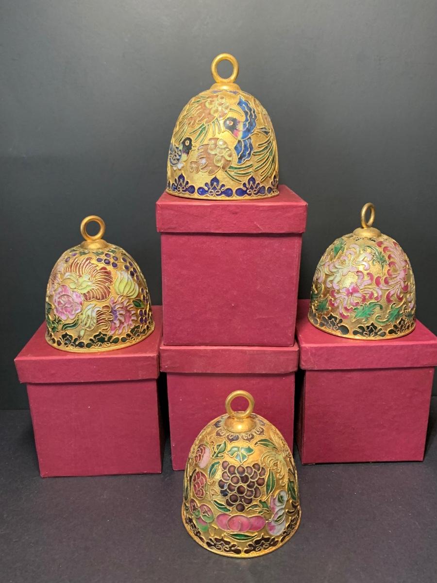LOT 60R: Victorian Enamelling/Cloisonné Style Bell Ornaments w/Boxes: Floral & Birds