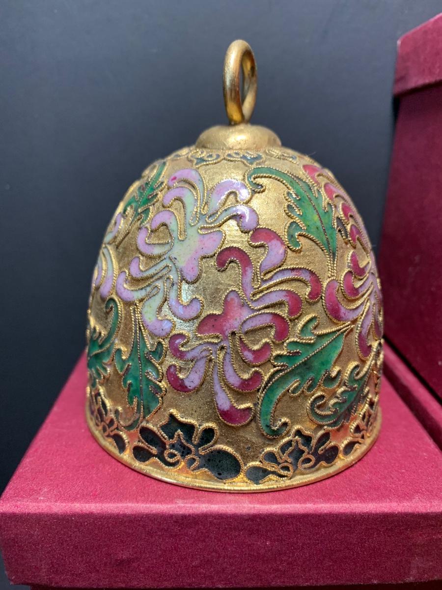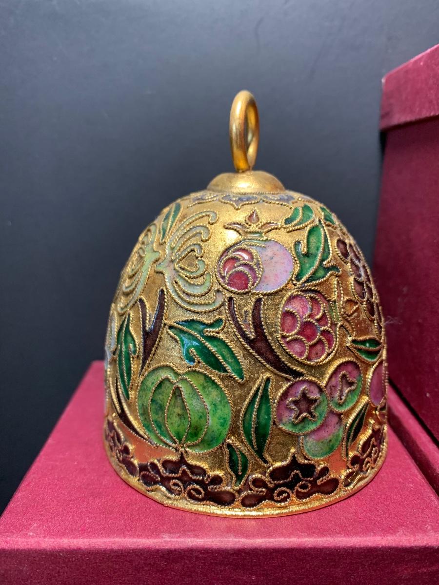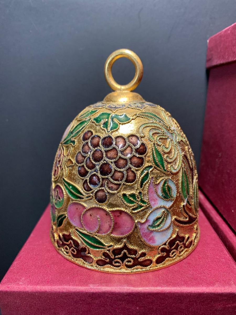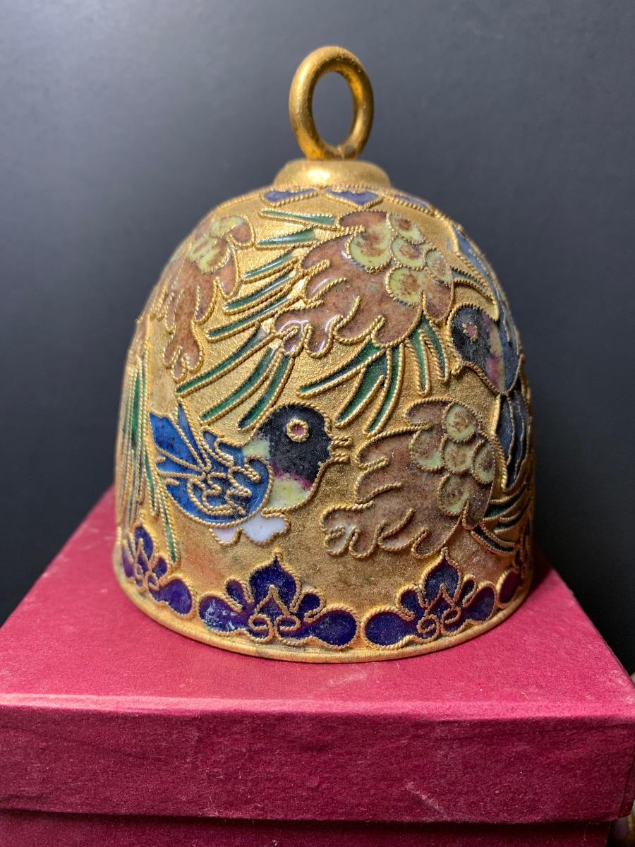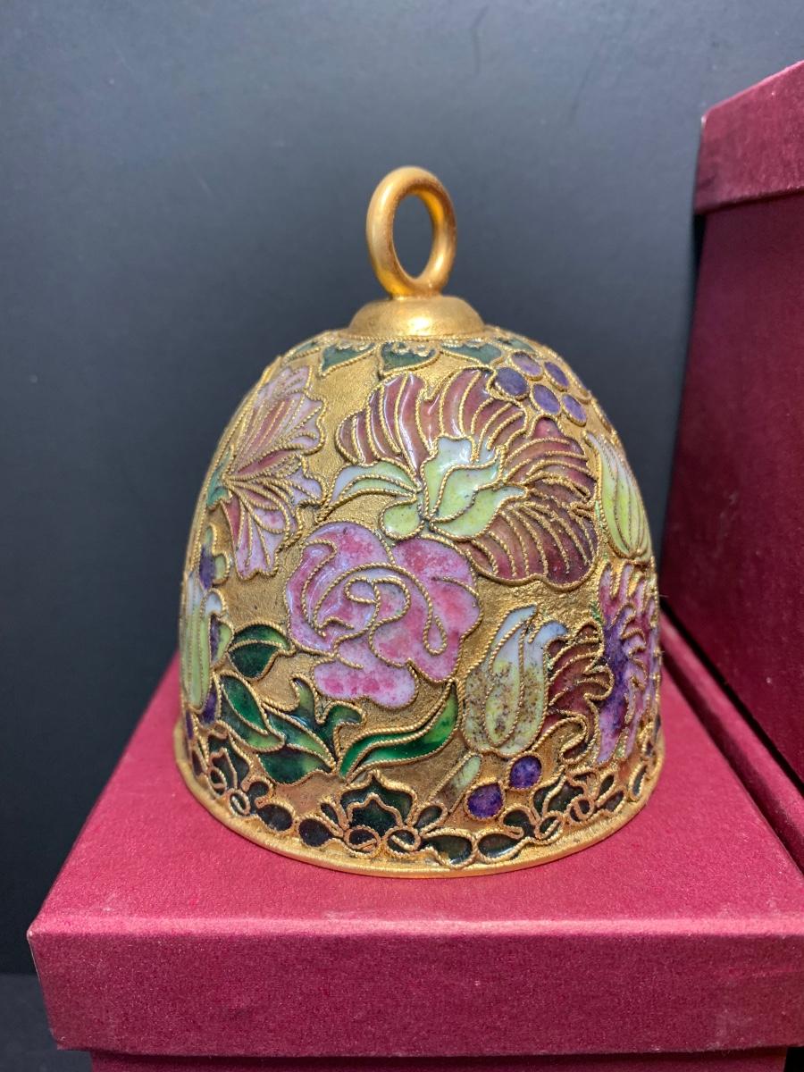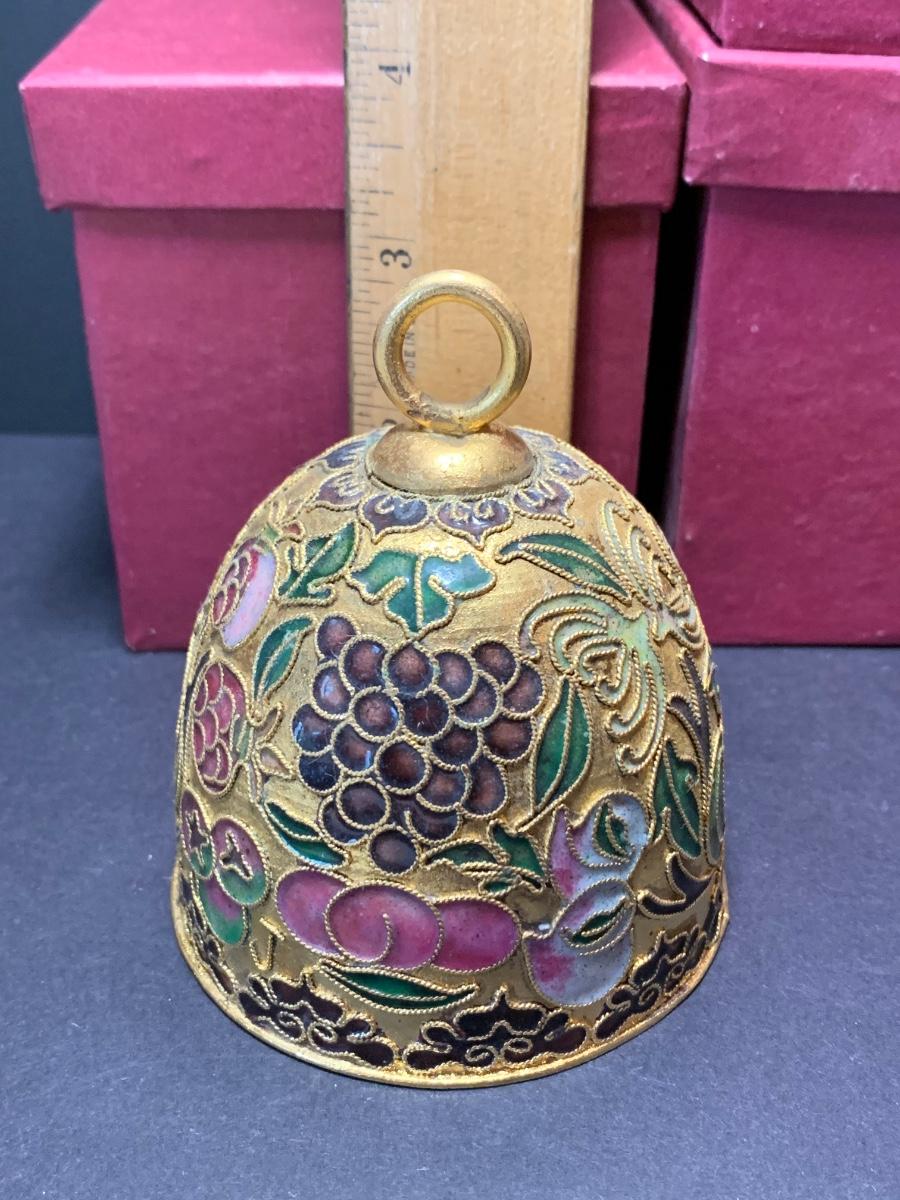 LOT 60R: Victorian Enamelling/Cloisonné Style Bell Ornaments w/Boxes: Floral & Birds