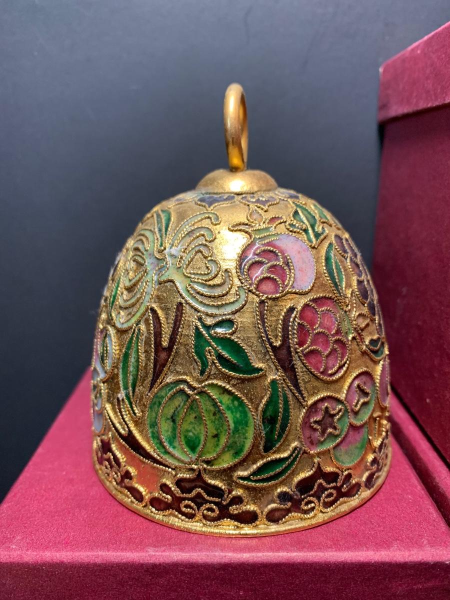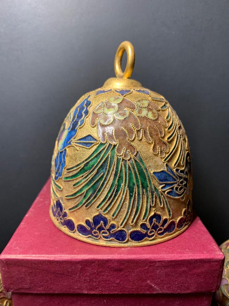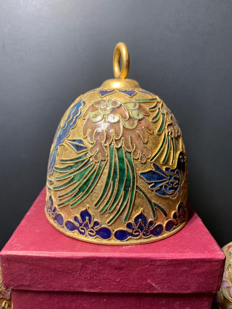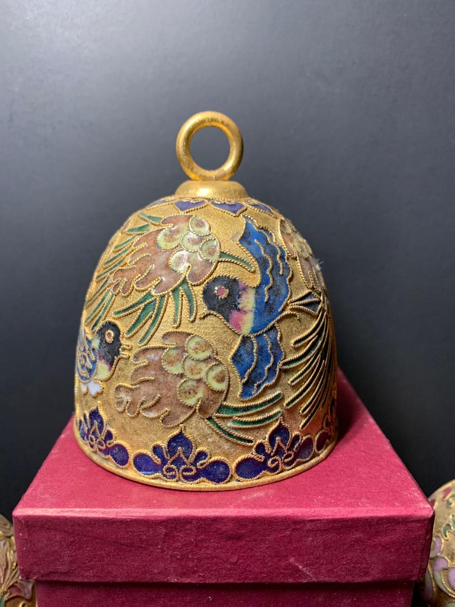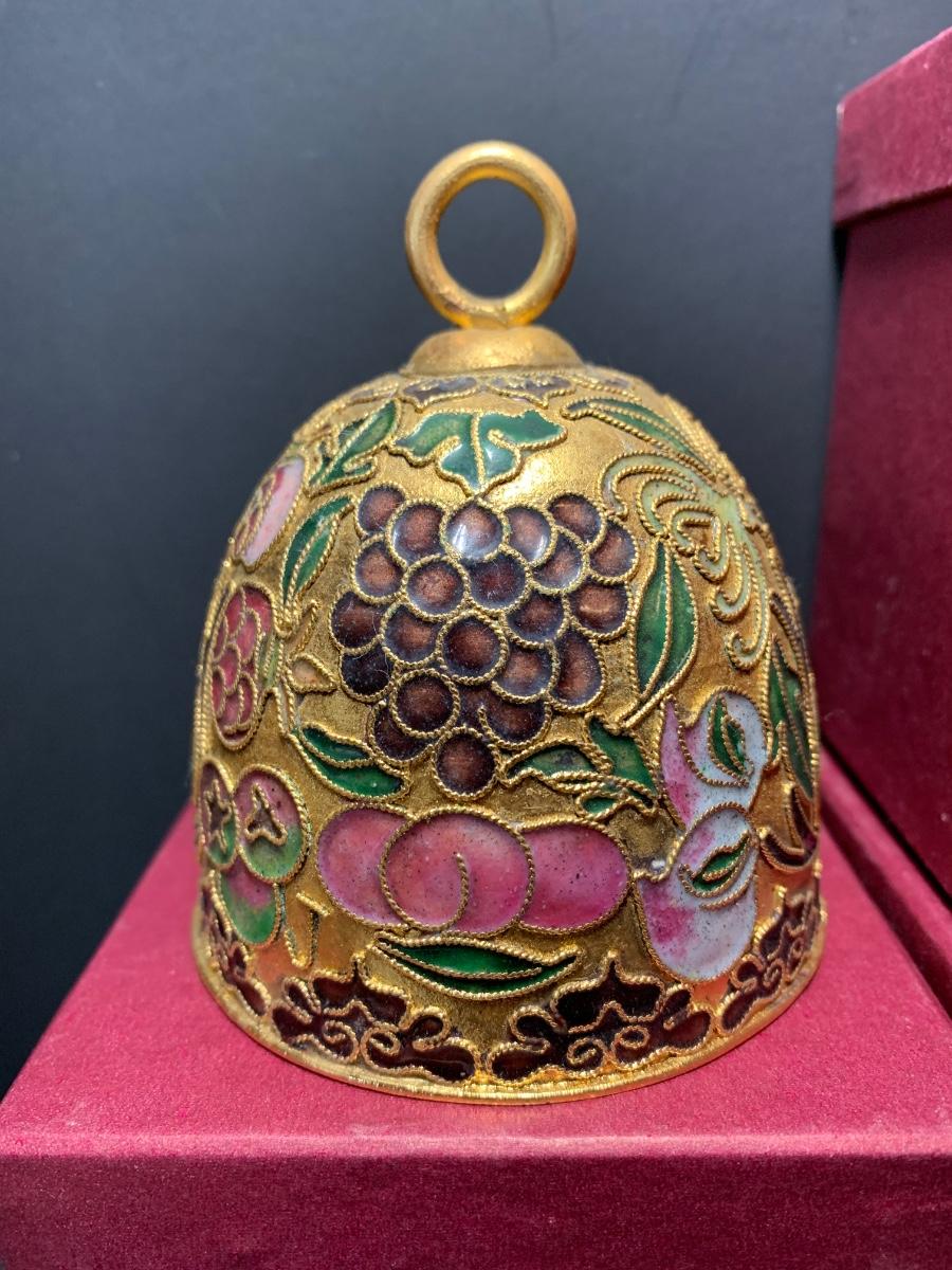 LOT 60R: Victorian Enamelling/Cloisonné Style Bell Ornaments w/Boxes: Floral & Birds