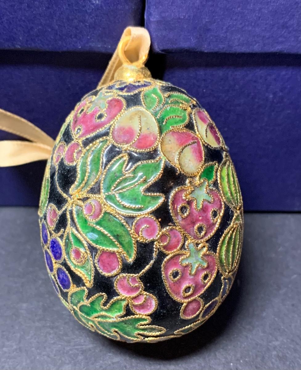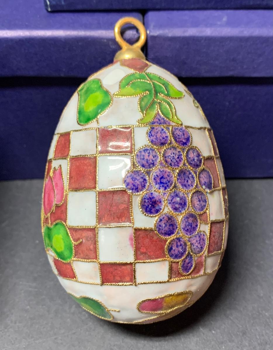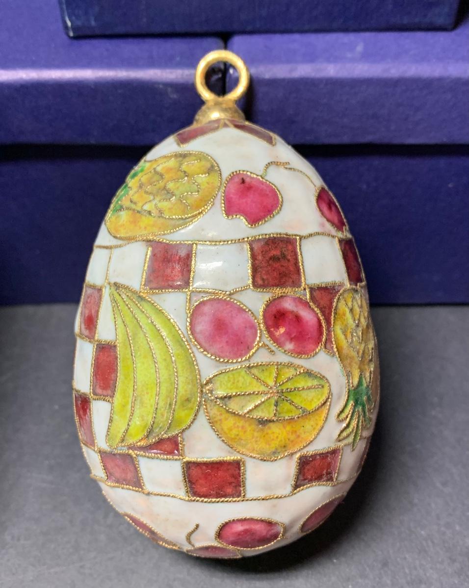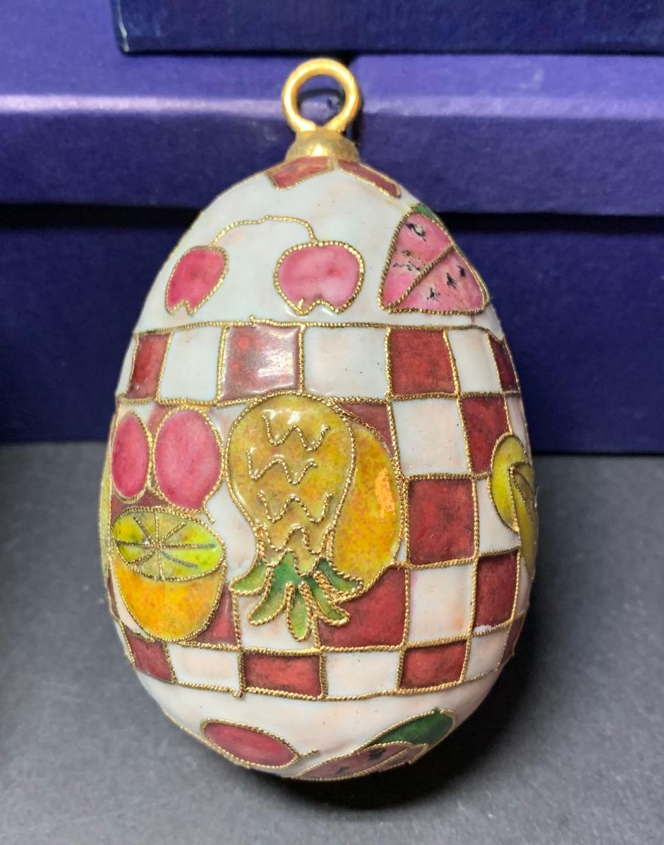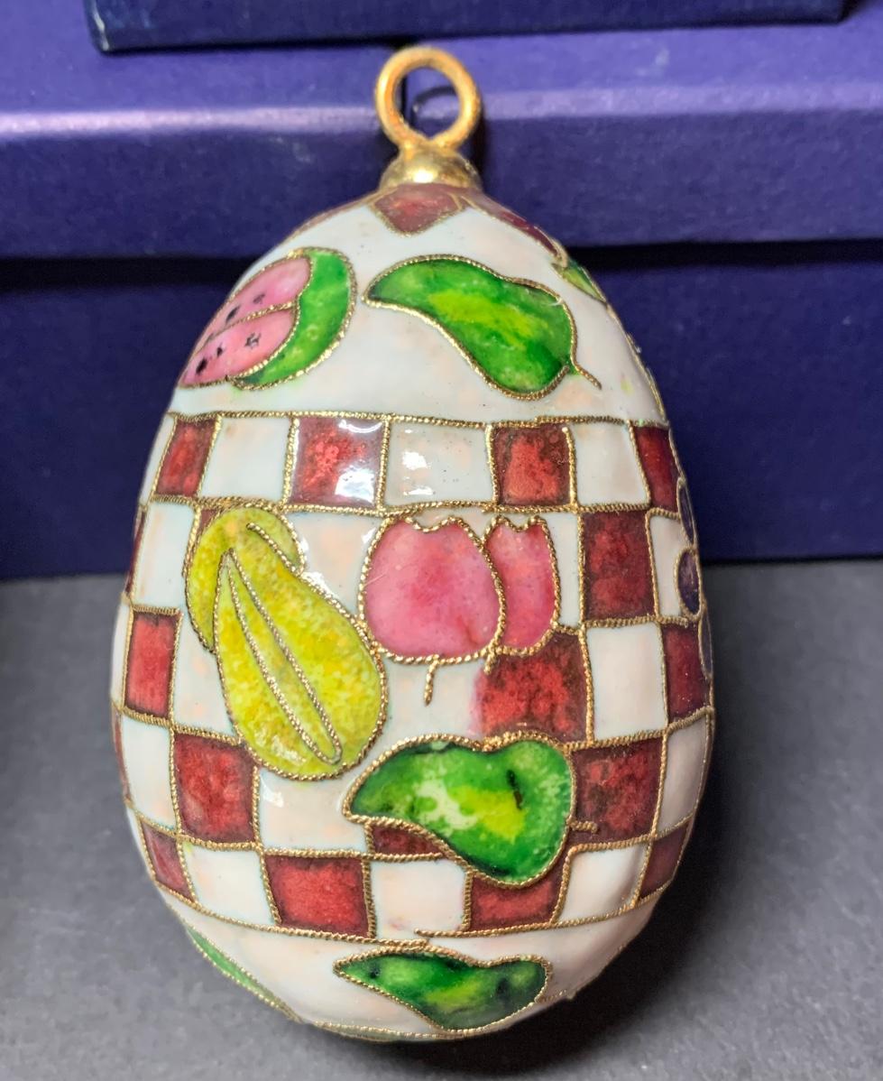 LOT 62R: Victorian Enamelling/Cloisonné Style Egg  Ornaments w/Boxes: Floral & Fruit