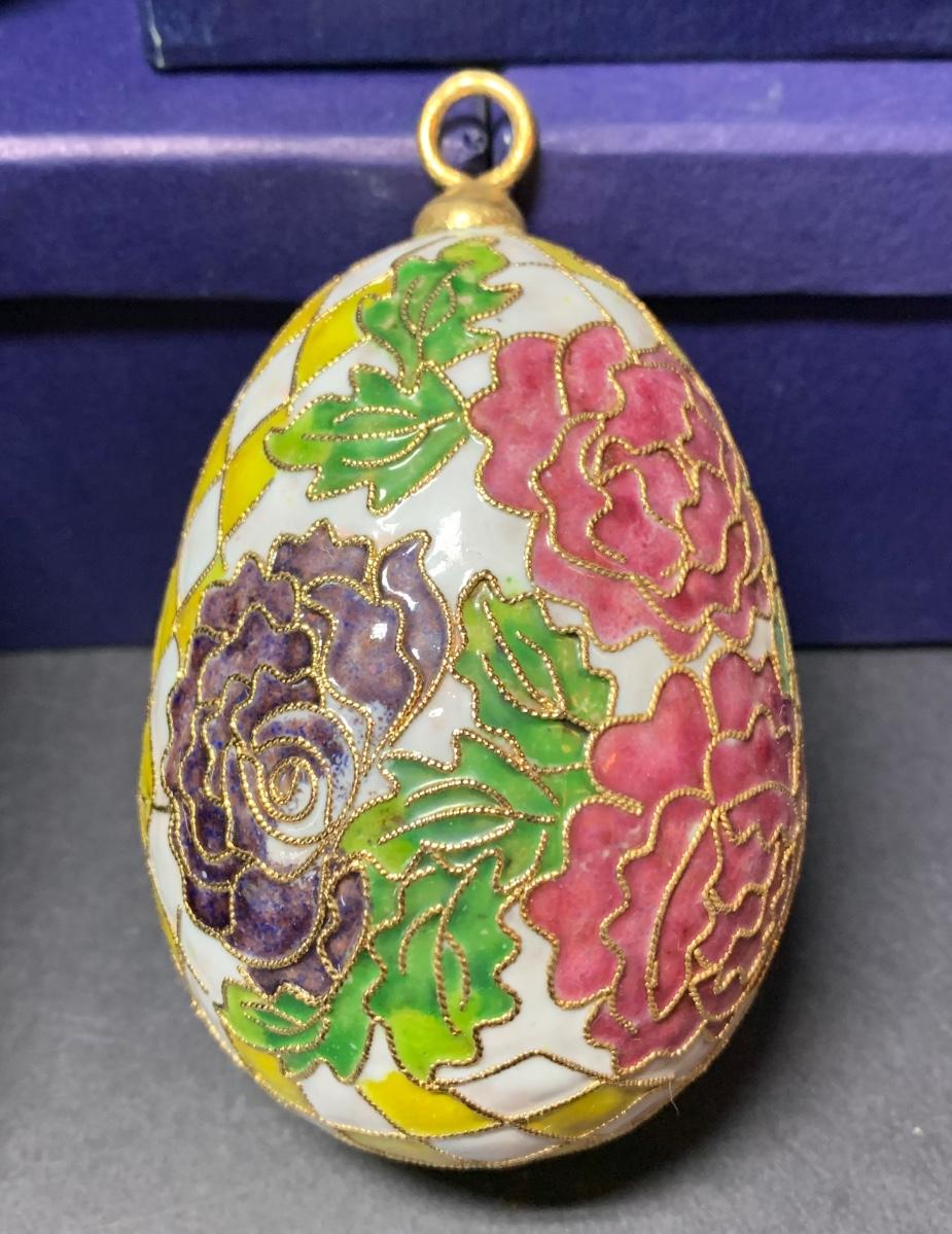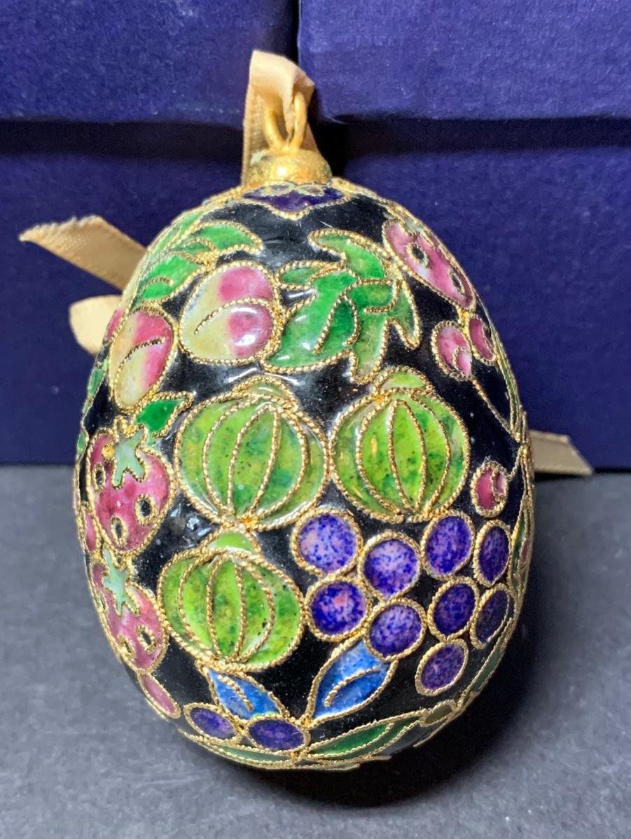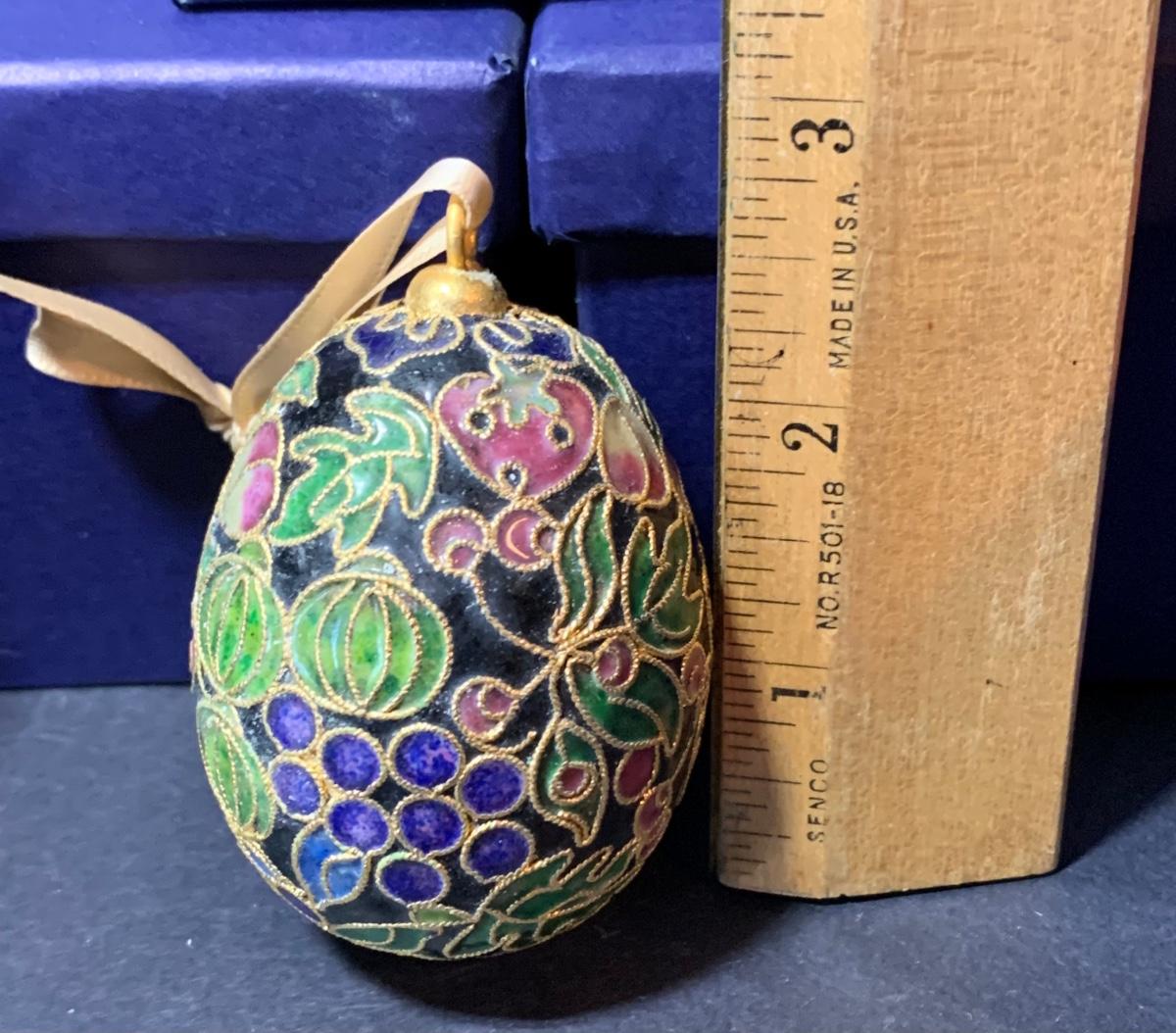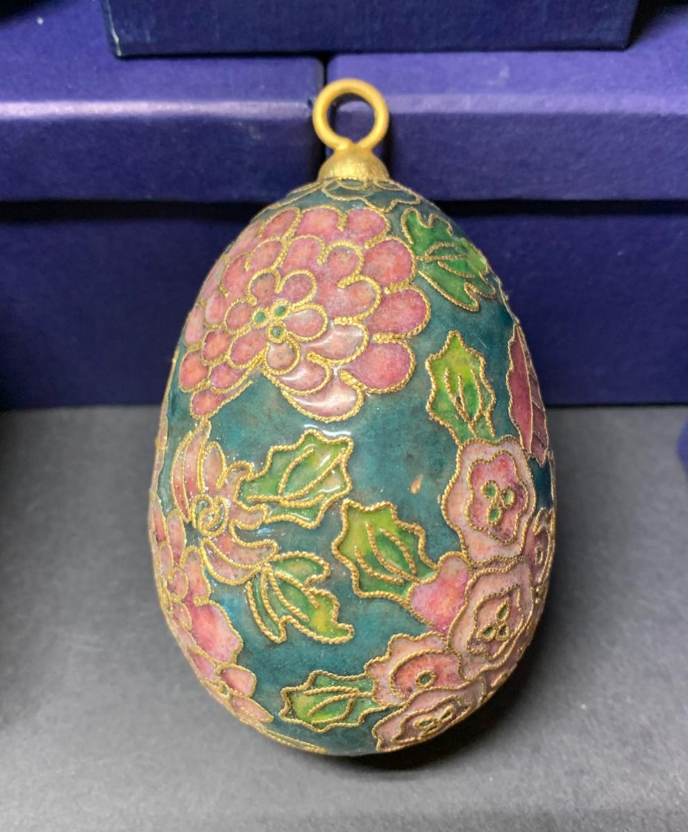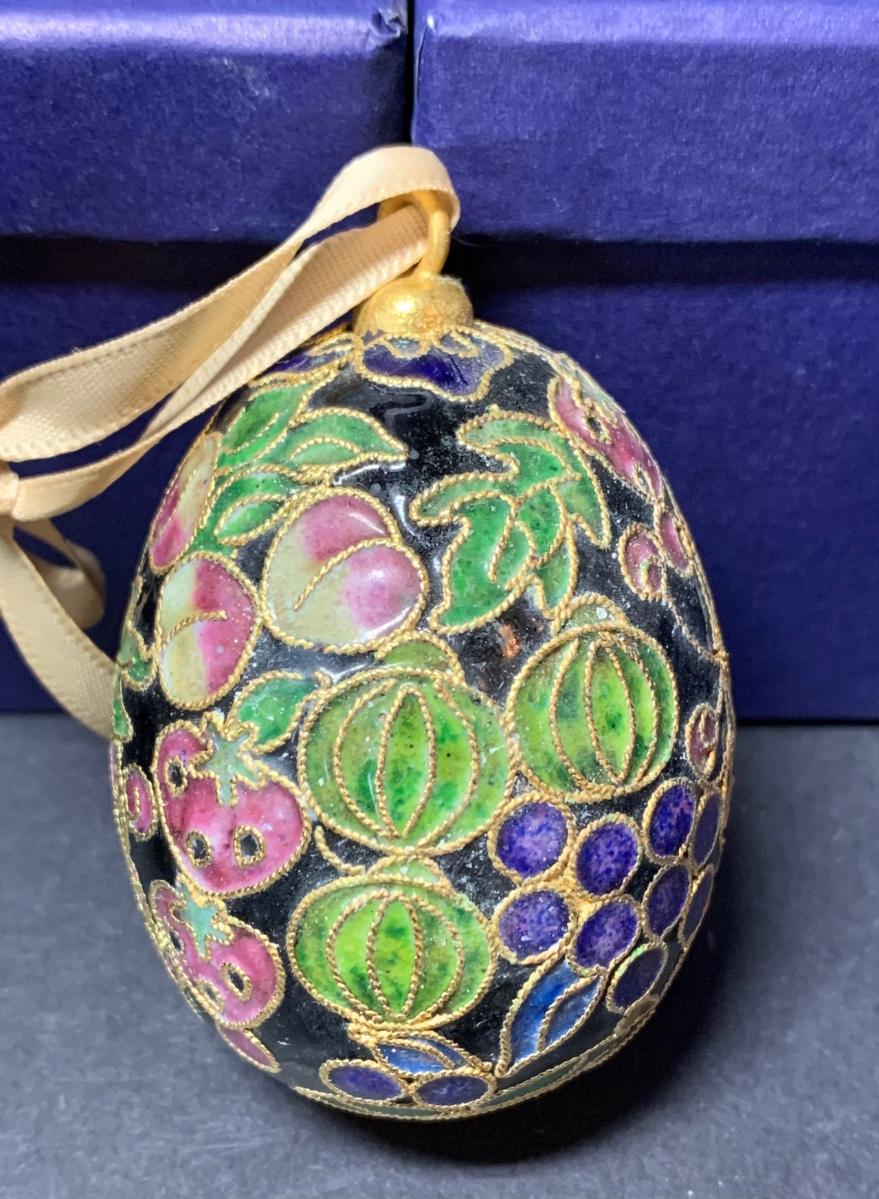 LOT 62R: Victorian Enamelling/Cloisonné Style Egg  Ornaments w/Boxes: Floral & Fruit