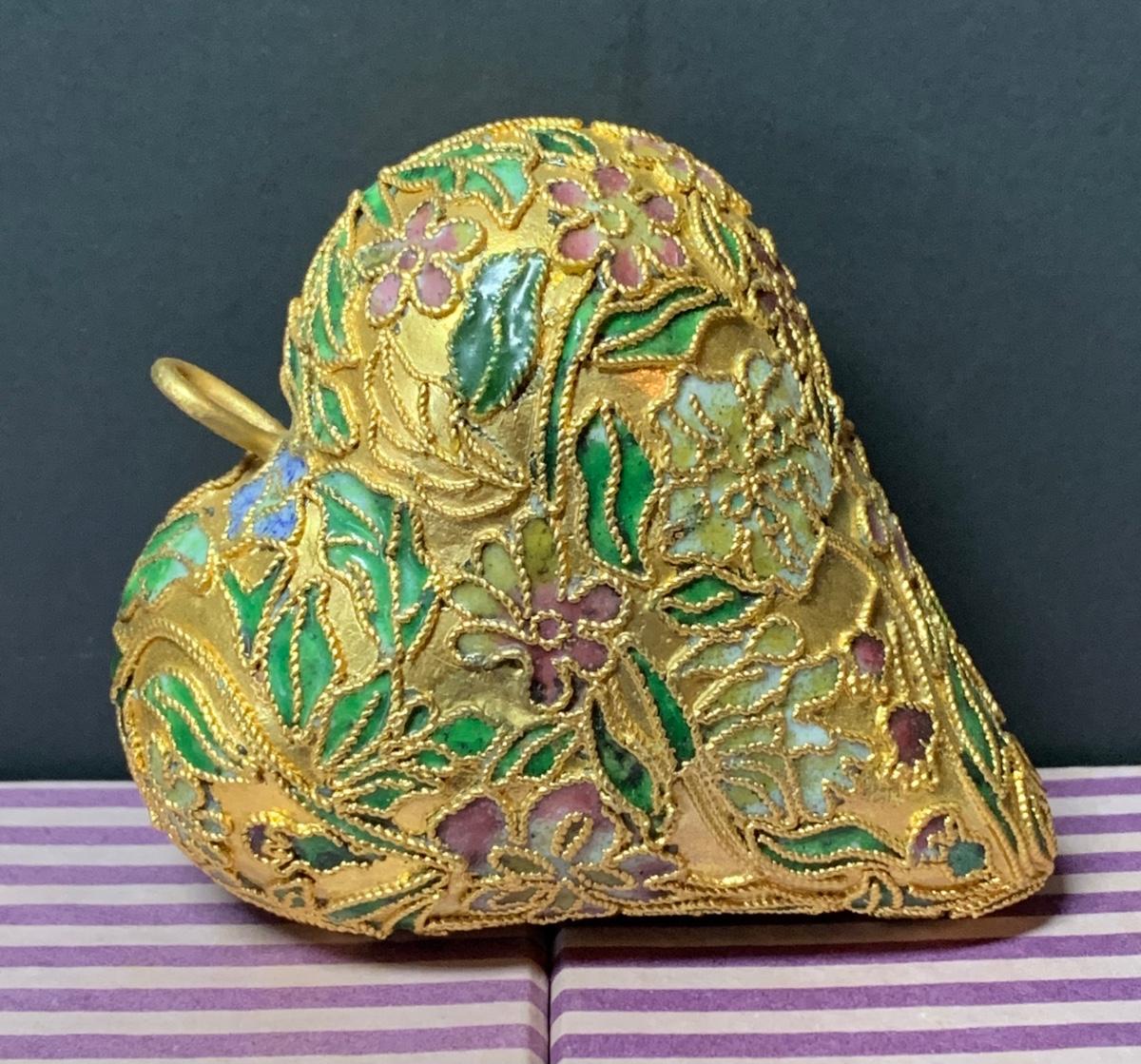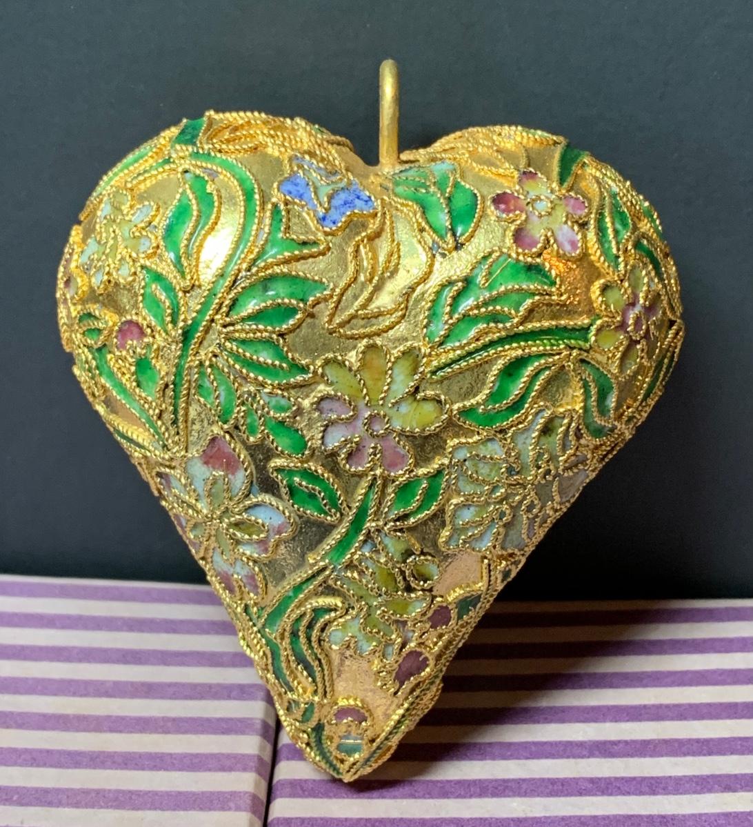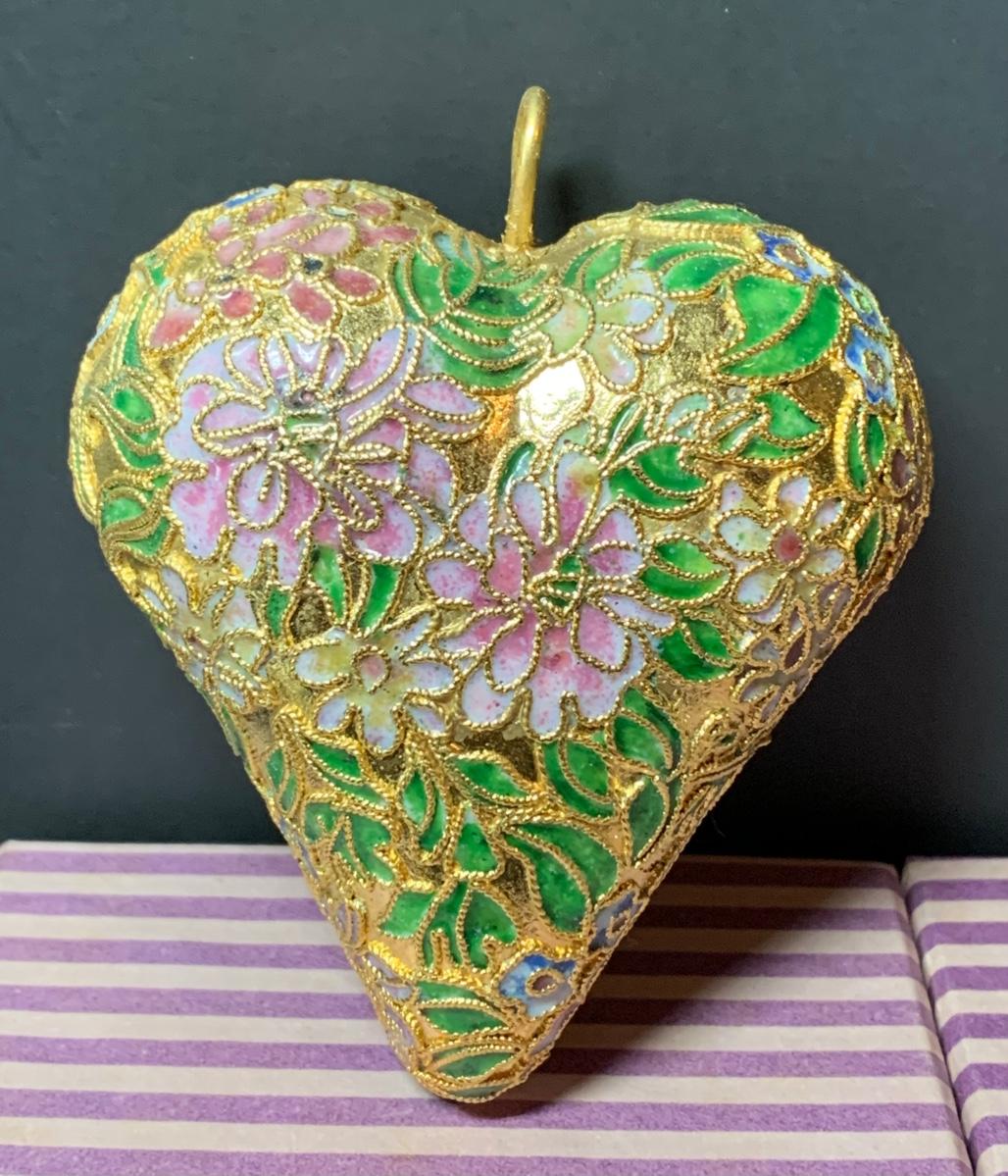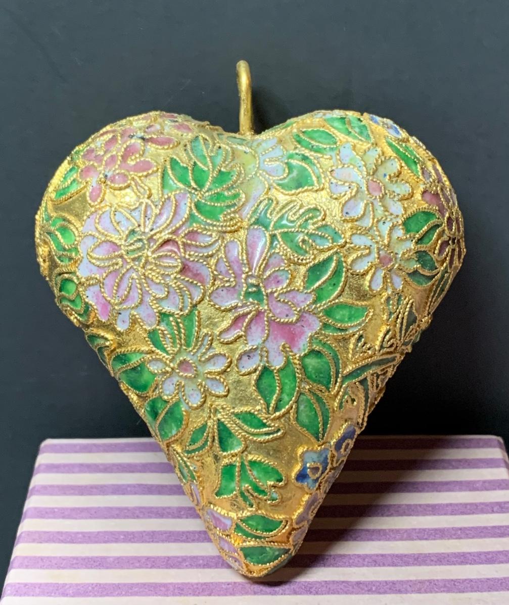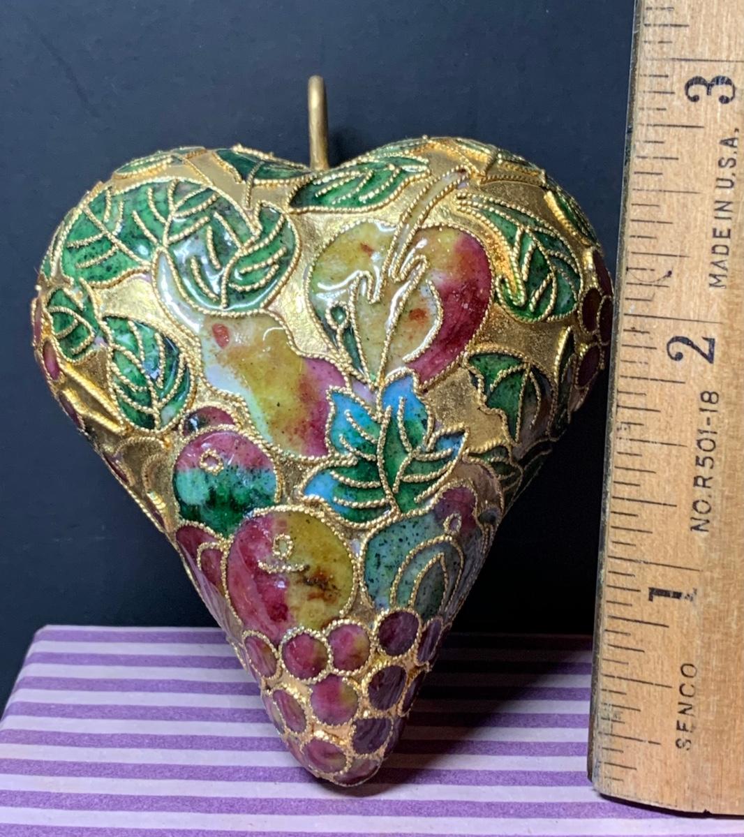 LOT 63R: Victorian Enamelling/Cloisonné Style Heart Ornaments w/Boxes: Fruit & Floral