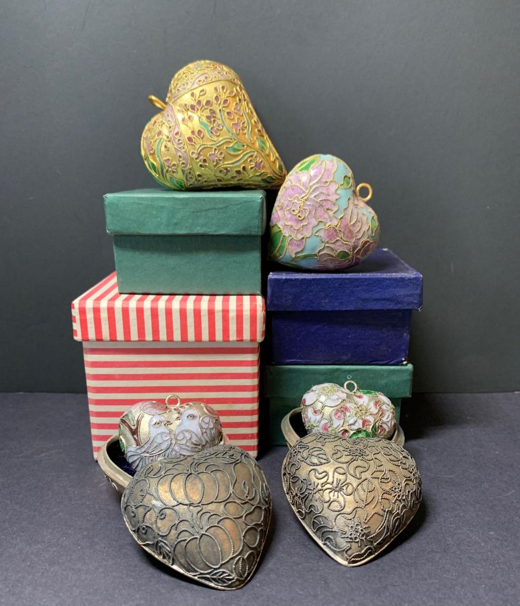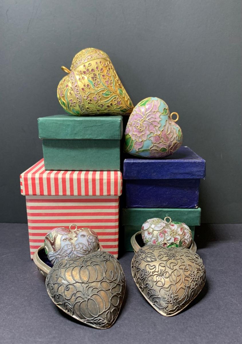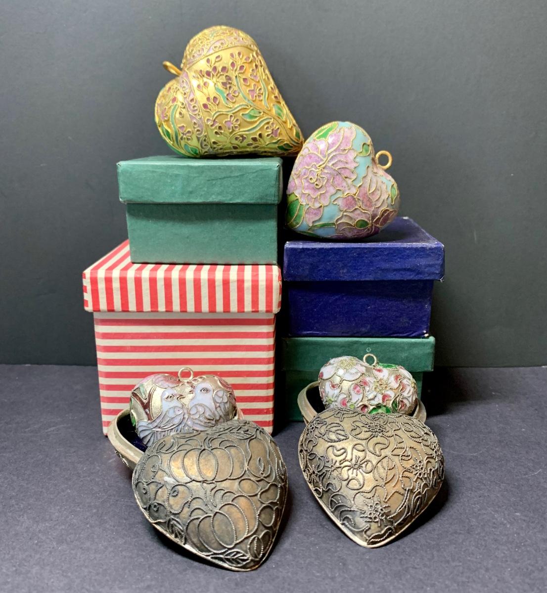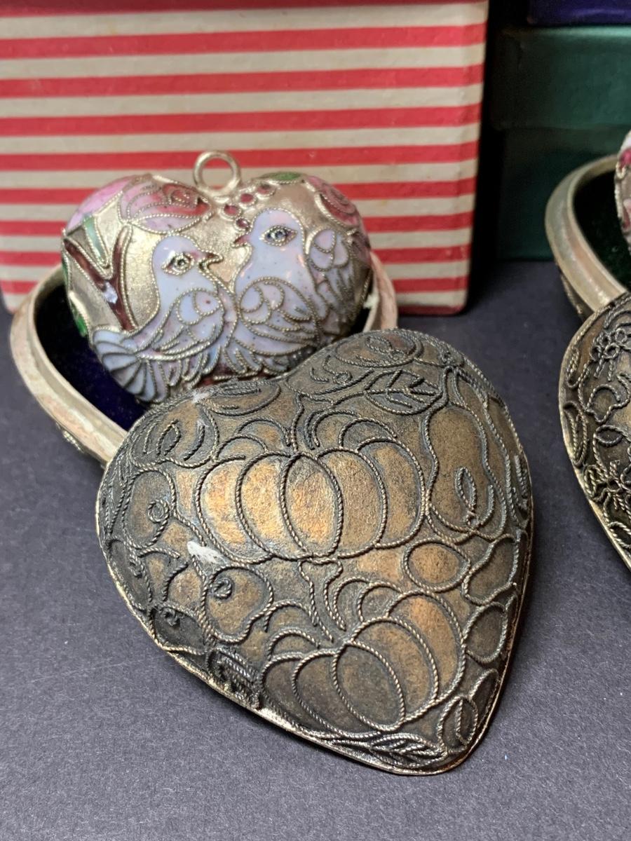 LOT 64R Victorian Enamelling/Cloisonné Style Trinkets Boxes & Heart Ornaments w/Boxes