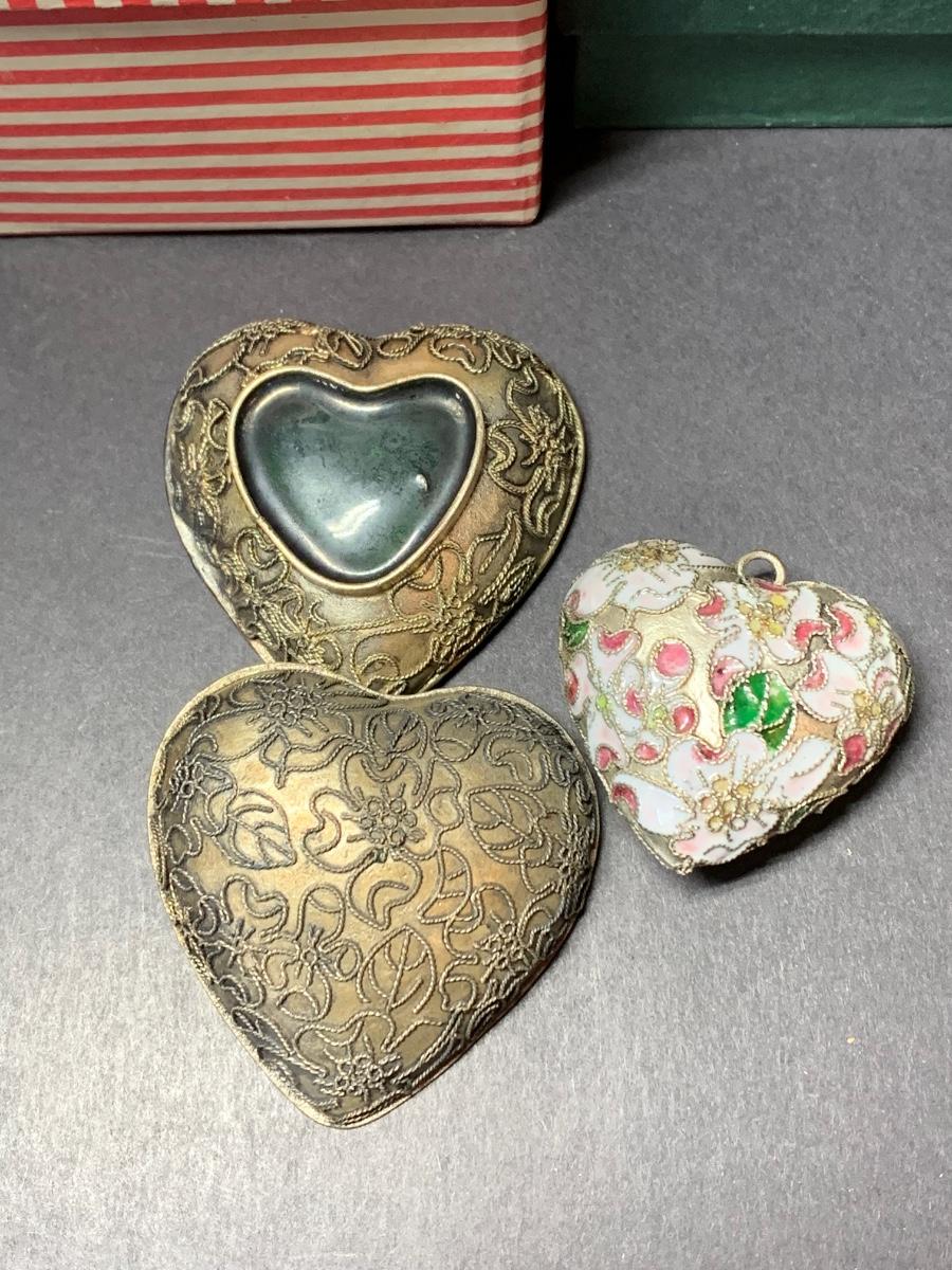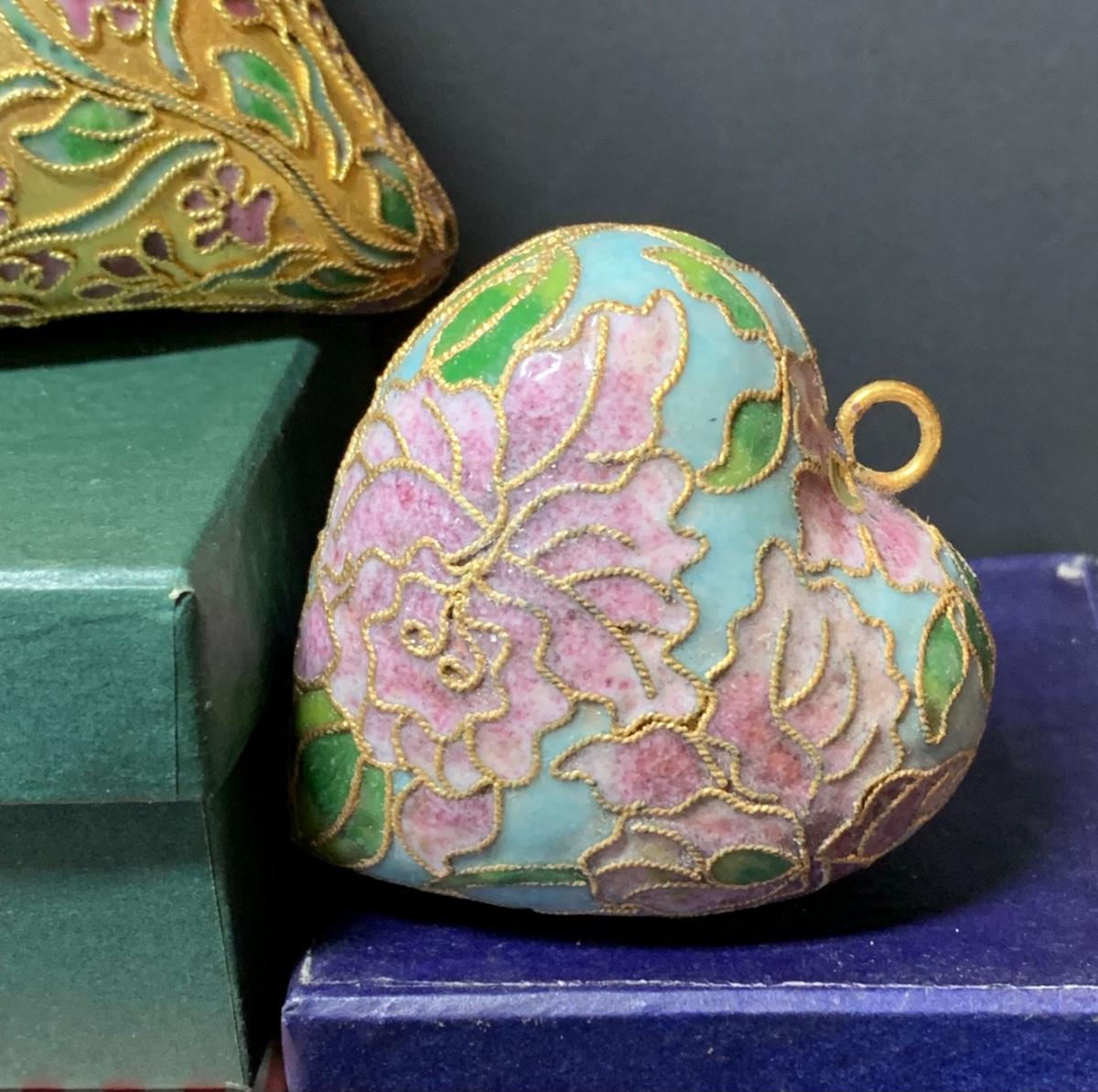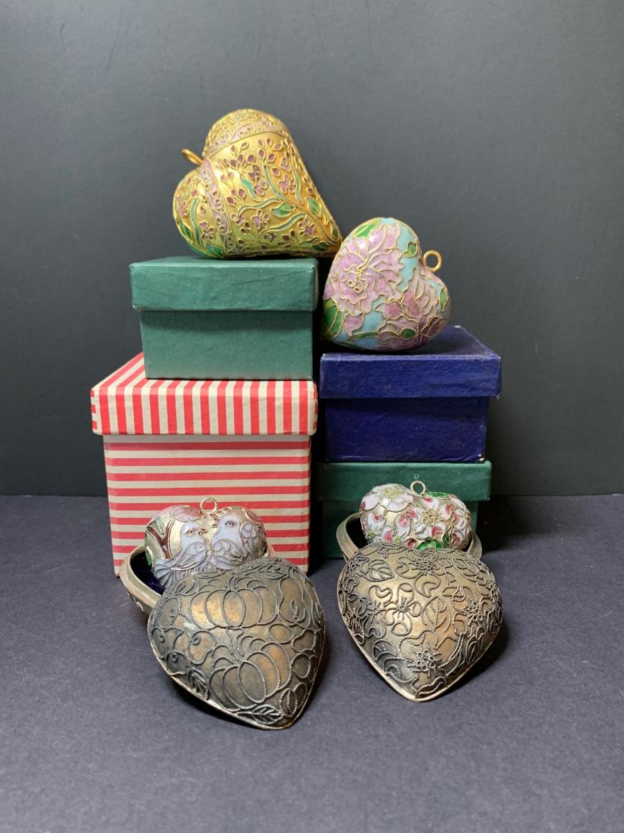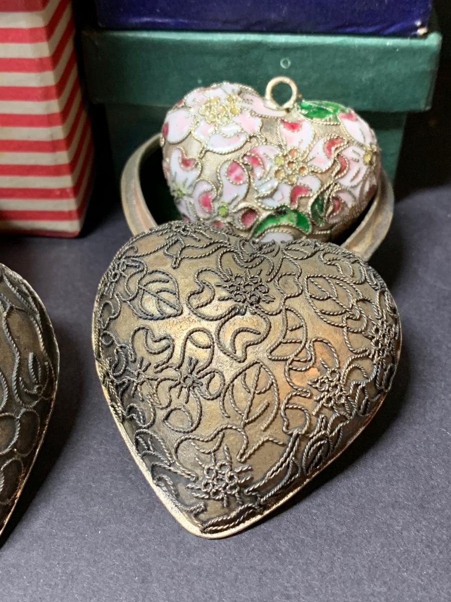 LOT 64R Victorian Enamelling/Cloisonné Style Trinkets Boxes & Heart Ornaments w/Boxes
