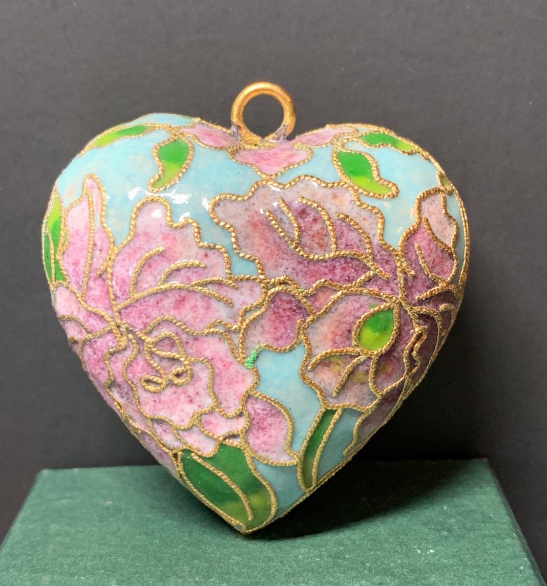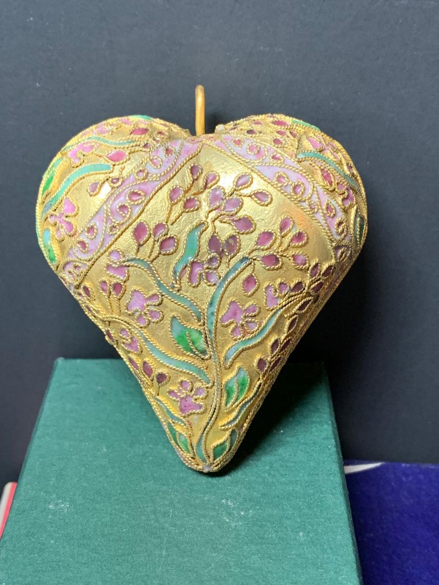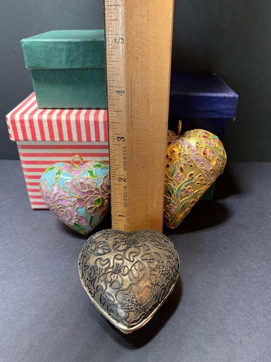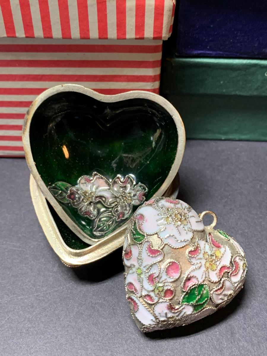 LOT 64R Victorian Enamelling/Cloisonné Style Trinkets Boxes & Heart Ornaments w/Boxes