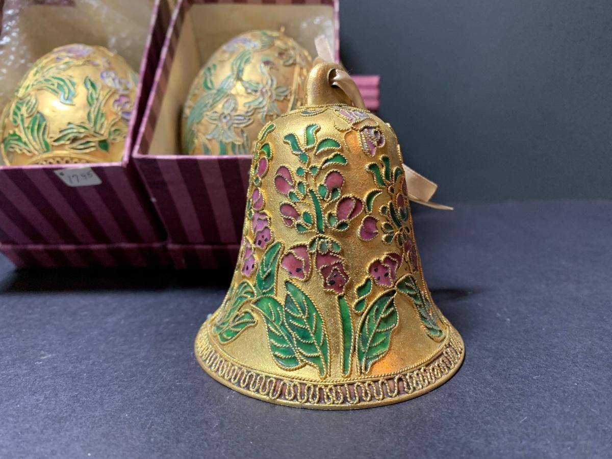 LOT 68R: Victorian Enamelling/Cloisonné Style Bell & Egg Ornaments