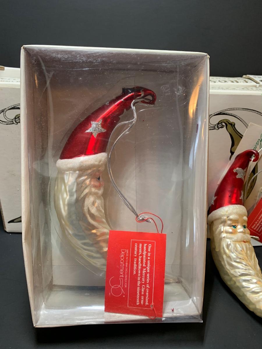 LOT 84R: Dept 56 Santa Moon & Frosted Mercury Glass Moon