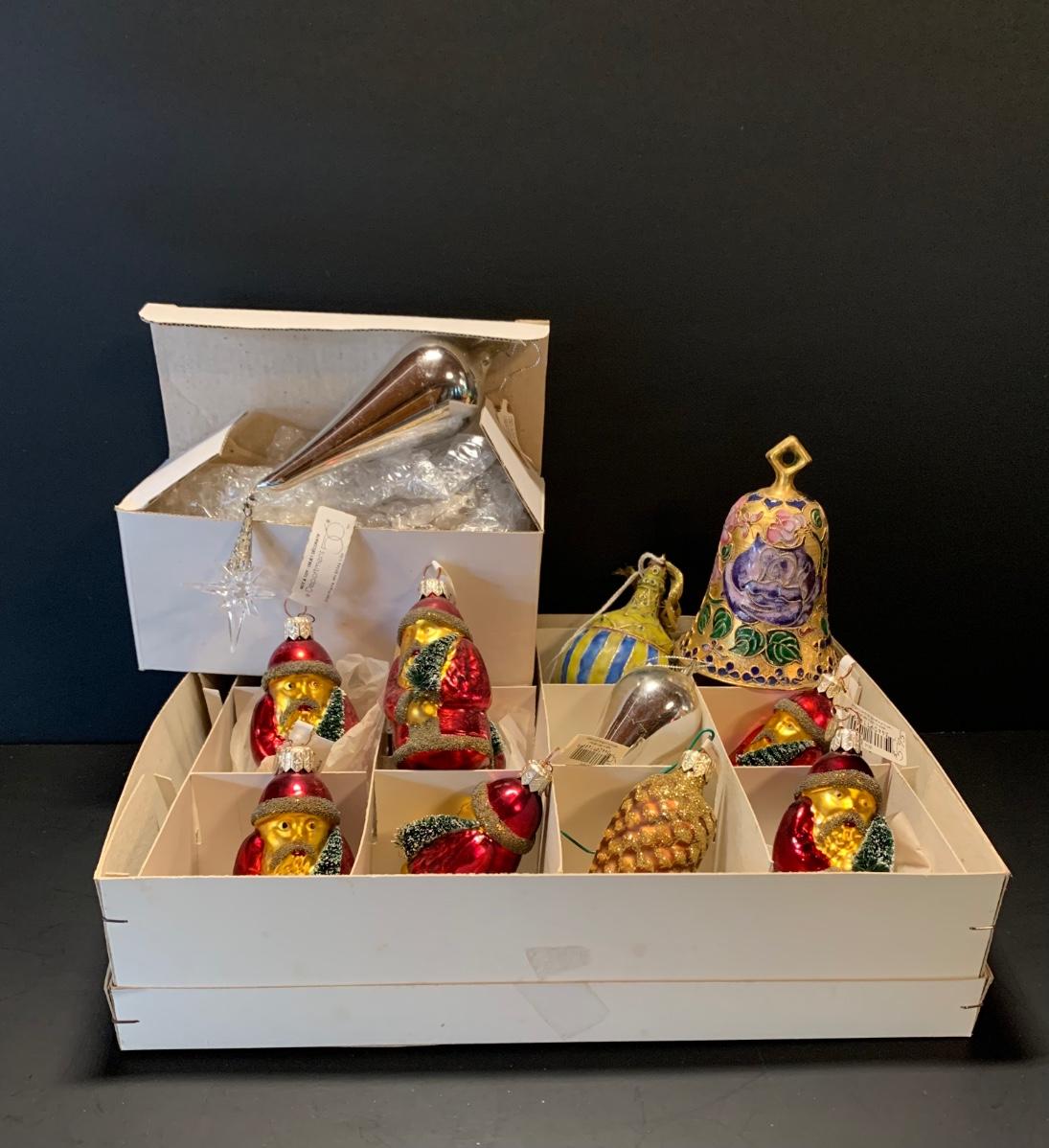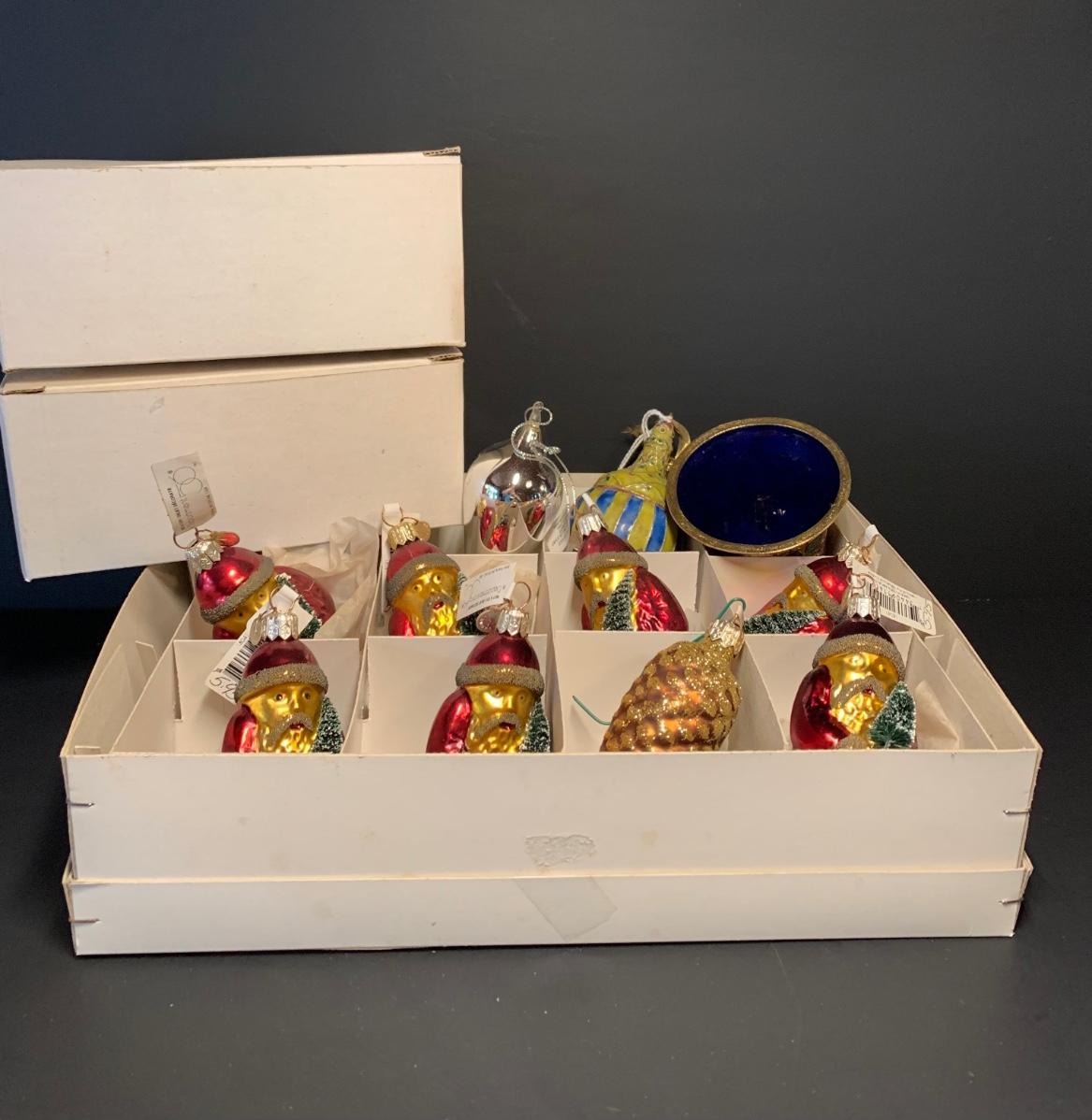 Dept 56 mercury glass ornaments along with whimsical & floral Victorian Enamelling ornaments