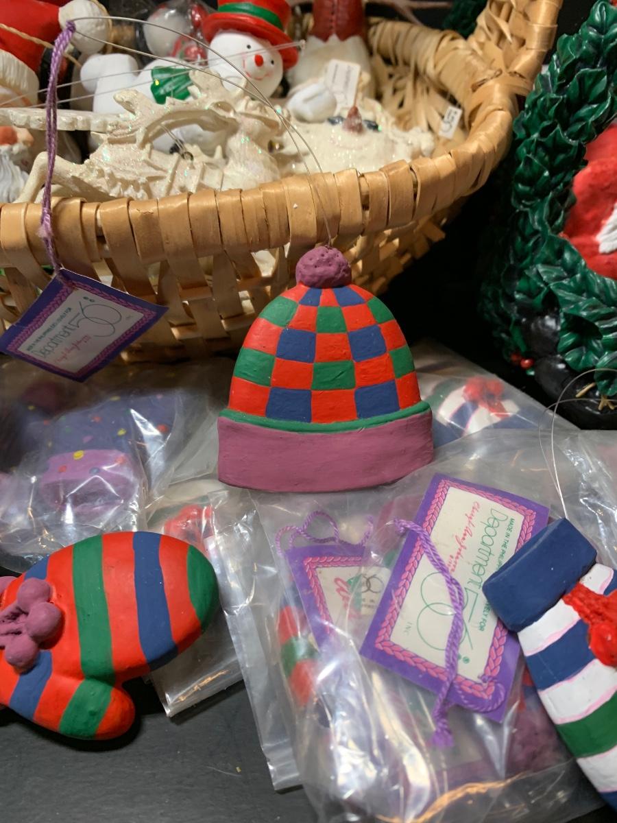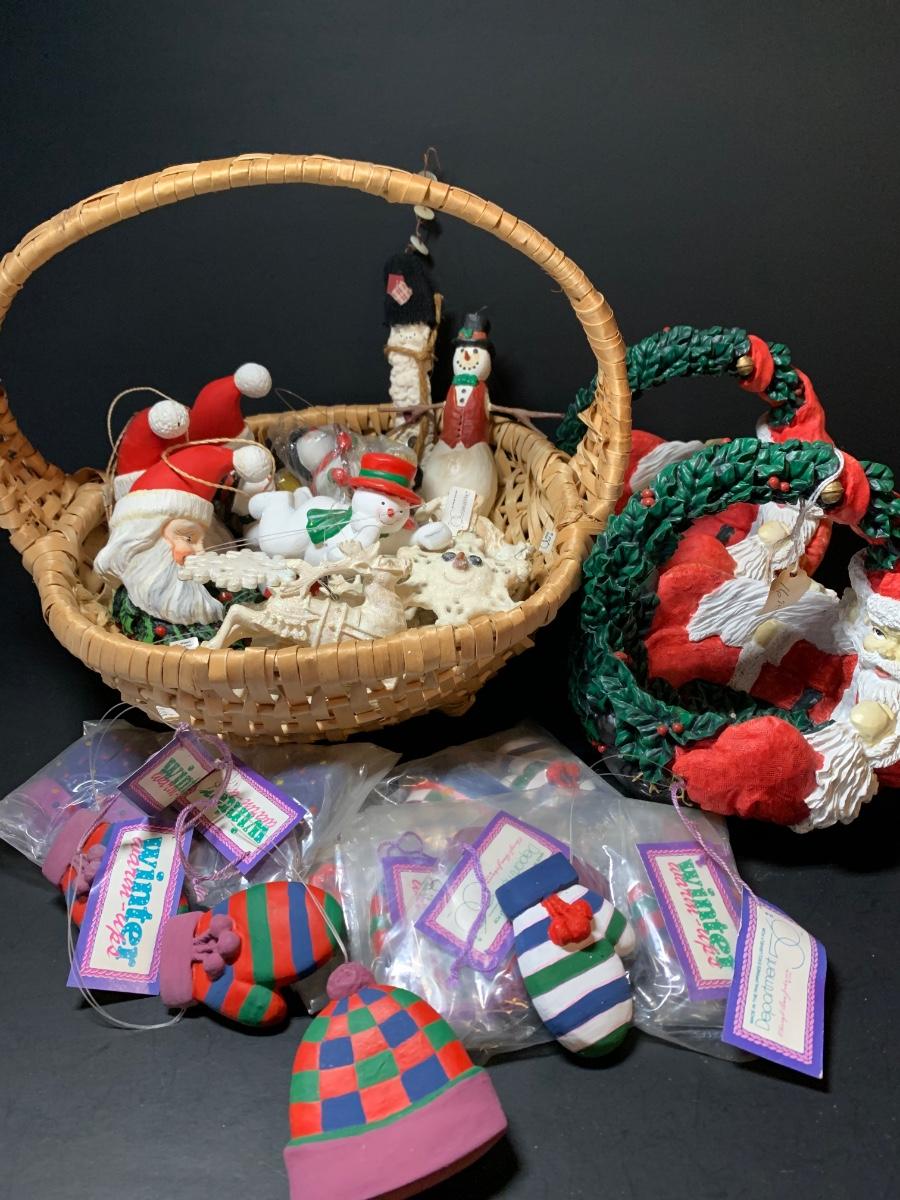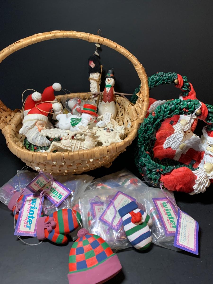 Snowmen, Santa's, hats, mittens and more some still in original packaging.