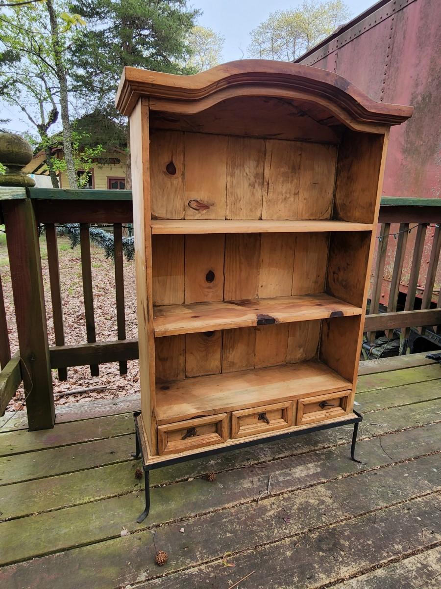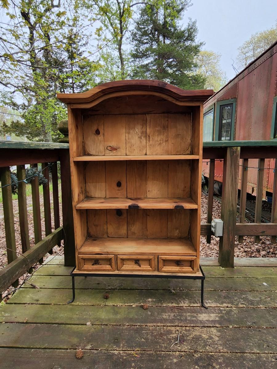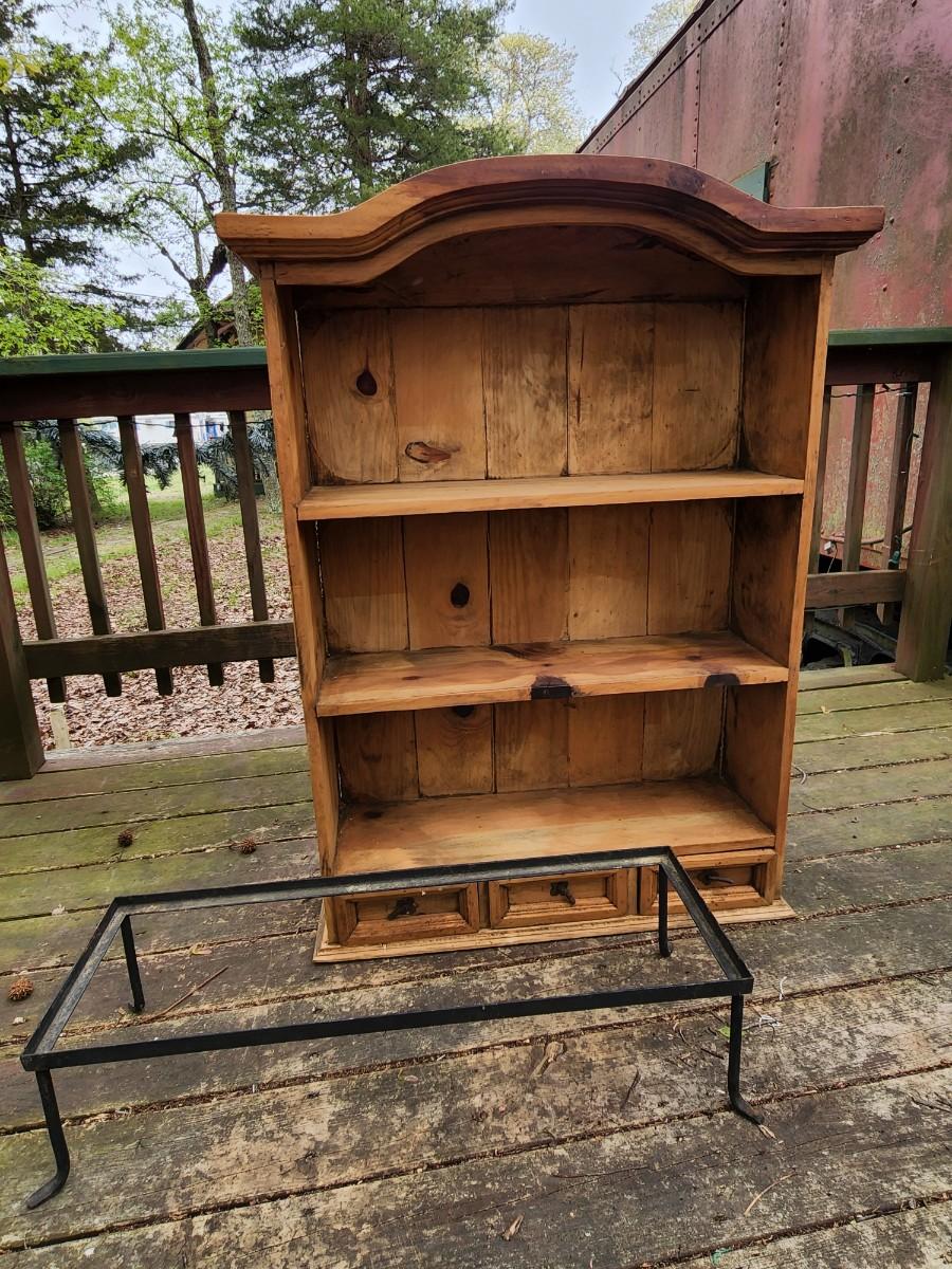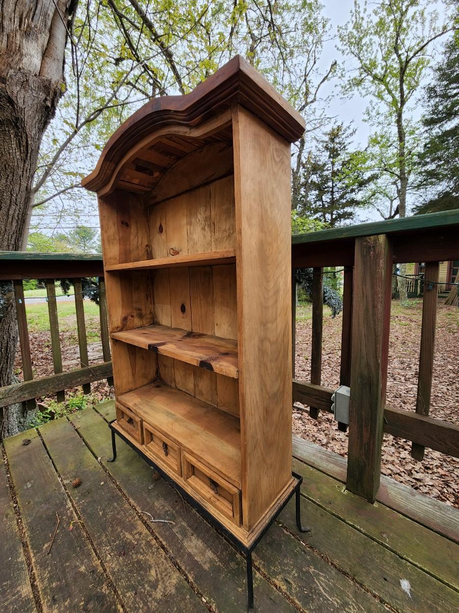 Beautiful wood display case/bookshelf with metal hardware and removable metal stand. Measures 29x9x49. Would look great in a country kitchen filled with jams and cookbooks or as a display with candles at your store. So many possibilities for this piece. Please see all pictures as they are the best representation of the items. The pictures show condition, measurements if taken, and what is included in the lot. Due to the large amount that we photograph and the time frame, we are not always able to take measurements. All items unless noted, are pre-owned and have been used. If you purchased furniture, you must bring help. We do not allow one person to carry large furniture out on their own. Bring help, tools and a truck for the safety of our client’s homes, and your personal safety. Any damages that result to the property including walls, and floors due to moving of the furniture will be charged to the buyer. Company policy. Thank you.