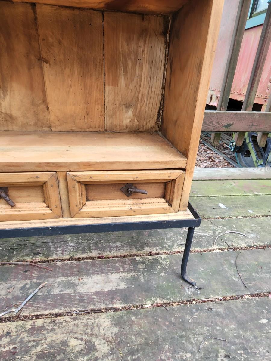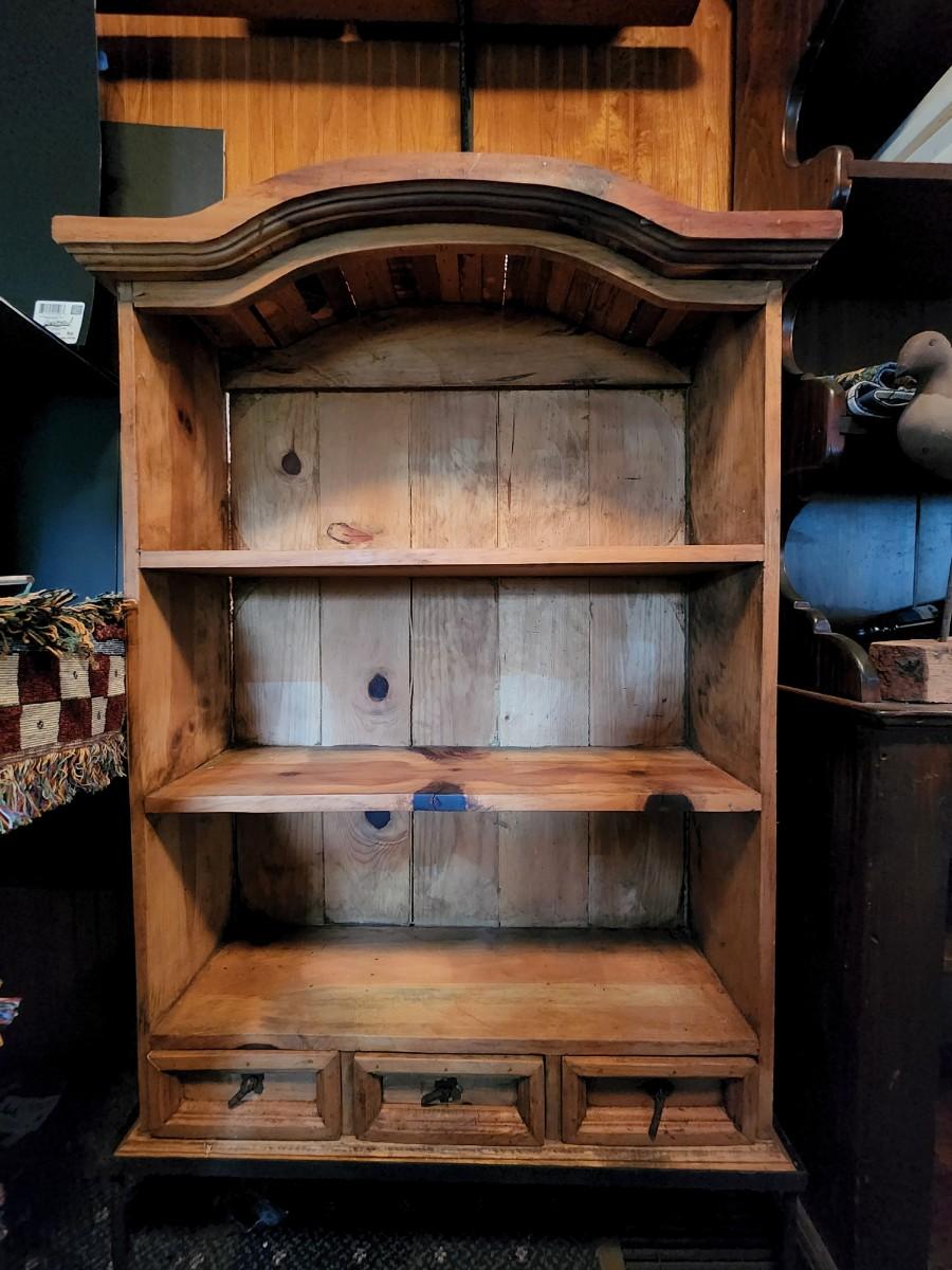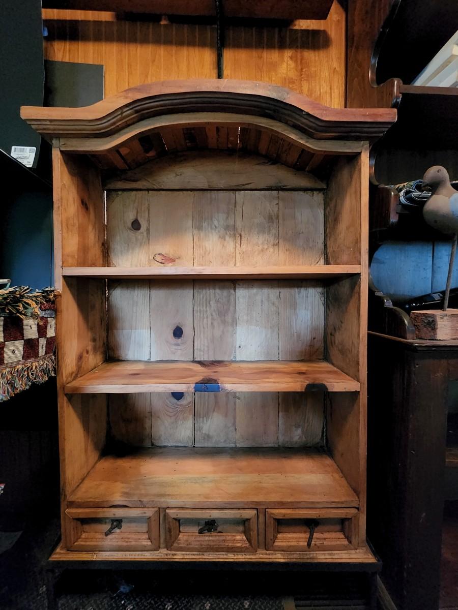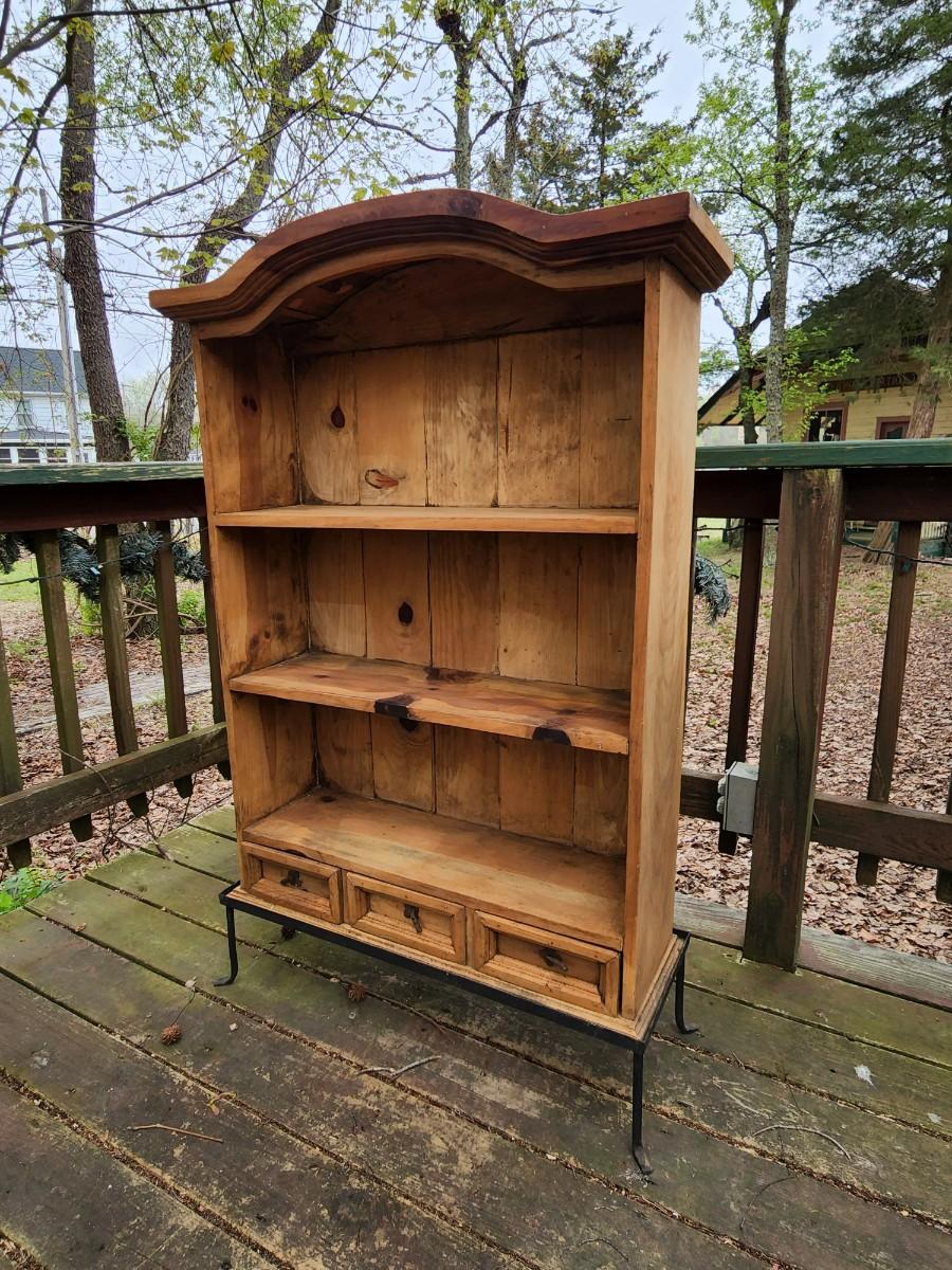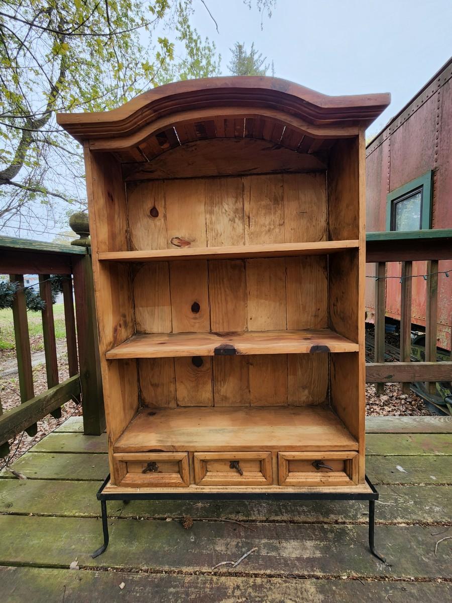 Beautiful wood display case/bookshelf with metal hardware and removable metal stand. Measures 29x9x49. Would look great in a country kitchen filled with jams and cookbooks or as a display with candles at your store. So many possibilities for this piece. Please see all pictures as they are the best representation of the items. The pictures show condition, measurements if taken, and what is included in the lot. Due to the large amount that we photograph and the time frame, we are not always able to take measurements. All items unless noted, are pre-owned and have been used. If you purchased furniture, you must bring help. We do not allow one person to carry large furniture out on their own. Bring help, tools and a truck for the safety of our client’s homes, and your personal safety. Any damages that result to the property including walls, and floors due to moving of the furniture will be charged to the buyer. Company policy. Thank you.