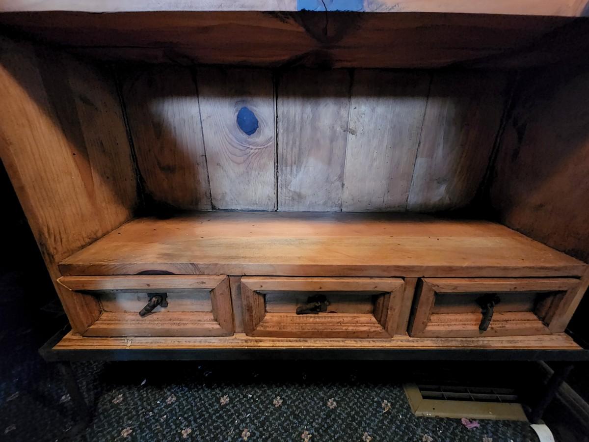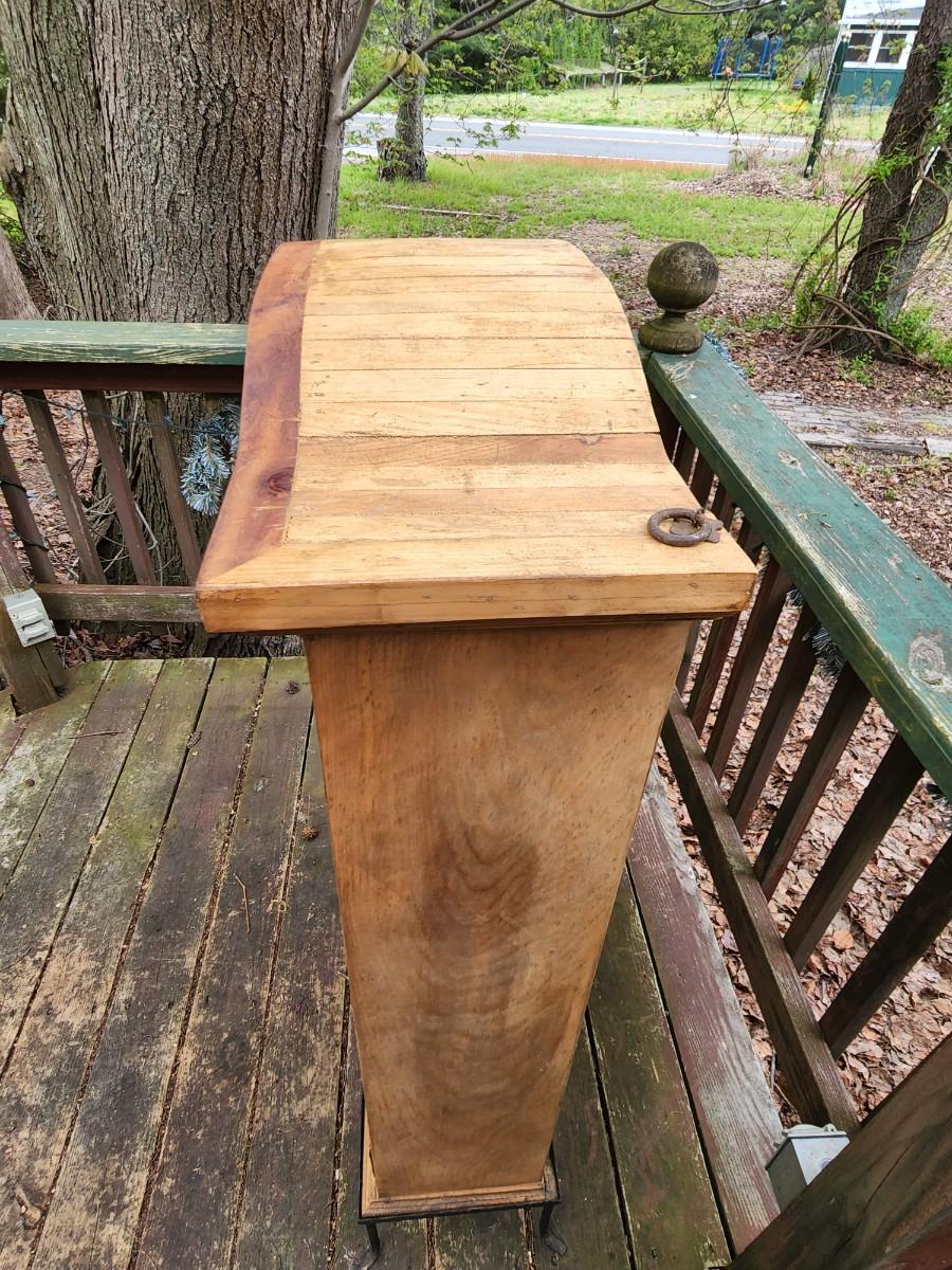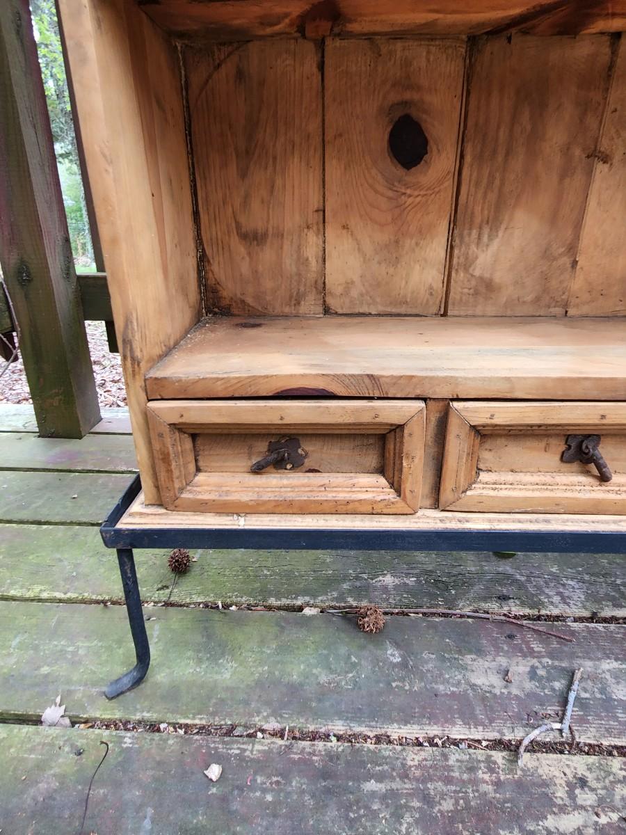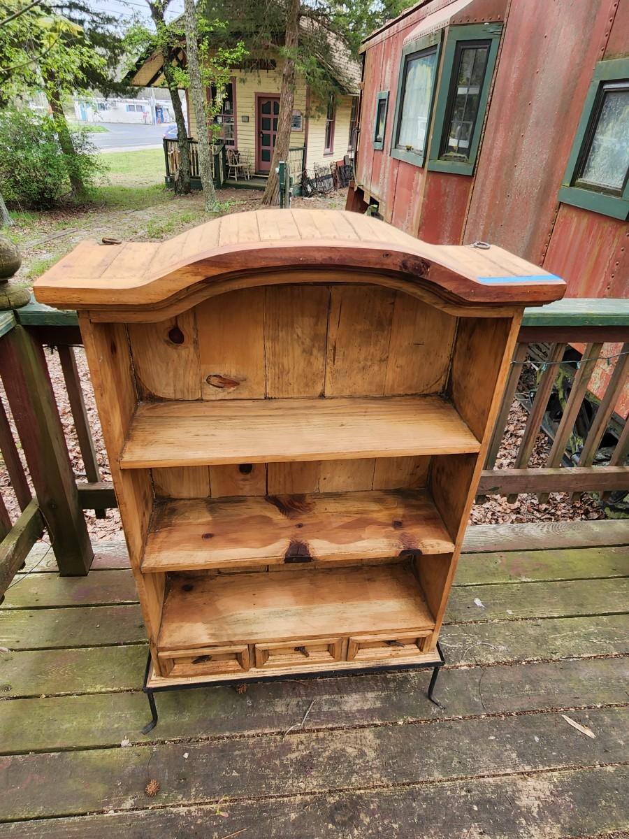 Beautiful wood display case/bookshelf with metal hardware and removable metal stand. Measures 29x9x49. Would look great in a country kitchen filled with jams and cookbooks or as a display with candles at your store. So many possibilities for this piece. Please see all pictures as they are the best representation of the items. The pictures show condition, measurements if taken, and what is included in the lot. Due to the large amount that we photograph and the time frame, we are not always able to take measurements. All items unless noted, are pre-owned and have been used. If you purchased furniture, you must bring help. We do not allow one person to carry large furniture out on their own. Bring help, tools and a truck for the safety of our client’s homes, and your personal safety. Any damages that result to the property including walls, and floors due to moving of the furniture will be charged to the buyer. Company policy. Thank you.