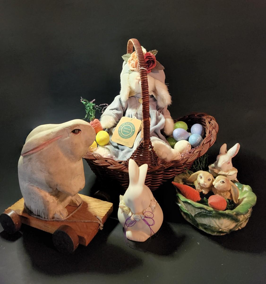 LOT 100M: Easter Basket with Boyds Bear, Primitive Bunny and More