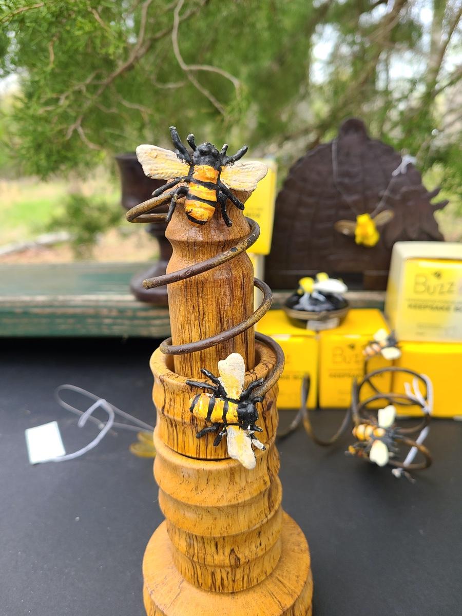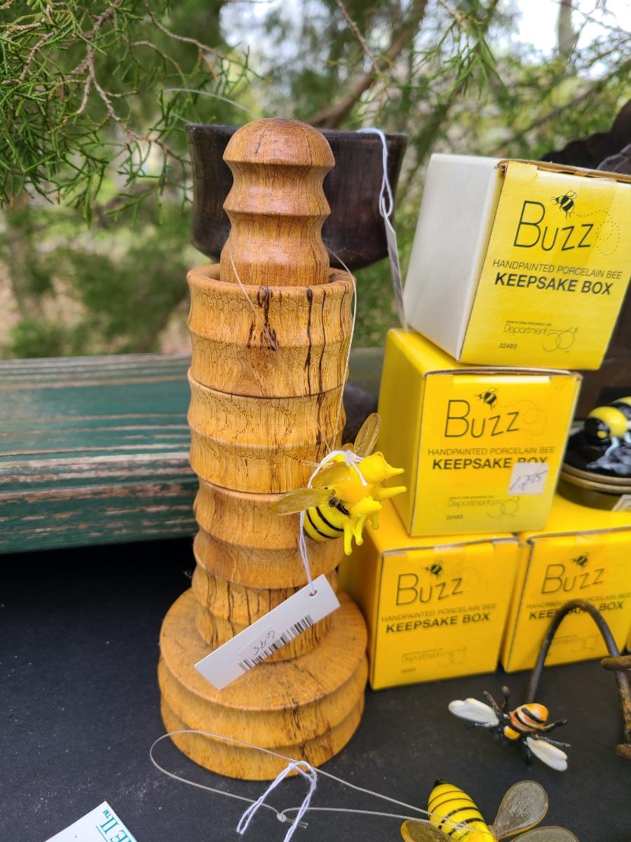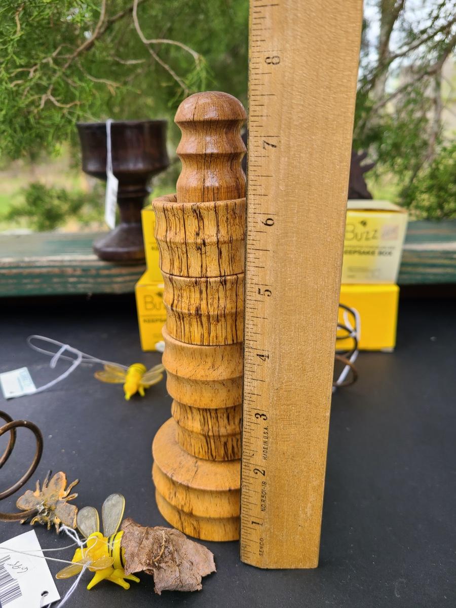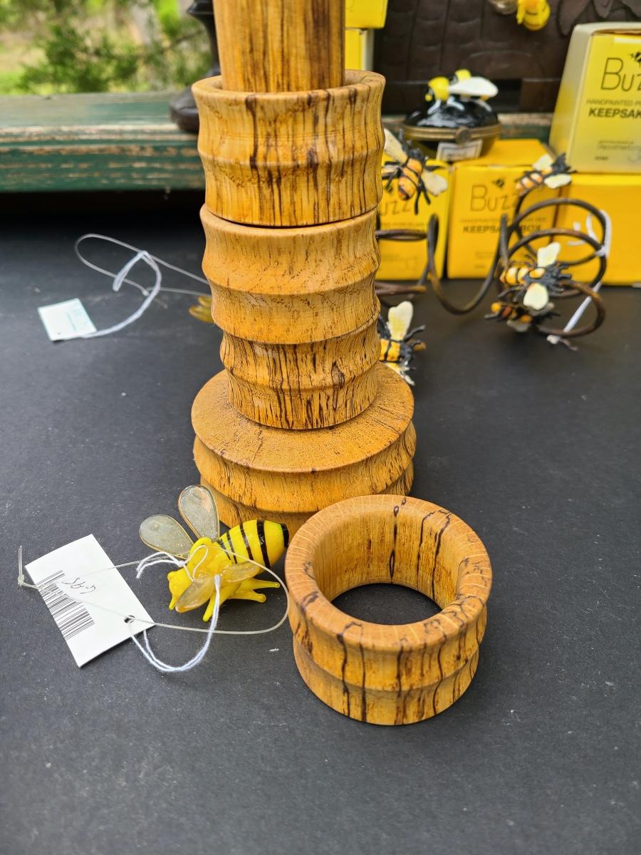 Fun lot for decor or re-sell. New in the box, porcelain bee trinket boxes. Three napkin or candle rings with bees, a wood carved stand with wood napkin rings for four, wood turned candle stand, and heavy metal beehive napkin holder. Please see all pictures as they are the best representation of the items. The pictures show condition, measurements if taken, and what is included in the lot. Due to the large amount that we photograph and the time frame, we are not always able to take measurements. All items unless noted, are pre-owned and have been used. If you purchased furniture, you must bring help. We do not allow one person to carry large furniture out on their own. Bring help, tools and a truck for the safety of our client’s homes, and your personal safety. Any damages that result to the property including walls, and floors due to moving of the furniture will be charged to the buyer. Company policy. Thank you.