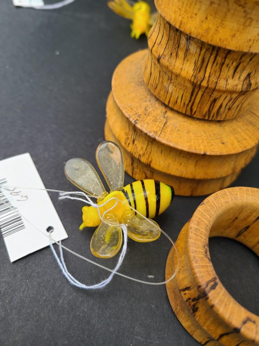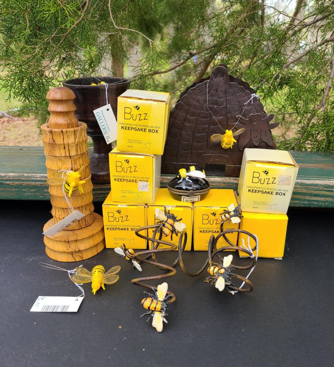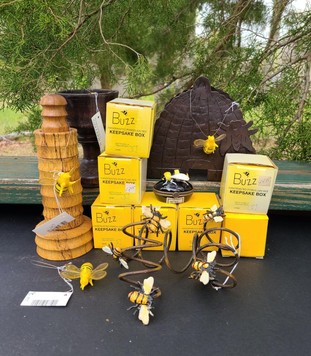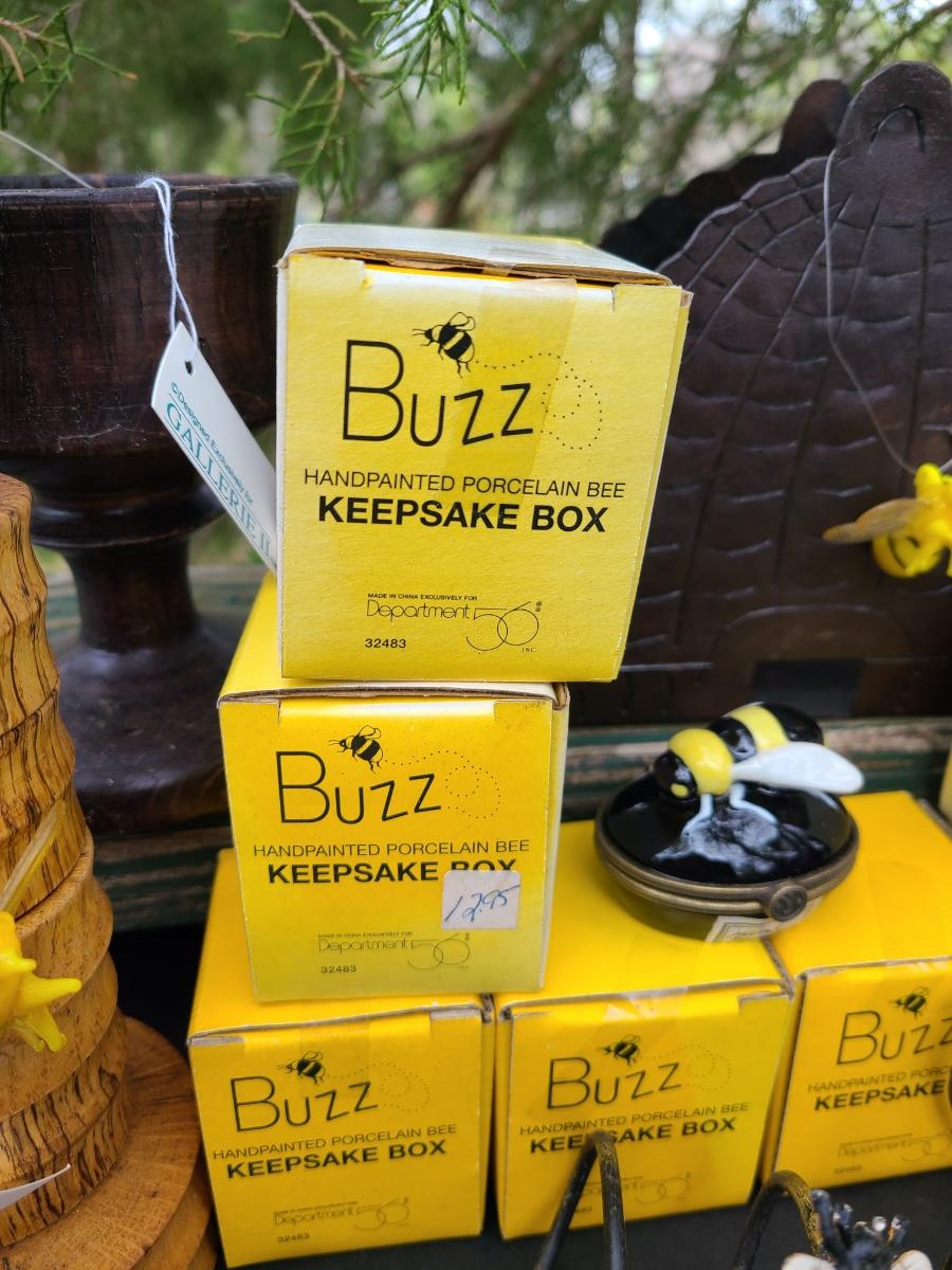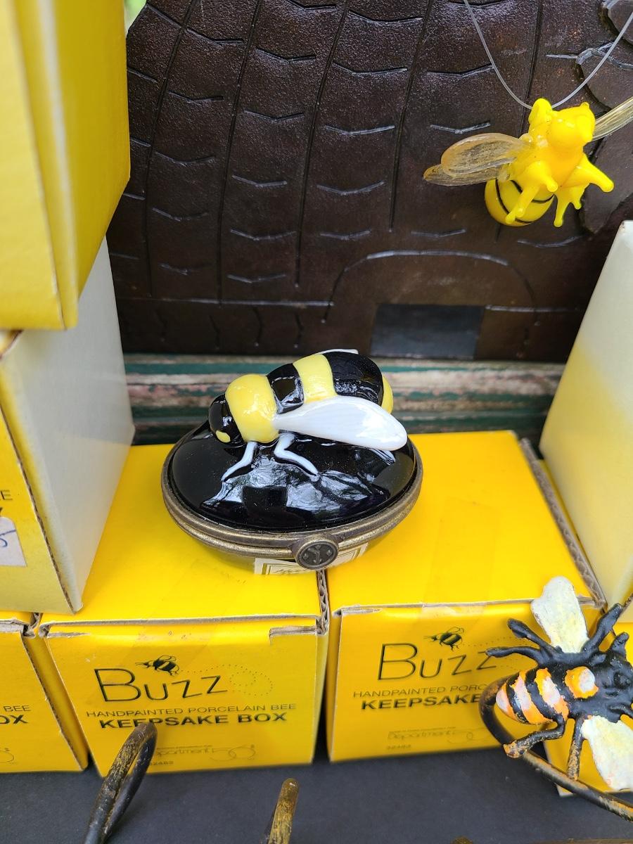 LOT 106: Dept 56 Porcelain Bee Trinket Boxes, Glass Bees, Metal Beehive Napkin Holder and more