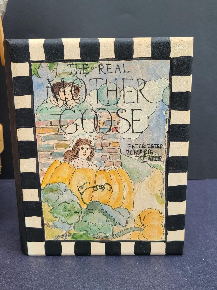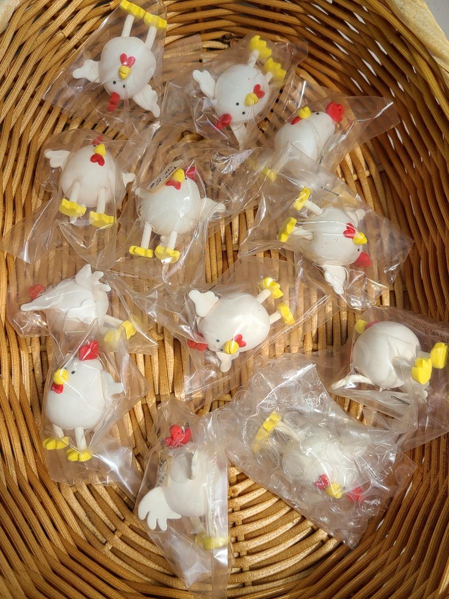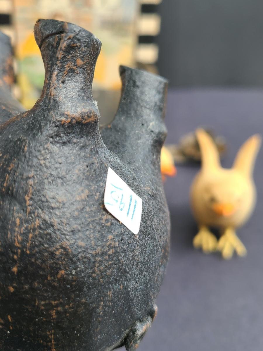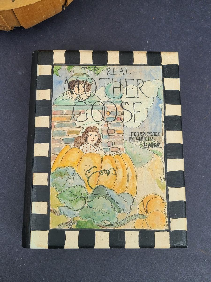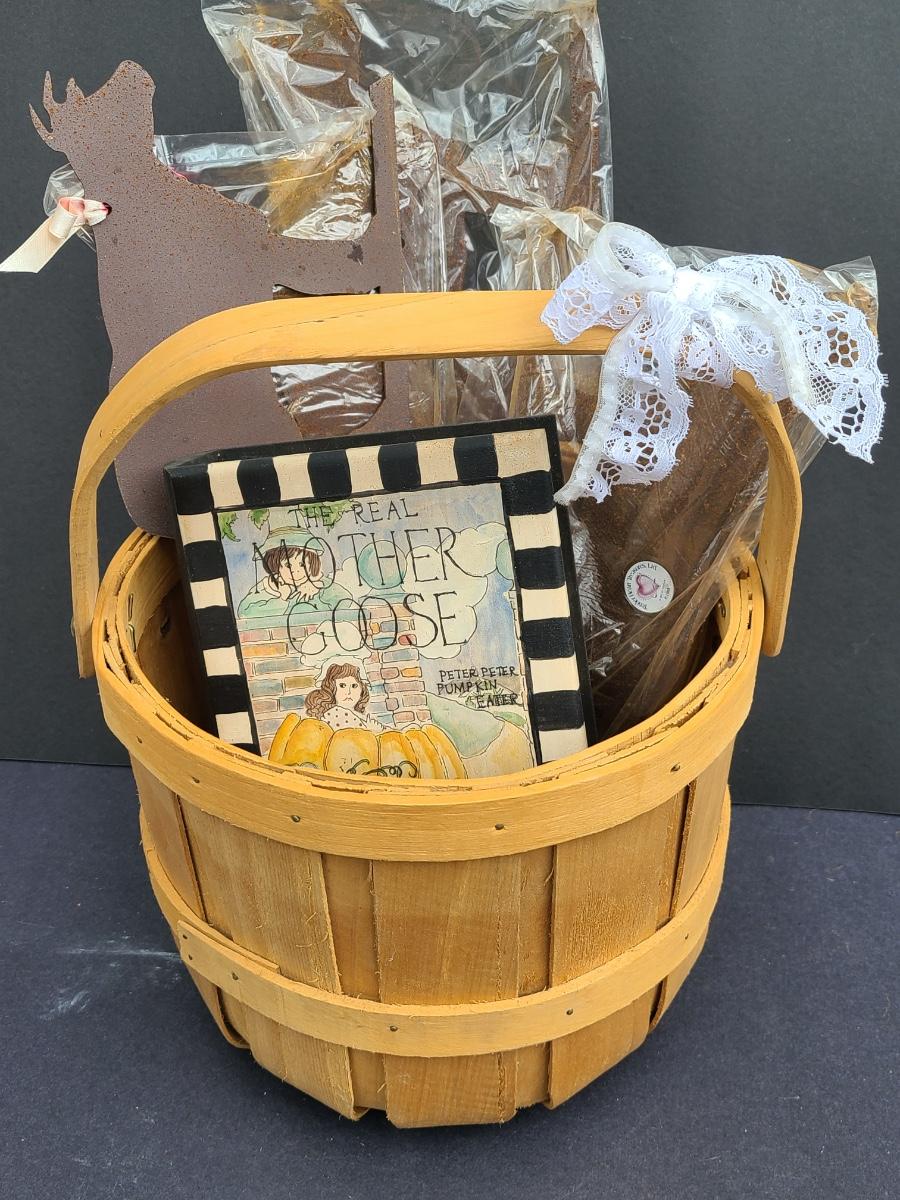 LOT 113C: Dept 56 Wood Chicks, Metal Cows Wall Signs, Painted Box, and Chicken Ornaments