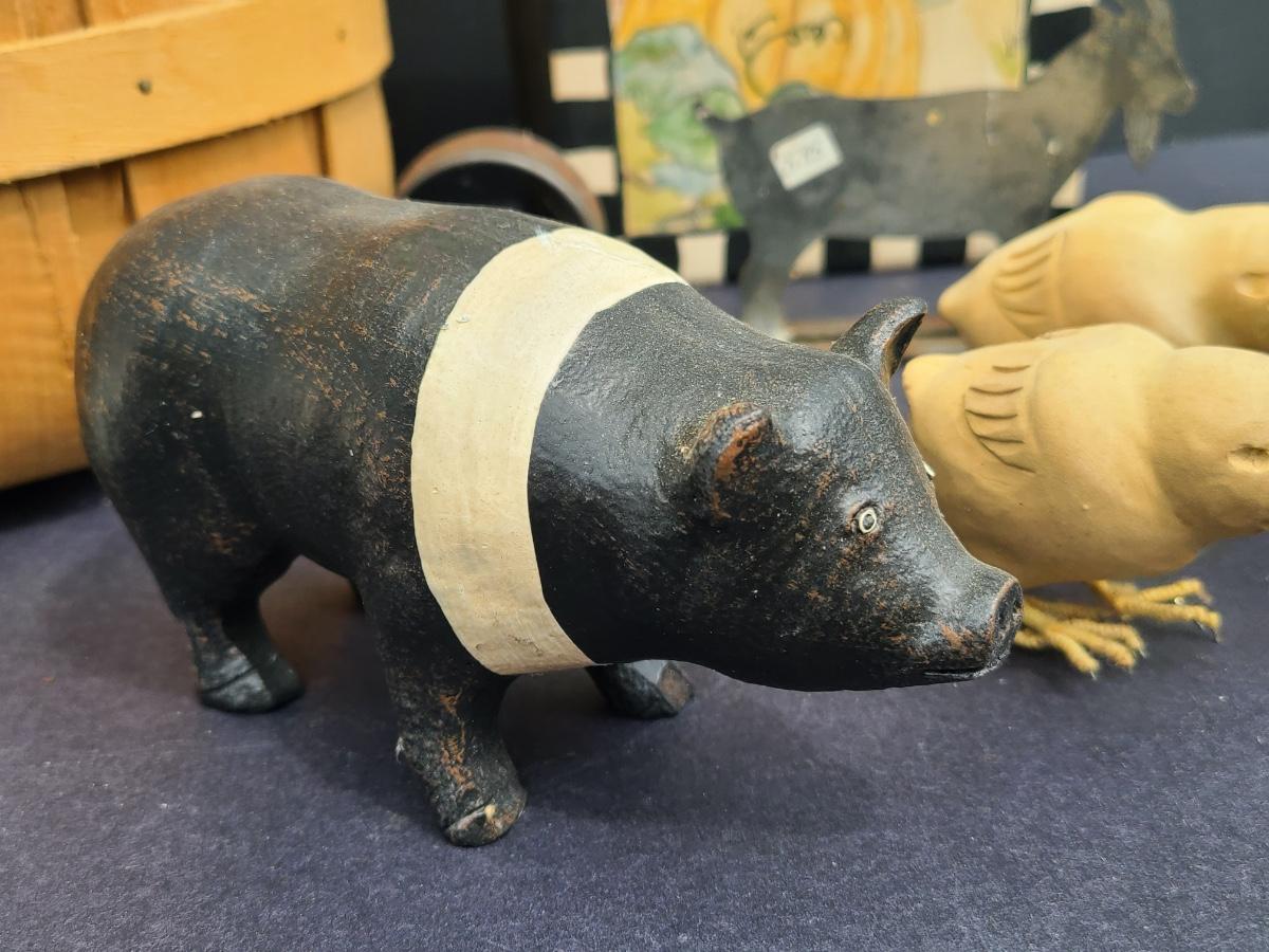 This was all used as store inventory. The cow metal signs are rusty. Please see all pictures as they are the best representation of the items. The pictures show condition, measurements if taken, and what is included in the lot. Due to the large amount that we photograph and the time frame, we are not always able to take measurements. All items unless noted, are pre-owned and have been used. If you purchased furniture, you must bring help. We do not allow one person to carry large furniture out on their own. Bring help, tools and a truck for the safety of our client’s homes, and your personal safety. Any damages that result to the property including walls, and floors due to moving of the furniture will be charged to the buyer. Company policy. Thank you.