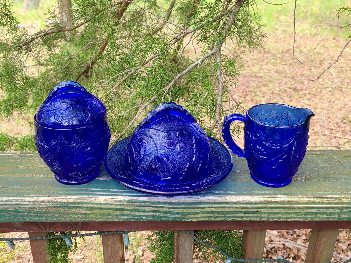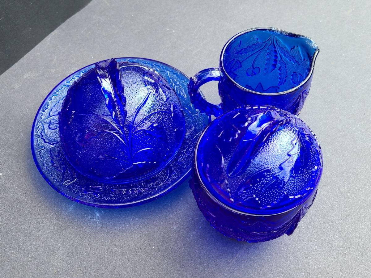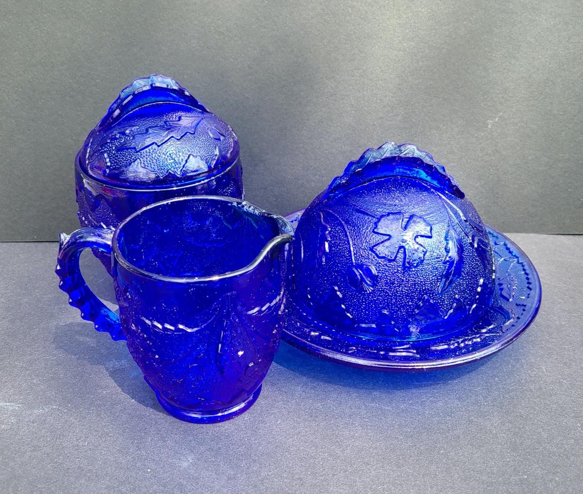 LOT 116C: Cobalt Blue Sugar, Creamer and Butter/Covered Dish