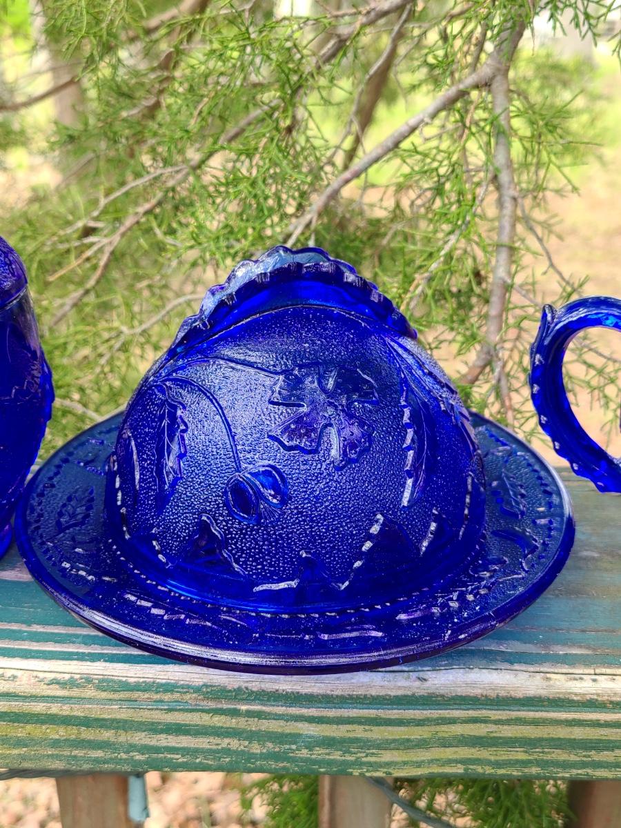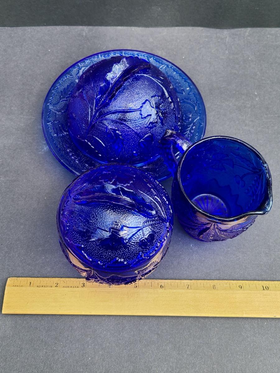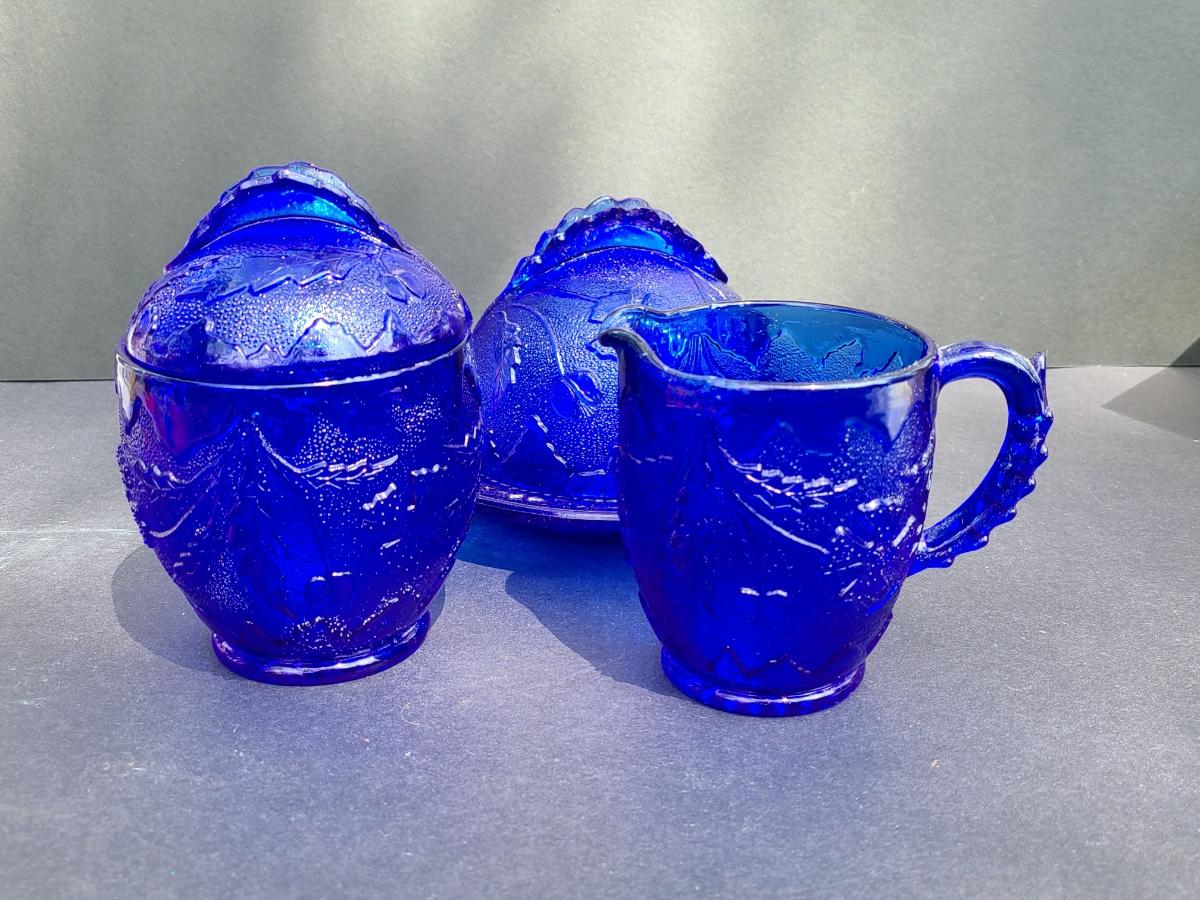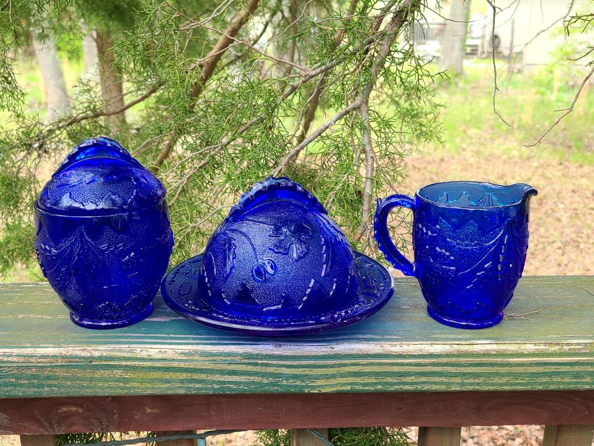 LOT 116C: Cobalt Blue Sugar, Creamer and Butter/Covered Dish