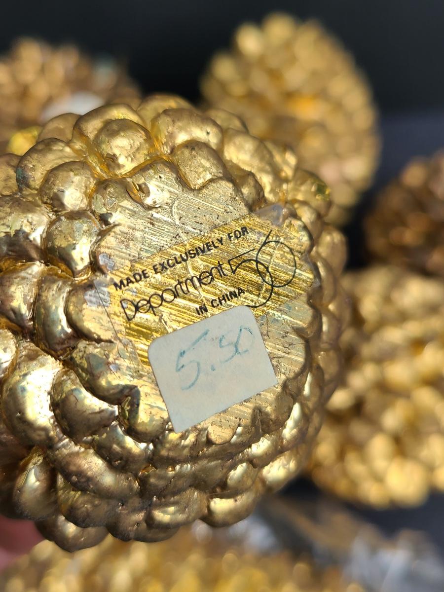 These look to be a metal overlay resin. Some are very shiny and gold, others have lost their luster and color. Either way, great fall decor pieces. Please see all pictures as they are the best representation of the items. The pictures show condition, measurements if taken, and what is included in the lot. Due to the large amount that we photograph and the time frame, we are not always able to take measurements. All items unless noted, are pre-owned and have been used. If you purchased furniture, you must bring help. We do not allow one person to carry large furniture out on their own. Bring help, tools and a truck for the safety of our client’s homes, and your personal safety. Any damages that result to the property including walls, and floors due to moving of the furniture will be charged to the buyer. Company policy. Thank you.