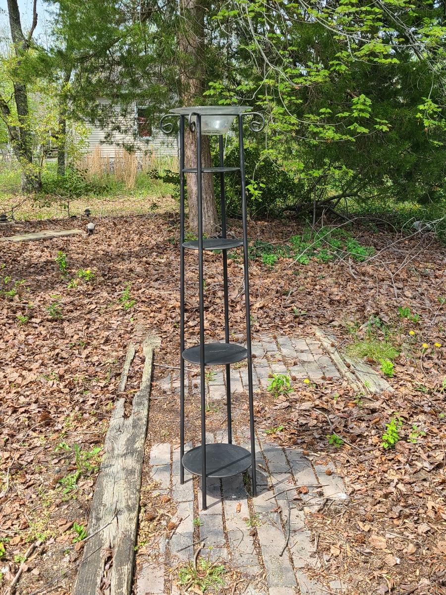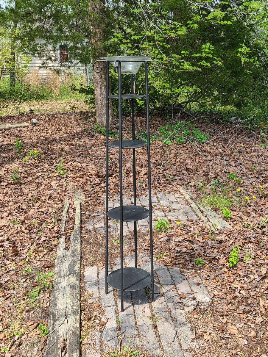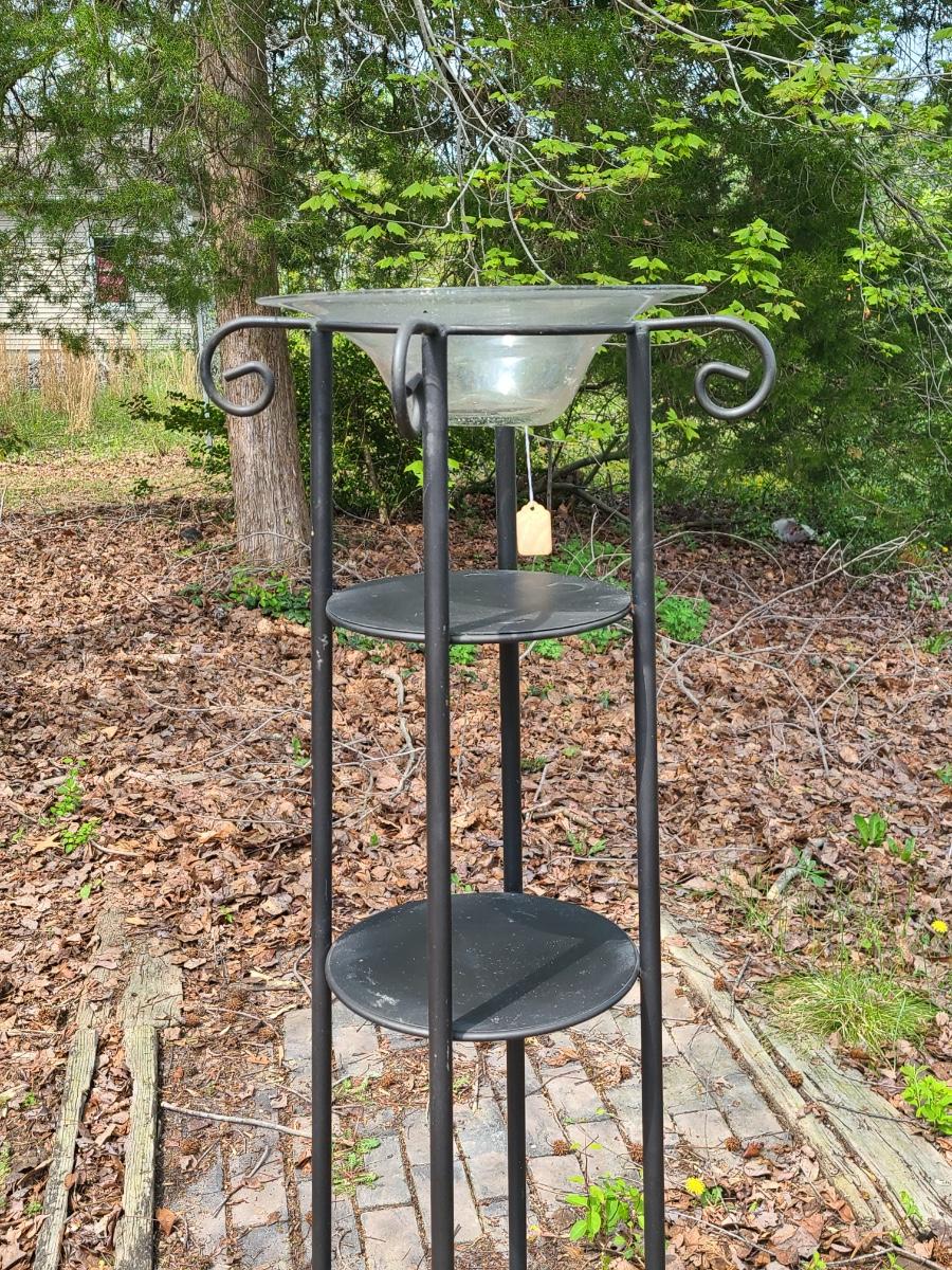 LOT 118C: Tall Metal Tiered Stand with Shelves and Candle Bowl on Top (For Plants/Birdbath, Decor etc)