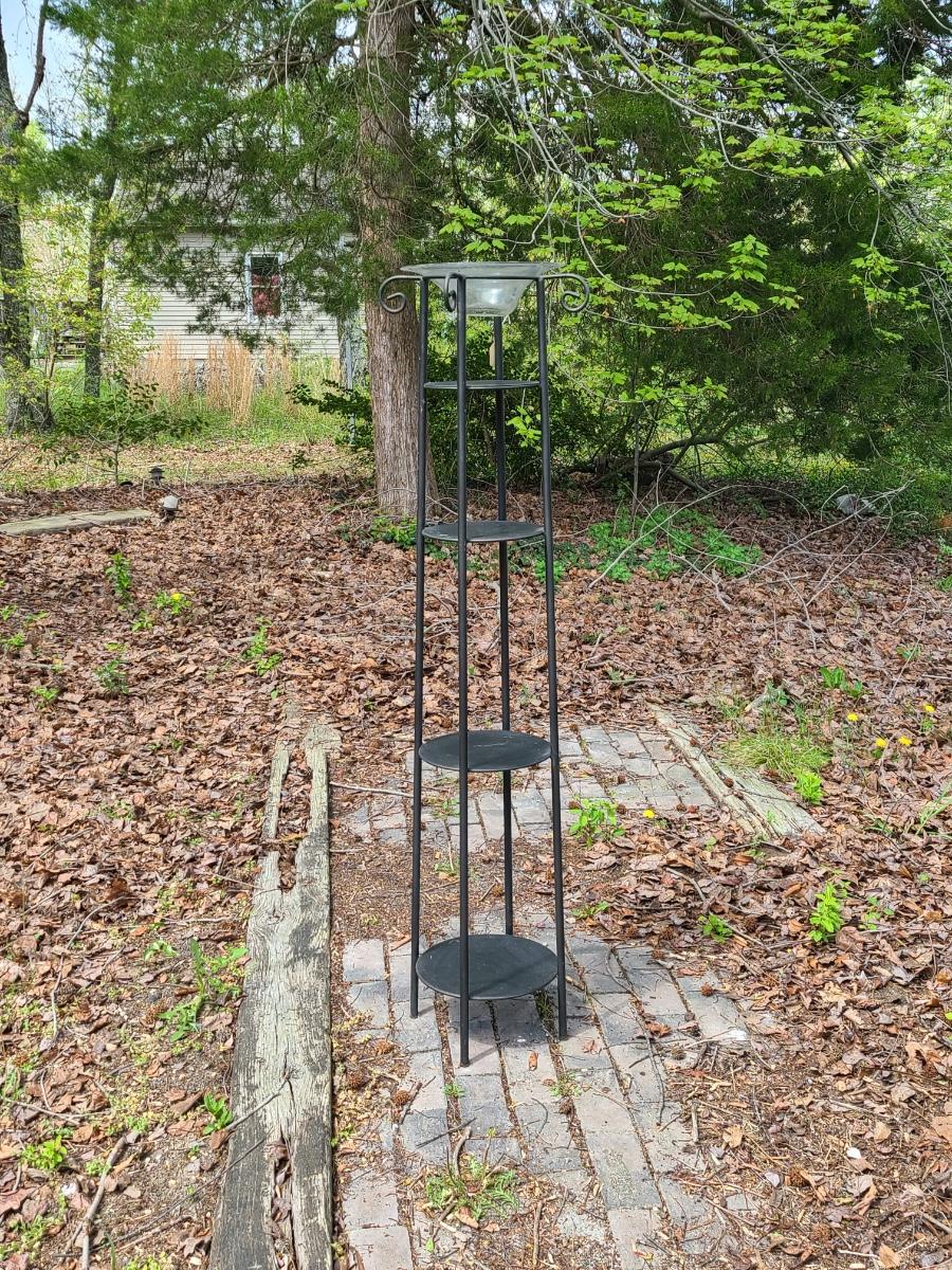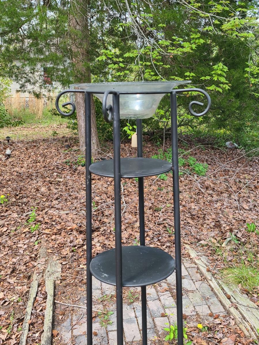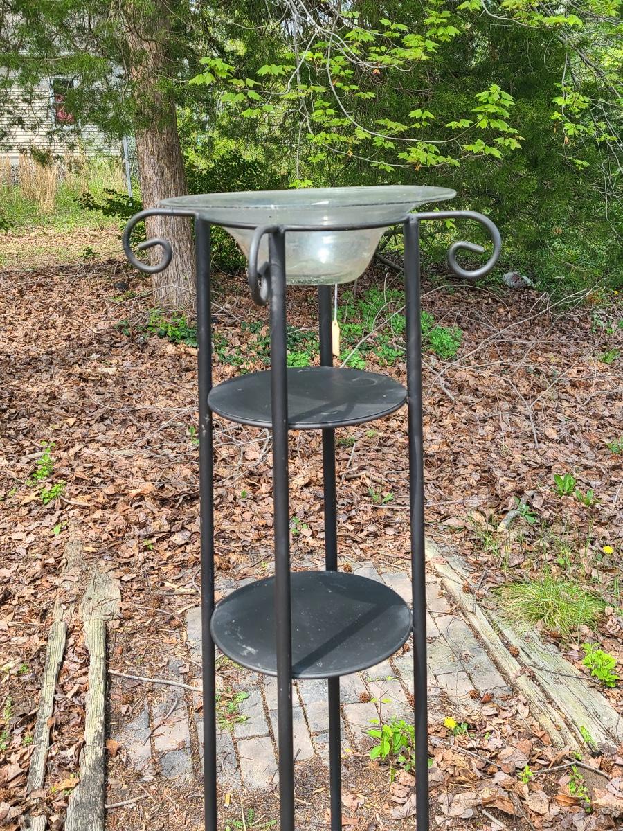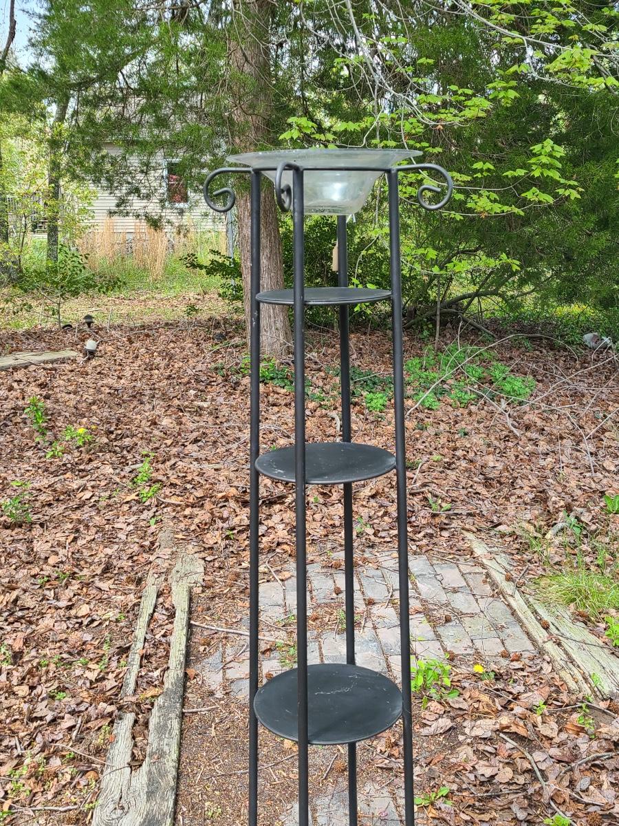 LOT 118C: Tall Metal Tiered Stand with Shelves and Candle Bowl on Top (For Plants/Birdbath, Decor etc)