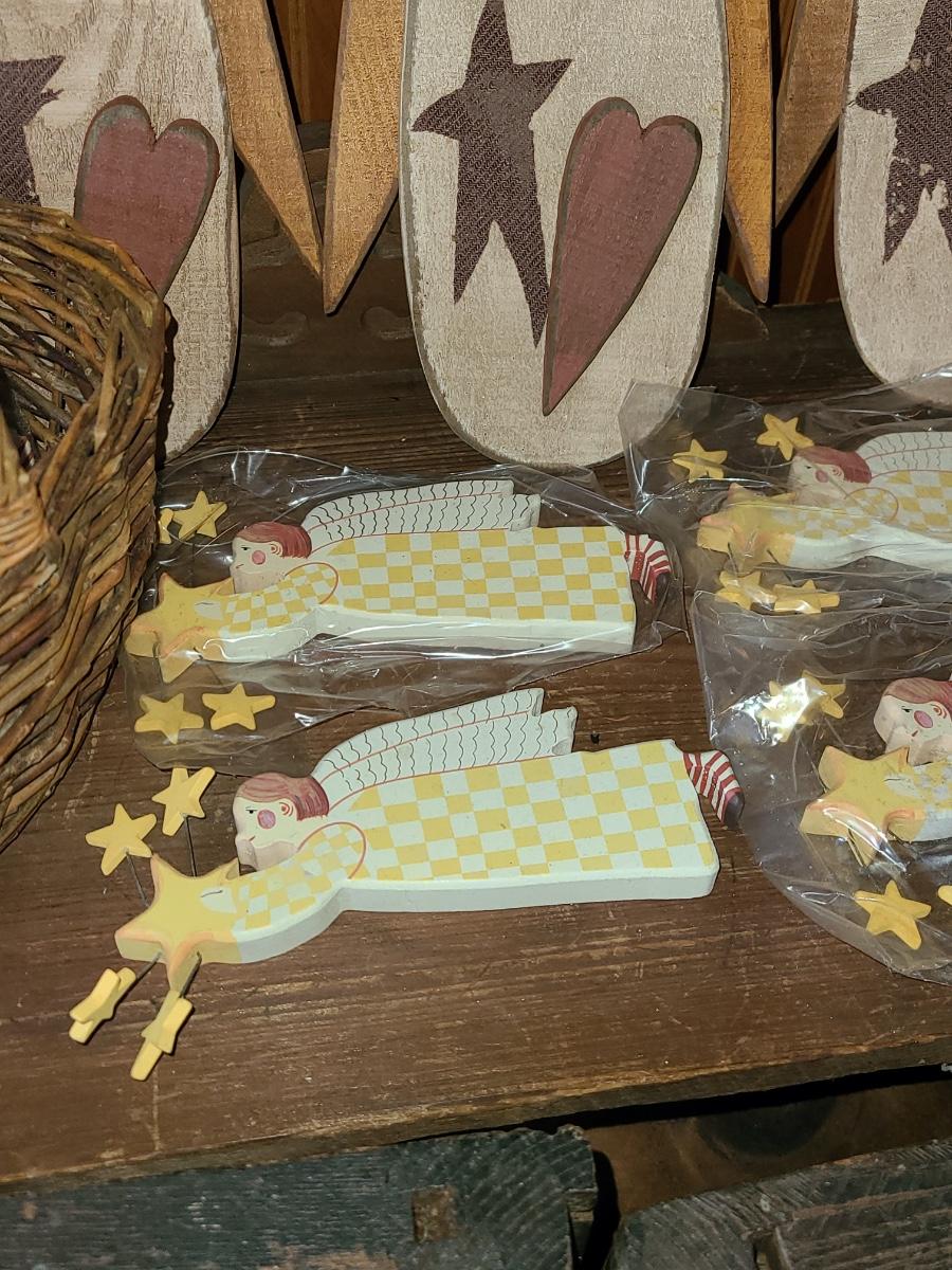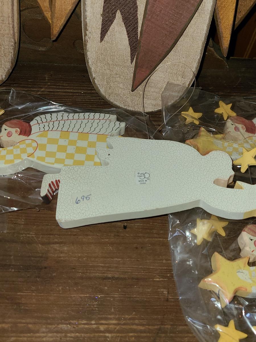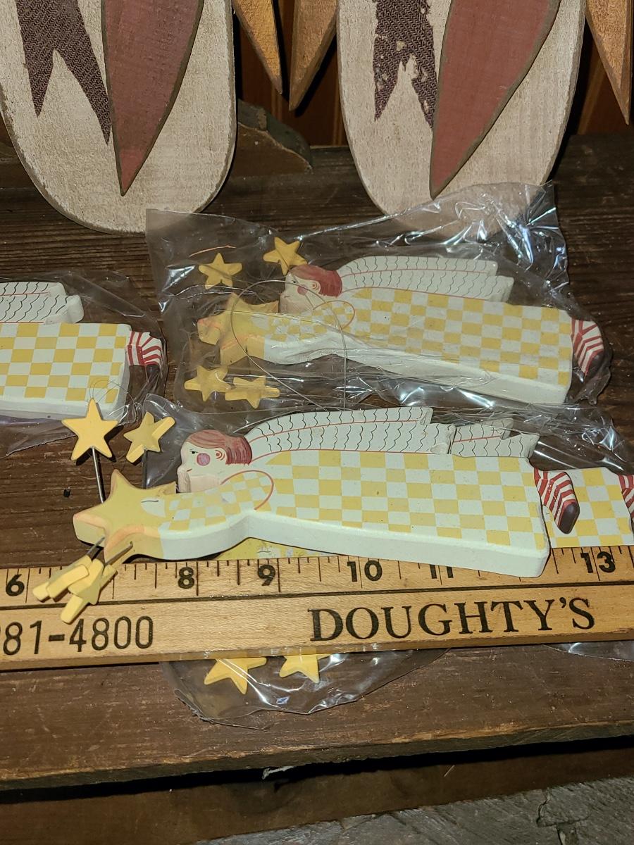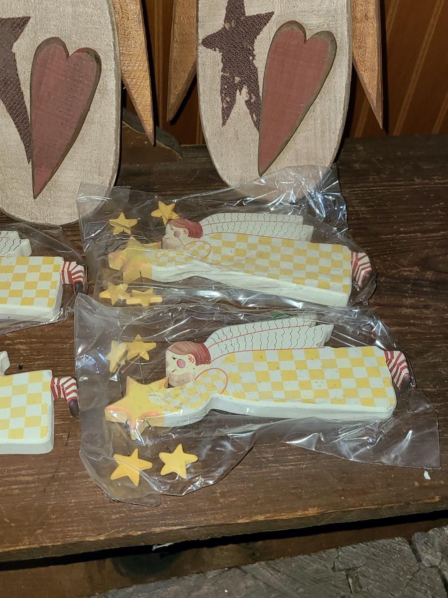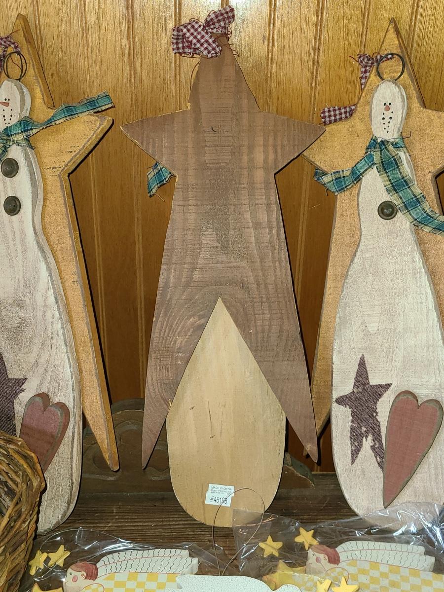 LOT 122C: New Wood Carved Snowman hanging Wall Art, and Angel Ornaments