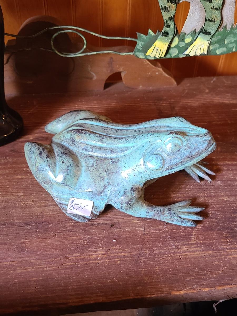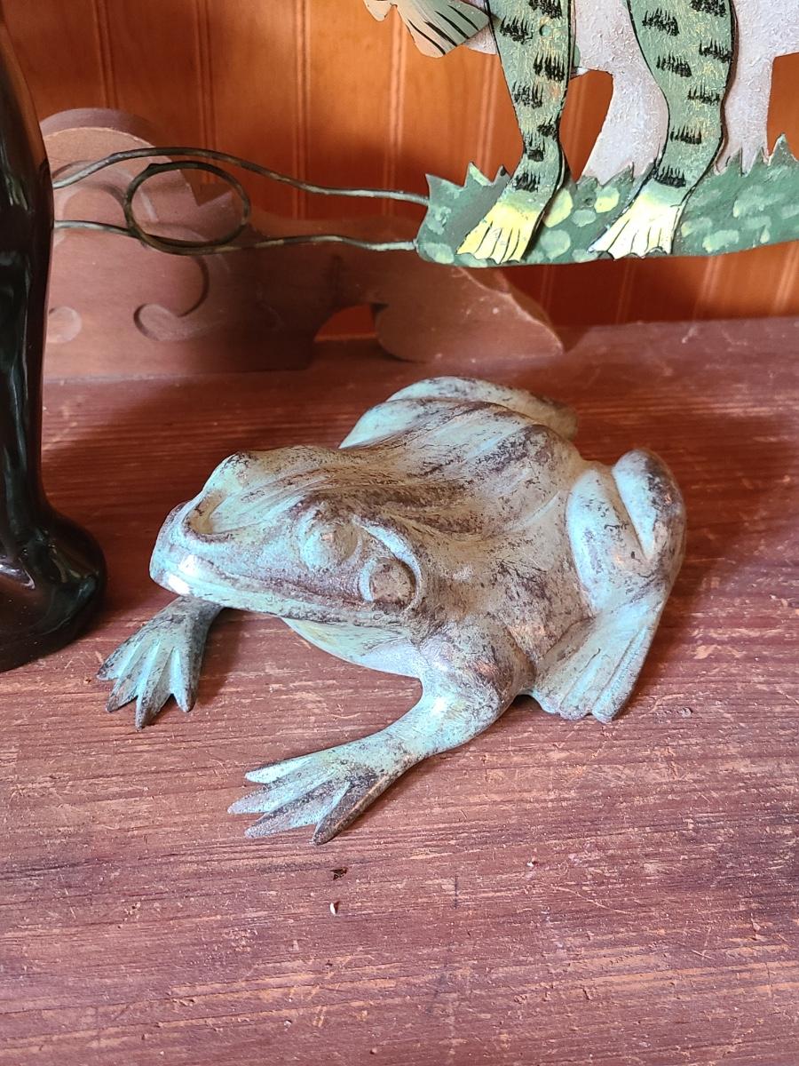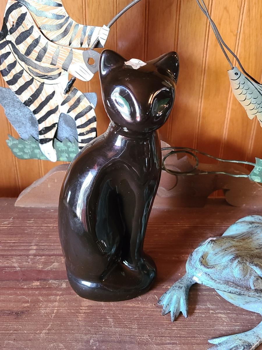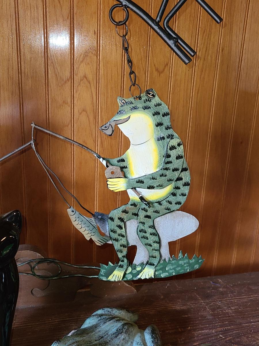 LOT 1234: Two Metal Signs (Cat/Frog Fishing)/Dept 56 Metal Frog/Ceramic Vintage Cat