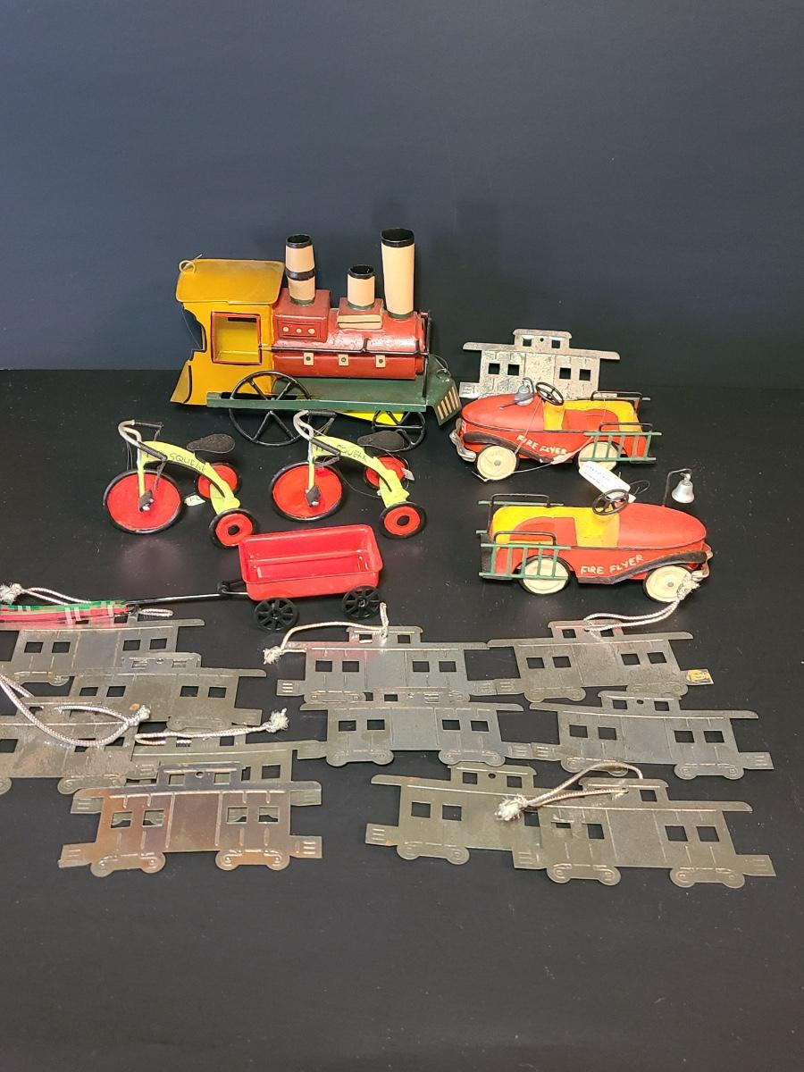LOT 144C: Metal/Tin Car/Train/Tricycle Ornaments